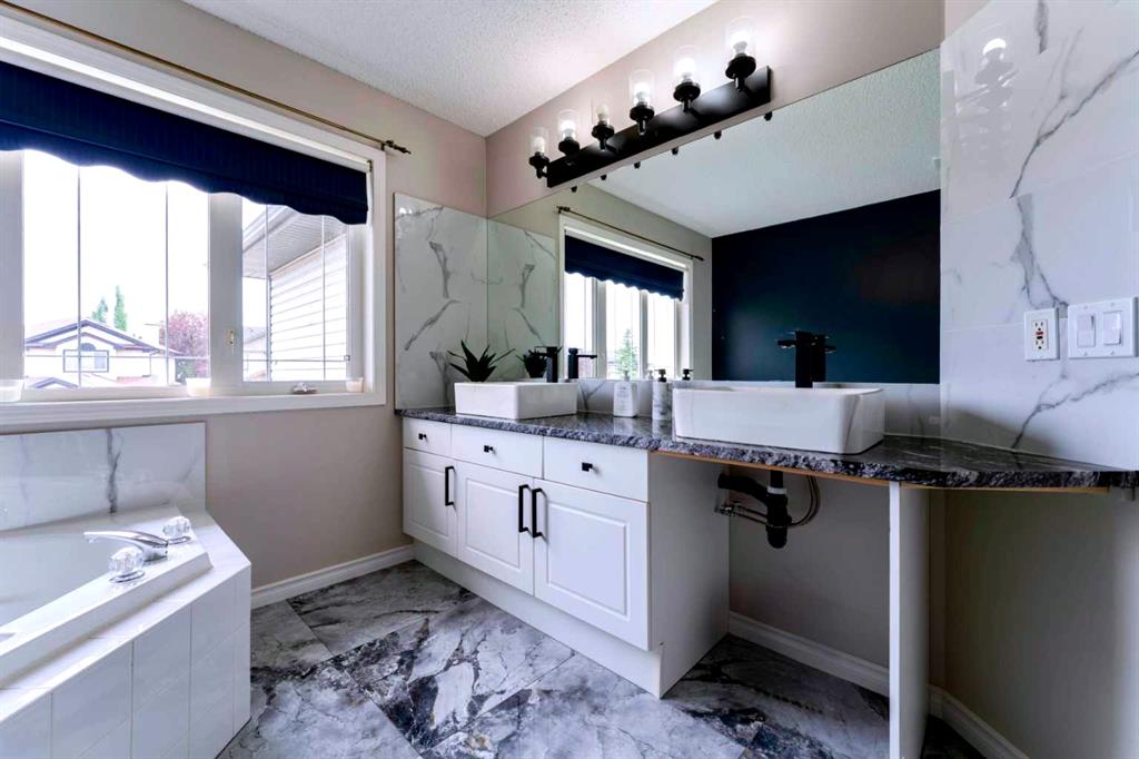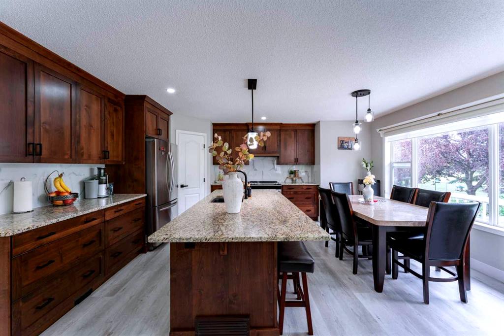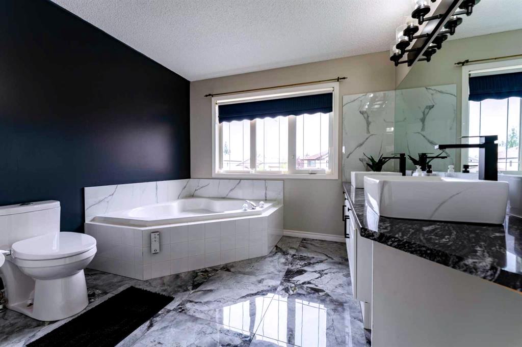 Welcome to 276 Fairways Bay NW, Airdrie!! This beautifully renovated 2-storey backs onto the GOLF COURSE, offering stunning views and a peaceful lifestyle. Featuring a bright open layout with a chef’s kitchen, MAIN FLOOR OFFICE, and spacious living areas. Upstairs features a BONUS ROOM and three bedrooms, including a luxurious primary suite. The NEWLY FINISHED BASEMENT adds 2 bedrooms, a BAR, and a full bath. Enjoy an ATTACHED DOUBLE GARAGE, nearby schools, parks, and shopping — all in the sought-after Fairways community!