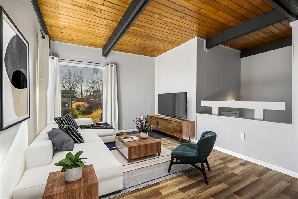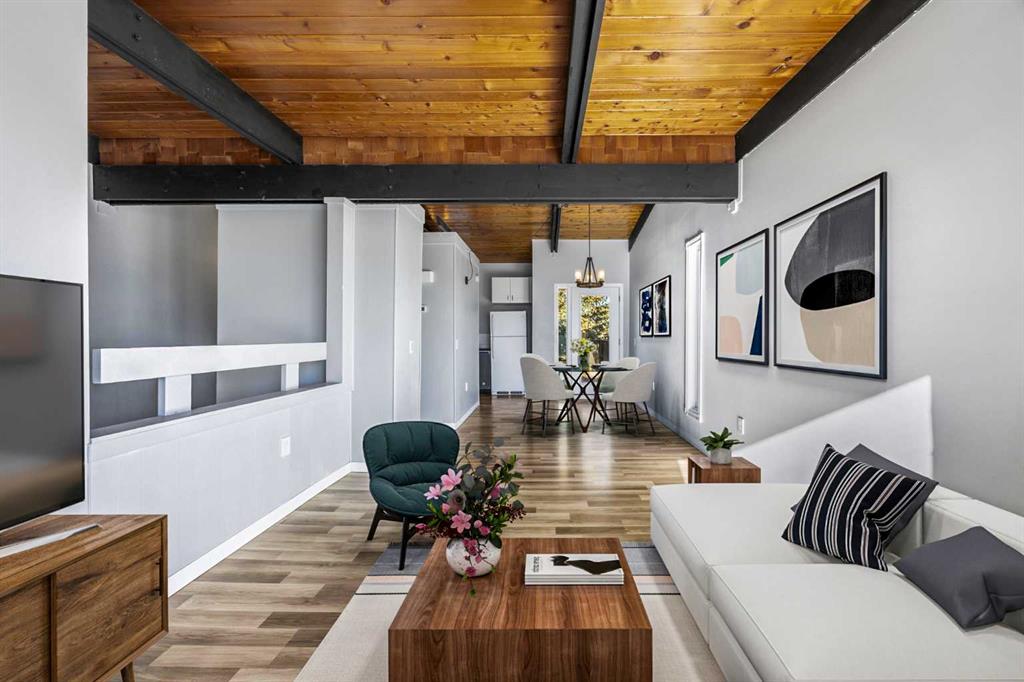 RENOVATED Bi-Level Townhome BACKING Onto a PARK with Exposed Wood Beams & LOW Condo Fees!! Welcome to this warm and inviting bi-level townhome, perfectly tucked away in one of the MOST DESIRABLE locations in the complex — backing directly onto a beautiful park surrounded by mature trees. From the moment you walk in, you’ll be captivated by the SOARING VAULTED CEILINGS and exposed wood beams, adding timeless character and an undeniable sense of charm.