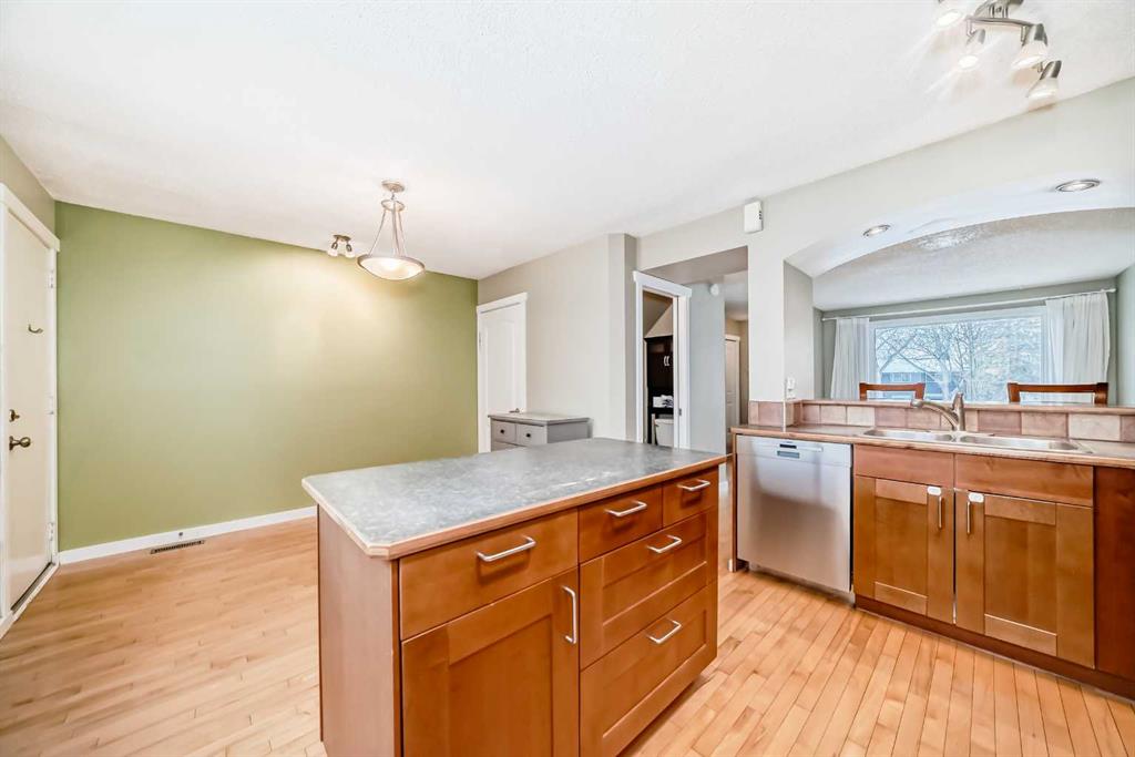 This beautifully updated East End townhouse backs onto an undeveloped area, offering stunning Bow Valley and river views with no rear neighbours. Start your mornings enjoying the sunrise with a coffee while deer and local wildlife pass through. The open main floor features hardwood floors, a bright living room, maple cabinetry, and an updated kitchen with a breakfast bar, stainless steel appliances, and tile backsplash, plus a generous dining area that opens to your private yard. An updated main-floor half bath adds everyday convenience. Freshly painted throughout, the upper level offers three spacious bedrooms and an updated 4-piece bathroom. The lower level is an unspoiled basement providing ample storage or the potential for an additional family room. Pets are welcome in this well-managed condo with a healthy reserve fund. Walkable to the Bow River, Historic Downtown, Spray Lakes Centre, shops, and restaurants—just move in and enjoy the Cochrane lifestyle!