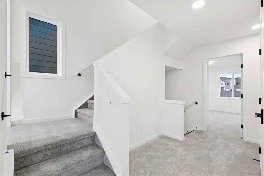Scheduled tentatively for early 2026 possession, 28 Bluerock Terrace SW features the Skyline model by Calbridge Homes in the desirable Alpine Park community. This thoughtfully designed 1,962 sq ft home offers 3 bedrooms and 2.5 bathrooms across a unique three-level layout. The main floor welcomes you with a spacious front porch and an open living area anchored by an L-shaped kitchen with a window above the sink and a large central island—ideal for everyday living and entertaining. The upper level includes two bedrooms, a versatile bonus room, and a den, providing flexible space for work or relaxation. The entire third level is dedicated to the private primary retreat, complete with a balcony offering a quiet outdoor escape. A double attached garage adds everyday convenience. Located close to parks, pathways, and future amenities, this home blends modern design, privacy, and functional living in one of southwest Calgary’s most exciting communities.