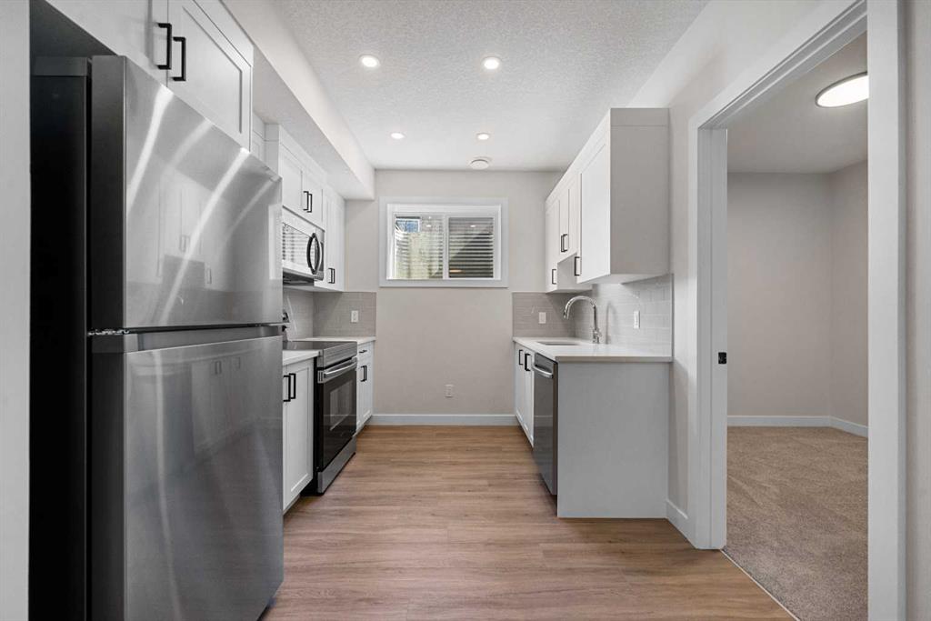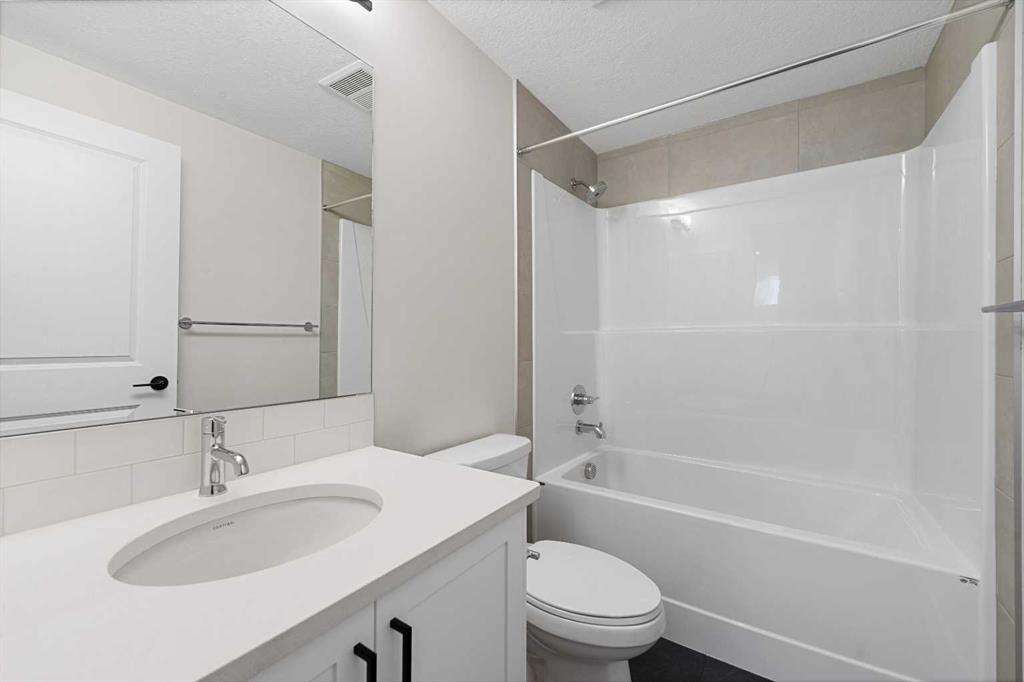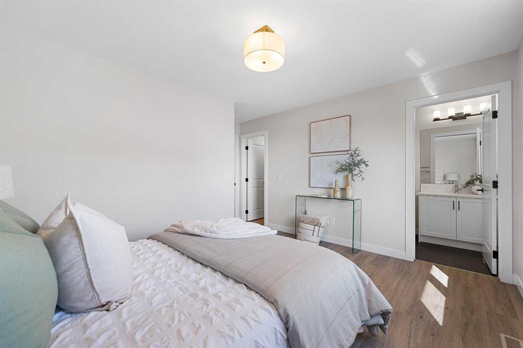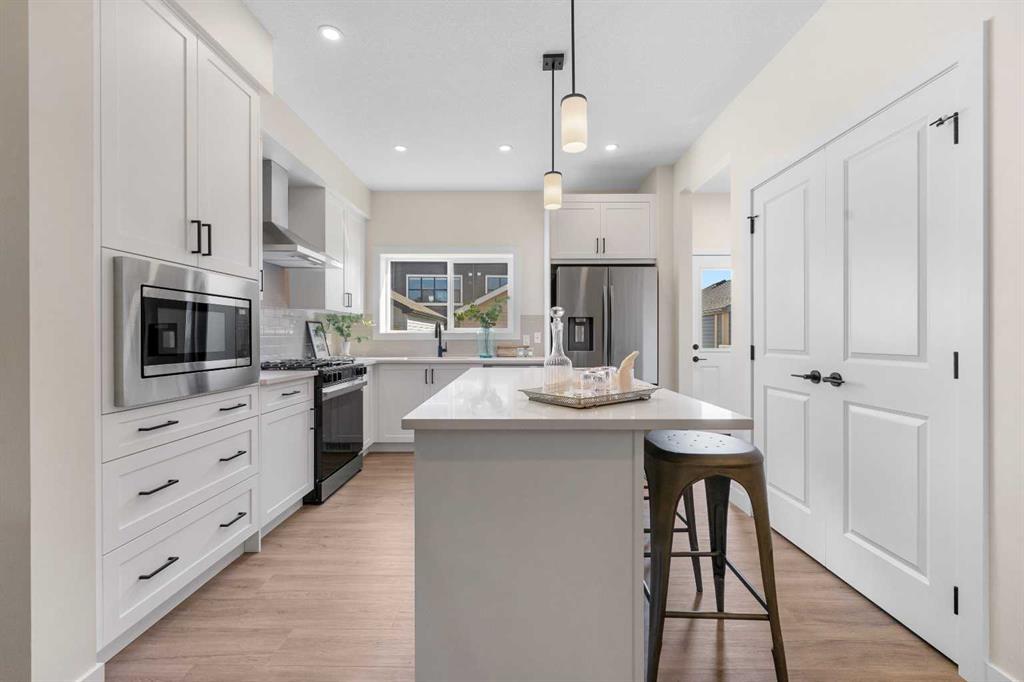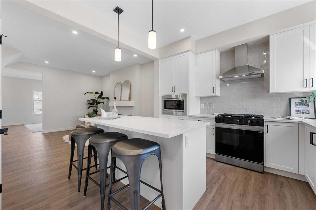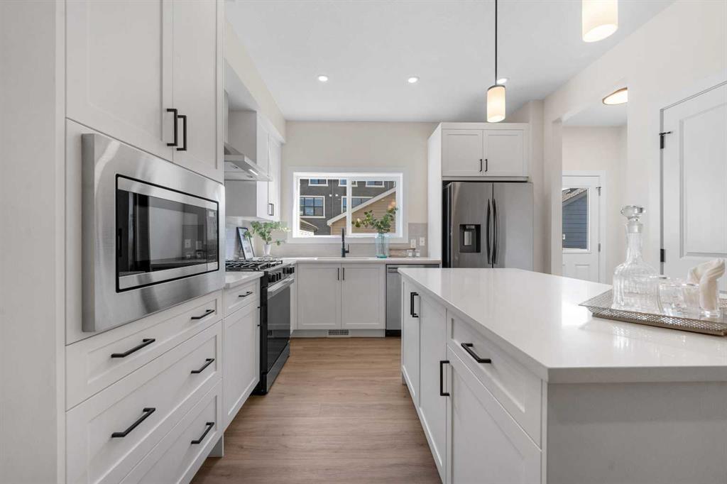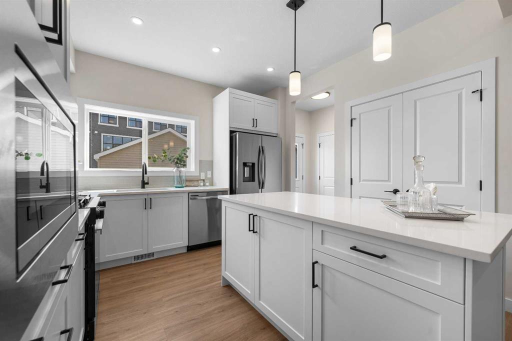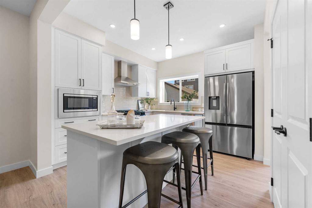 ** Brand New, Move in Ready Home built by Genesis Homes with a LEGAL 2 Bedroom Basement Suite ** The Amber | Stunning Open Floor Plan | Top of the Line Finishes | Sparkling Kitchen | Quartz Countertops | Stainless Steel Appliances | Kitchen Island | Barstool Seating | Pantry | 50″ Electric Fireplace | Wide Plank LVP Flooring | Recessed Lighting | Expansive Living Space | Main Level Flex Room | Upper Level Bonus Room | Upper Level Laundry | Totaling 5 Bedrooms & 3.5 Bathrooms | Legal 2 Bedroom Basement Suite | Separate Entry | Separate Laundry | 9Ft Basement Ceilings | Great Backyard | Double Detached Garage | Alley Access | Steps Away from the Future Park. Welcome to your brand new 2-storey family home boasting 1,610 SqFt throughout the main and upper levels with an additional 747SqFt legal 2 bedroom basement suite. Step inside to a foyer with open to below ceiling and views into the open floor plan main level. This home was designed with style and comfort at the forefront; wide plank LVP flooring, large windows, recessed lighting, high ceilings and more! The front flex room is ready for anyone with a work-from-home lifestyle or can easily be used as a day seating entertainment room. The great room is both spacious and comfortable plus has a stylish flare of a 50″ electric fireplace. Next are the kitchen, family and dining rooms. The kitchen is outfitted with a sparkling quartz countertop, stainless steel appliances, ample cabinet space and a centre island with barstool seating. The dedicated dining room is ready for you to enjoy all your family meals. At the rear of the home is a mud room with closet storage and a door to your back yard and rear double detached garage. The main level is complete with a 2pc bath. Upstairs you’ll find 3 sizeable bedrooms all with wide plank LVP flooring. The primary bedroom has its very own 3pc ensuite bath and a walk-in closet. Bedrooms 2 & 3 share the 4pc bath with a tub/shower combo. The upper level hall laundry is every home owner’s dream as its located steps away from all bedrooms! Downstairs, the LEGAL 2 bedroom basement suite has a separate entry and its own laundry facility making it a completely independent level to this home. This is great as a mortgage helper or for extended family. The basement has 2 sizeable bedrooms, each with great closet space. The open floor plan kitchen and rec room provide flexibility for living and dining. The kitchen is outfitted with quartz countertops, stainless steel appliances and full height cabinets. The 4pc bath on this level has a tub/shower combo and single vanity. Outside is a great backyard and rear double detached garage with alley access. Genesis Builders Group follows the First-Time Home Buyer GST/HST Rebate to eliminate the 5% GST on qualifying new homes (up to $1 million) for qualifying first time home buyers. Hurry and book a showing at this gorgeous brand new Genesis home today!