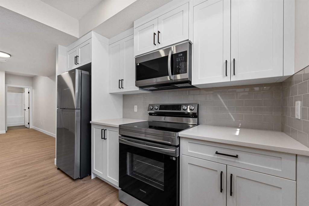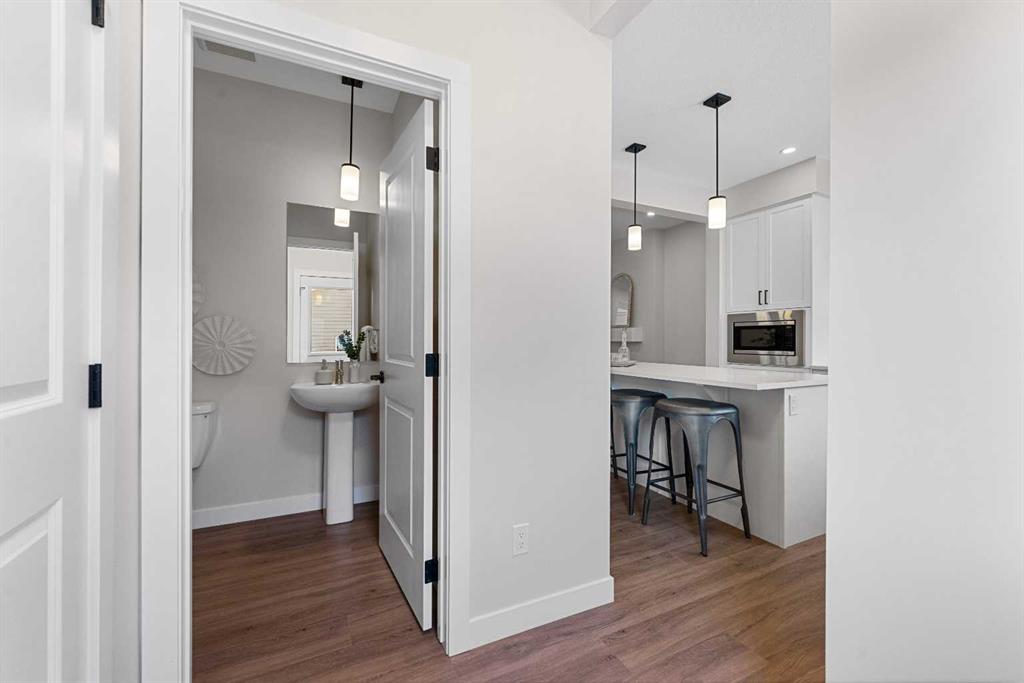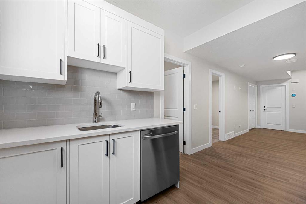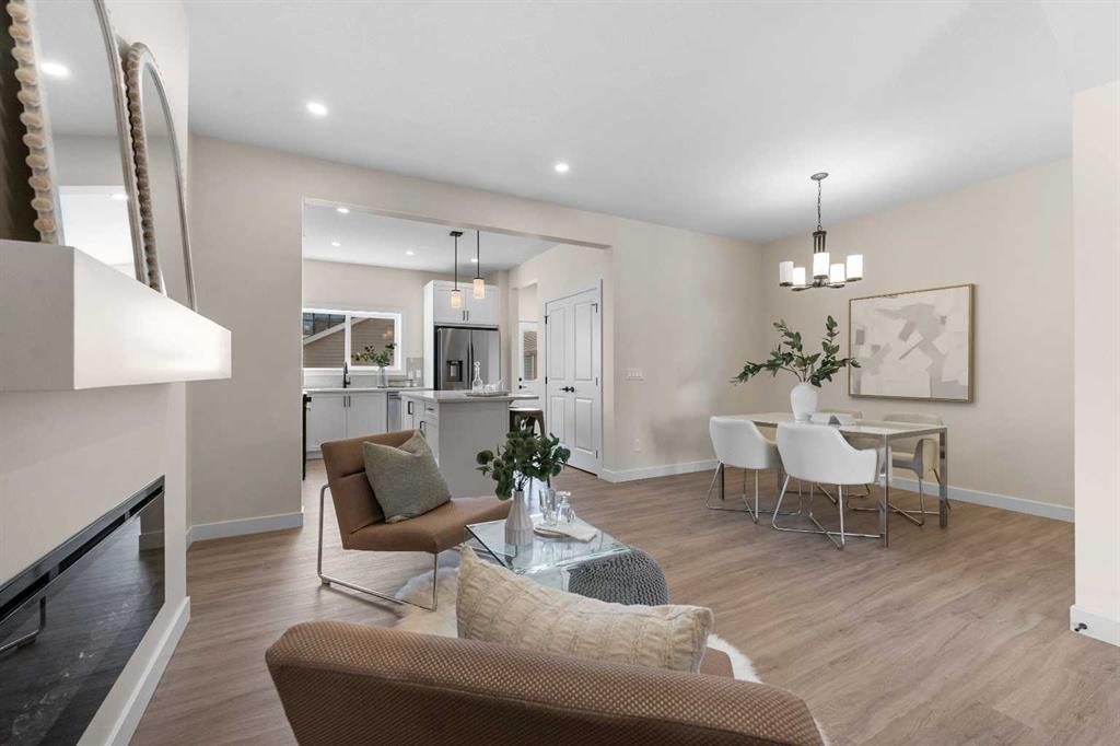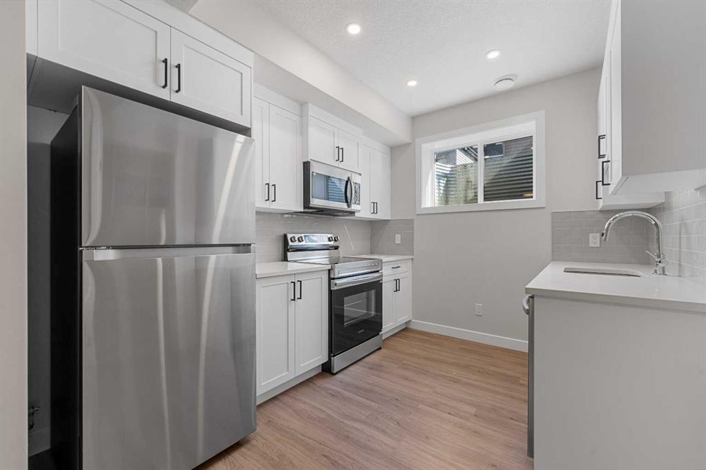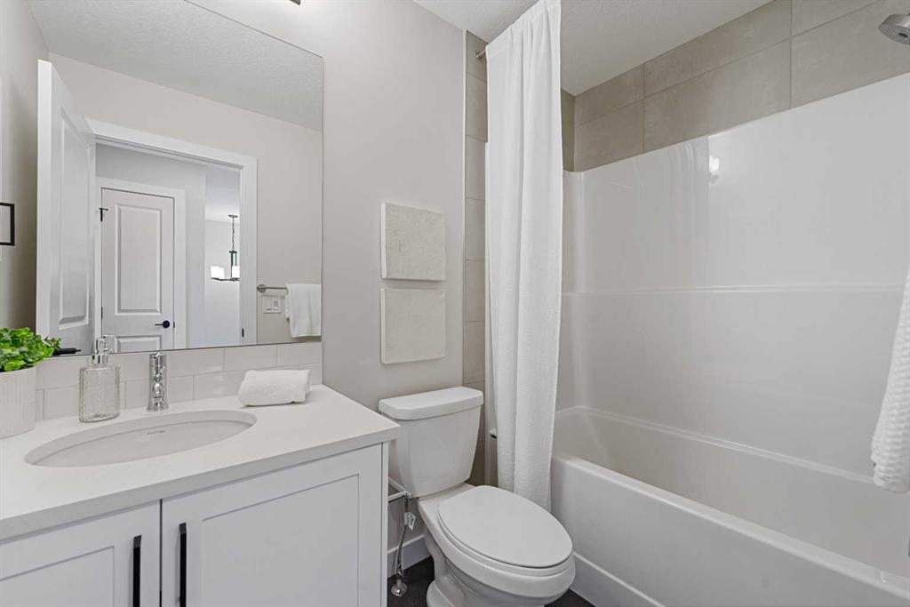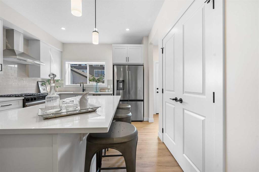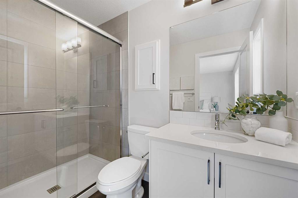 ** Brand New, Move in Ready Home built by Genesis Homes with a LEGAL 2 Bedroom Basement Suite ** The Amber | Stunning Open Floor Plan | Top of the Line Finishes | Sparkling Kitchen | Quartz Countertops | Stainless Steel Appliances | Kitchen Island | Barstool Seating | Pantry | 50″ Electric Fireplace | Wide Plank LVP Flooring | Recessed Lighting | Expansive Living Space | Main Level Flex Room | Upper Level Bonus Room | Upper Level Laundry | Totaling 5 Bedrooms & 3.5 Bathrooms | Legal 2 Bedroom Basement Suite | Separate Entry | Separate Laundry | 9Ft Basement Ceilings | Great Backyard | Double Detached Garage | Alley Access | Steps Away from the Future Park. Welcome to your brand new 2-storey family home boasting 1,610 SqFt throughout the main and upper levels with an additional 747SqFt legal 2 bedroom basement suite. Step inside to a foyer with open to below ceiling and views into the open floor plan main level. This home was designed with style and comfort at the forefront; wide plank LVP flooring, large windows, recessed lighting, high ceilings and more! The front flex room is ready for anyone with a work-from-home lifestyle or can easily be used as a day seating entertainment room. The great room is both spacious and comfortable plus has a stylish flare of a 50″ electric fireplace. Next are the kitchen, family and dining rooms. The kitchen is outfitted with a sparkling quartz countertop, stainless steel appliances, ample cabinet space and a centre island with barstool seating. The dedicated dining room is ready for you to enjoy all your family meals. At the rear of the home is a mud room with closet storage and a door to your back yard and rear double detached garage. The main level is complete with a 2pc bath. Upstairs you’ll find 3 sizeable bedrooms all with wide plank LVP flooring. The primary bedroom has its very own 3pc ensuite bath and a walk-in closet. Bedrooms 2 & 3 share the 4pc bath with a tub/shower combo. The upper level hall laundry is every home owner’s dream as its located steps away from all bedrooms! Downstairs, the LEGAL 2 bedroom basement suite has a separate entry and its own laundry facility making it a completely independent level to this home. This is great as a mortgage helper or for extended family. The basement has 2 sizeable bedrooms, each with great closet space. The open floor plan kitchen and rec room provide flexibility for living and dining. The kitchen is outfitted with quartz countertops, stainless steel appliances and full height cabinets. The 4pc bath on this level has a tub/shower combo and single vanity. Outside is a great backyard and rear double detached garage with alley access. Genesis Builders Group follows the First-Time Home Buyer GST/HST Rebate to eliminate the 5% GST on qualifying new homes (up to $1 million) for qualifying first time home buyers. Hurry and book a showing at this gorgeous brand new Genesis home today!