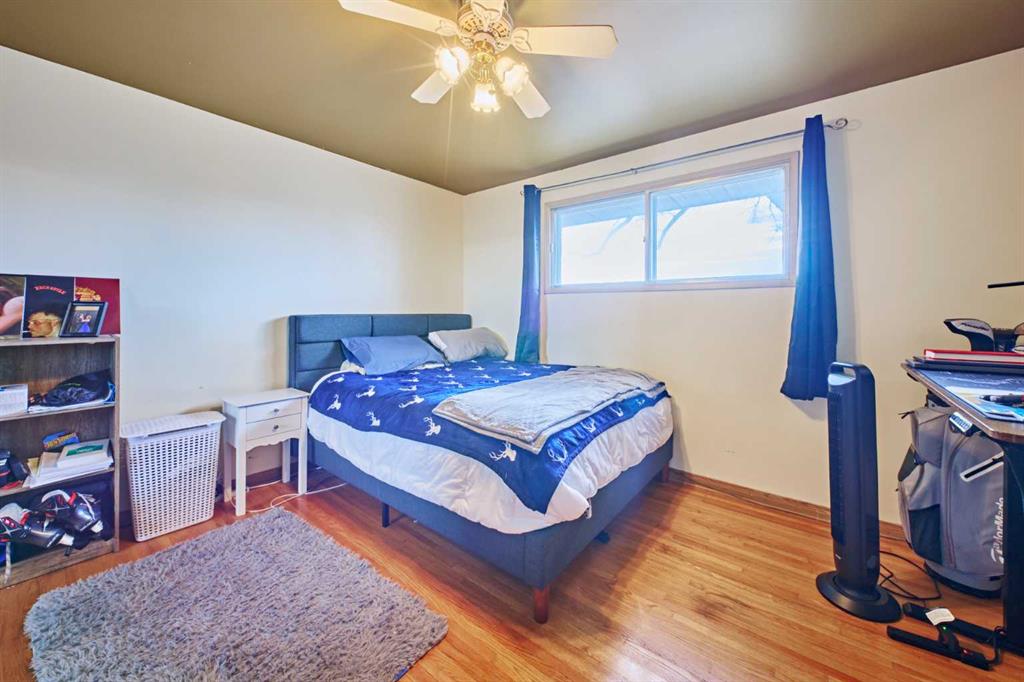 Original Oak hardwood flooring through out the main floor. Large country kitchen with eating area facing south overlooking a park across the street and a lovely southwestern sunset over the city at night. Large 3 bedrooms up plus a full bath. Separate entrance to downstairs has 3 bedrooms, kitchen, recreation room and a full bath. Flooring in basement done in ceramic tile. Large porch with sun room in back with irregular back yard and back alley.