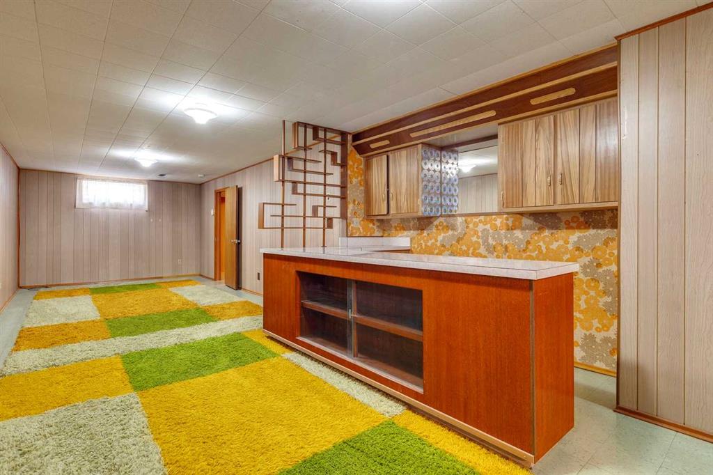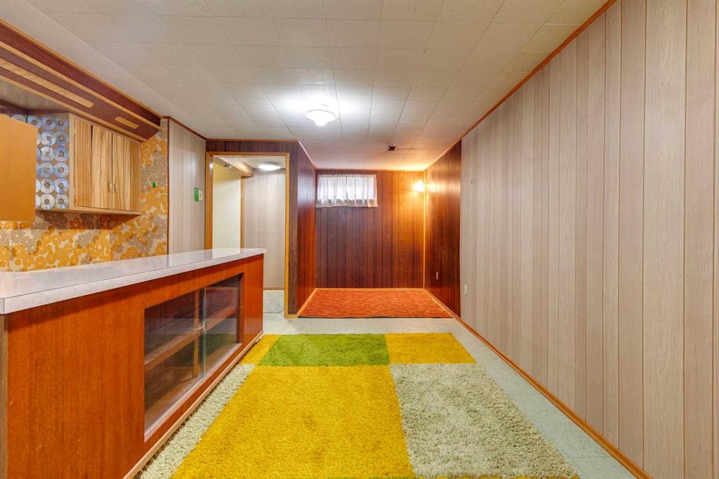 If you’ve been dreaming of your next project, this 1960s bungalow is ready to inspire. Original condition and value priced, it’s packed with retro charm for those who love mid-century details, or the chance to create something entirely new on the spacious lot. The sunny living room is a time capsule, with its original built-in bookcase/display shelf, panelled accent wall, sculpted plaster ceiling and big south east facing window. Imagine how you could transform the kitchen and dining room, which overlook the spacious backyard. The potential is incredible! There are three bedrooms with original hardwood floors, and a four piece bathroom with a powder pink bathtub. Downstairs, the developed basement is a love story to the sixties, featuring a colourful checkered shag carpet, patterned floral wallpaper, and a mid century bar, along with the fourth bedroom, a bathroom and laundry/storage area. The lot is 55’ wide, bigger than most in the area and the backyard is generous, with a magnificent evergreen tree taking centre stage. There is excellent potential for a future garage and garden while the current side driveway is accessible from the front street providing convenient parking. This family friendly neighbourhood offers quick access to the shops and businesses of Macleod Trail and Deerfoot Meadows. It is an ideal location for a young family, a house flipper, or a developer looking to build new. Yes, it needs work. But with vision and creativity, this bungalow could be transformed into a sweet little dream home.