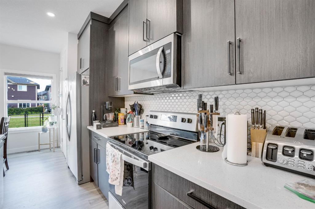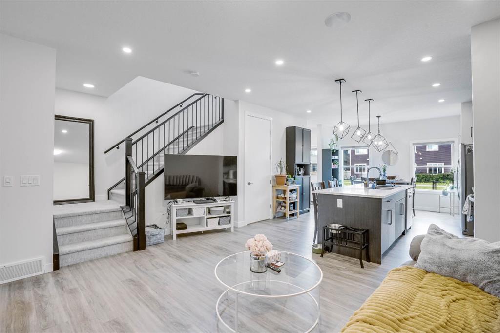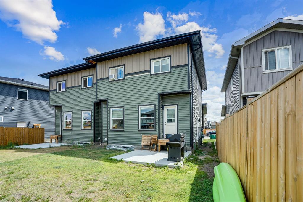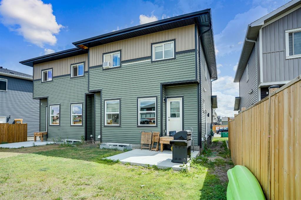 Welcome to this stunning semi-detached home with a front-attached garage, nestled in the vibrant and family-friendly community of Midtown, Airdrie. Thoughtfully designed with both style and functionality in mind, this two-storey home is perfect for families or anyone seeking a modern, connected lifestyle. Step inside to a bright and contemporary kitchen overlooking the charming courtyard, complete with sleek countertops, stainless steel appliances, and a spacious centre island. The open-concept main floor flows effortlessly, creating the ideal space for everyday living and entertaining. Upstairs, you’ll find three spacious bedrooms, including a luxurious primary suite featuring a walk-in closet and a private ensuite. A convenient upstairs laundry and an additional full bathroom complete this level. An unfinished basement with its own side entrance, ready to be transformed into a space that fits your needs. Outside, enjoy a large backyard along with access to scenic walking paths, schools, shopping, and all of Airdrie’s best amenities just minutes away.