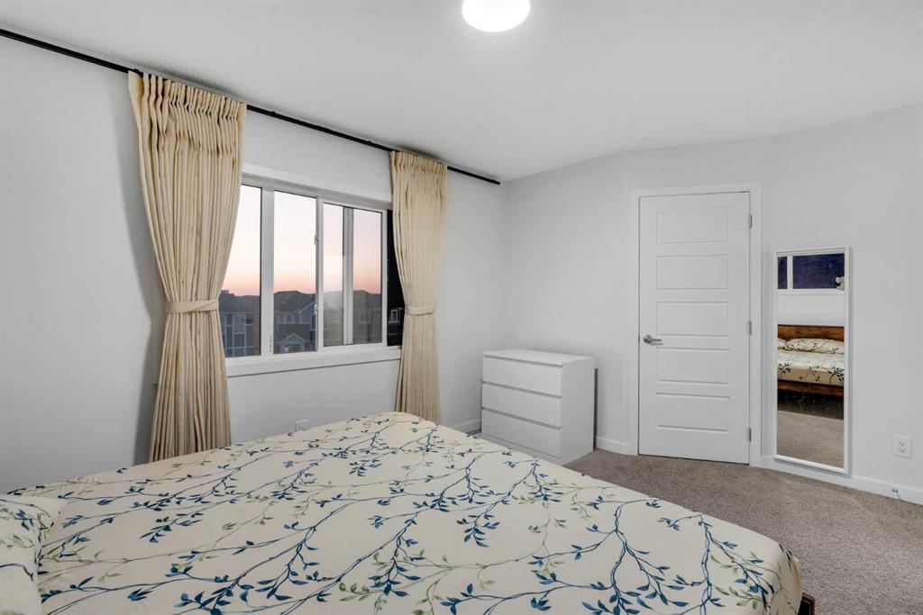 The upper level offers three well-sized bedrooms, including a primary suite with a walk-in closet and 3-piece ensuite, as well as two additional bedrooms, a full 4-piece main bathroom, and upper-floor laundry for everyday convenience. Large corner windows provide excellent natural light throughout the home. Located close to parks, pathways, transit, shopping, and with quick access to Stoney Trail, this property combines space, comfort, and exceptional value in a highly desirable Redstone location.