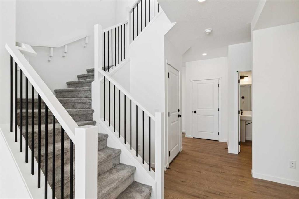 Legal basement suite! The Canyon 2 duplex by Daytona homes has all of the elements of a single family home, with duplex pricing. Complete with over 1900 sq ft of living space, and a double front attached garage, you are getting the best of both worlds size/ pricing wise. The main floor has a bright open concept, with a convenient tech space perfect for home office or study. Upstairs you’ll find a central bonus room, laundry room, and 3 bedrooms including a large primary bedroom with 5 piece ensuite and walk in closet. This home also comes with a completed legal basement suite with another 493 square feet of living space or extra space for your family. A deck with stairs to grade lead you to your beautiful west facing backyard. Photos are representative.