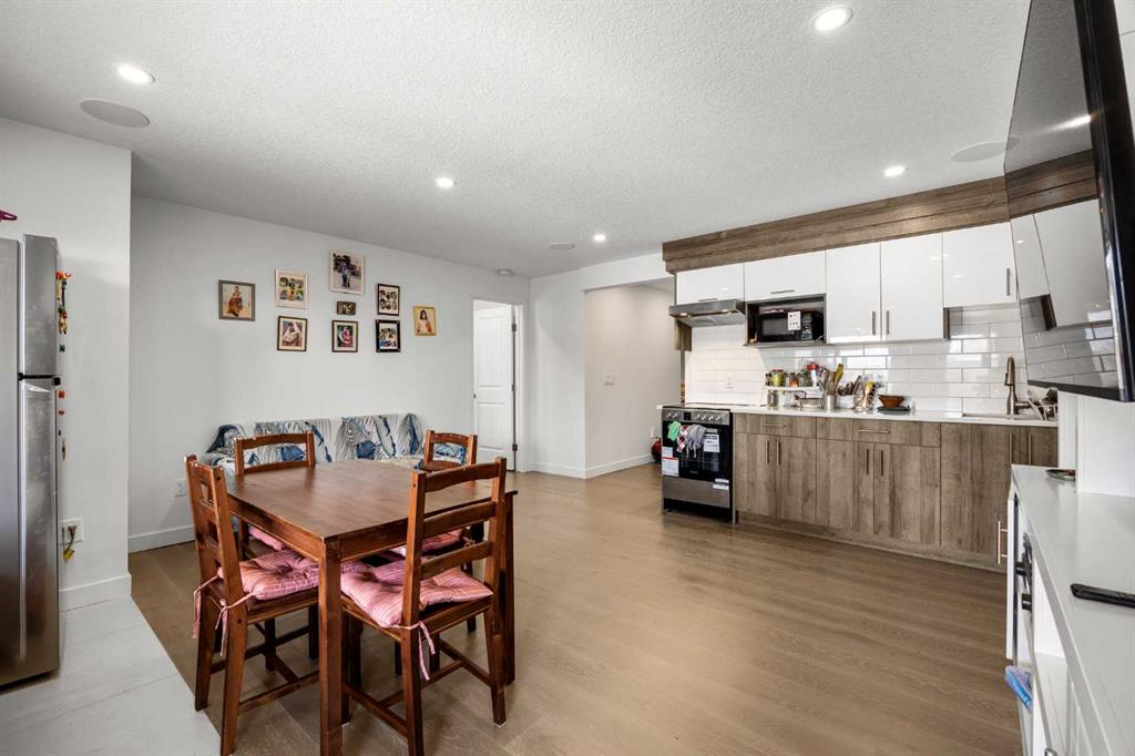 The illegal basement suite features a functional Kitchen with quartz countertops and stainless steel appliances, open Living area, 2 bedrooms each with walk-in closets, a 4-piece bath, and in-suite laundry. From the Living room, step out to a covered full-width patio. A separate back entry provides comfortable, private living space for tenants or extended family.