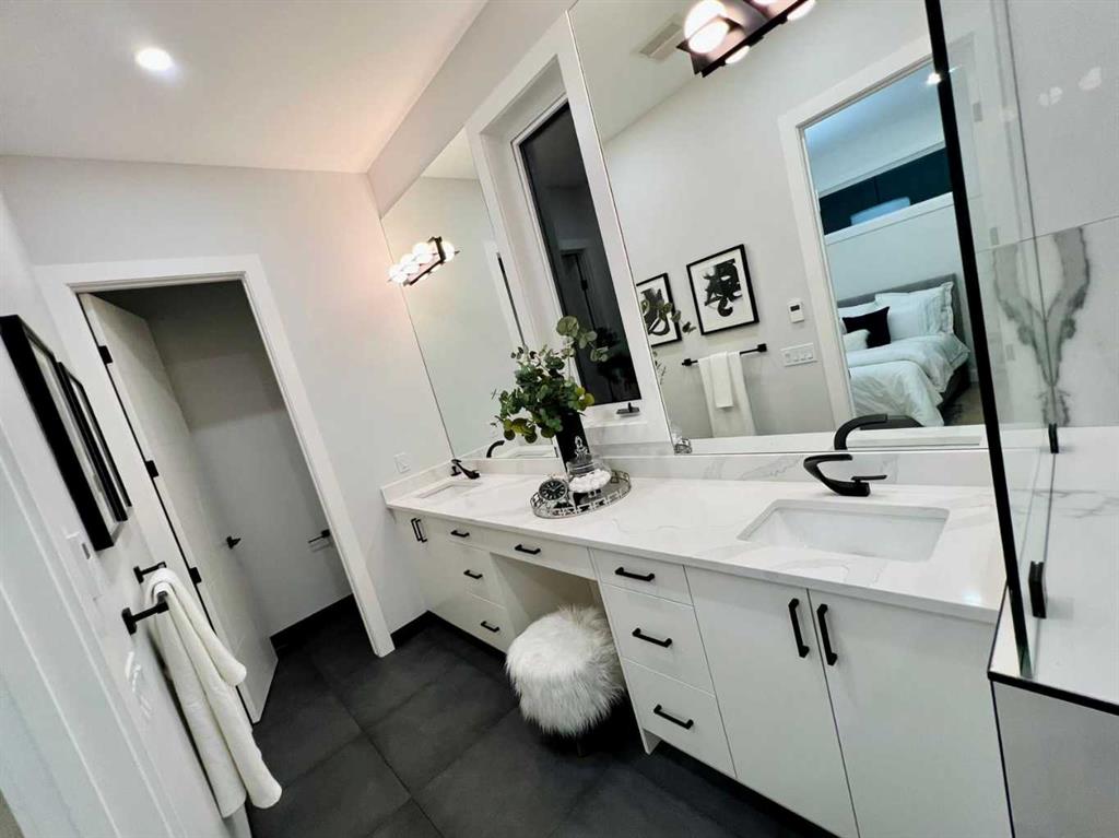 Upstairs, retreat to the exceptional oversized primary suite featuring a giant walk-in closet and a spa-like ensuite with heated floors, oversized shower with bench, freestanding soaking tub, and large windows for natural light. Two additional bedrooms with 11’ ceilings and downtown views, a beautiful laundry room, and an extra-large linen closet complete the upper level.