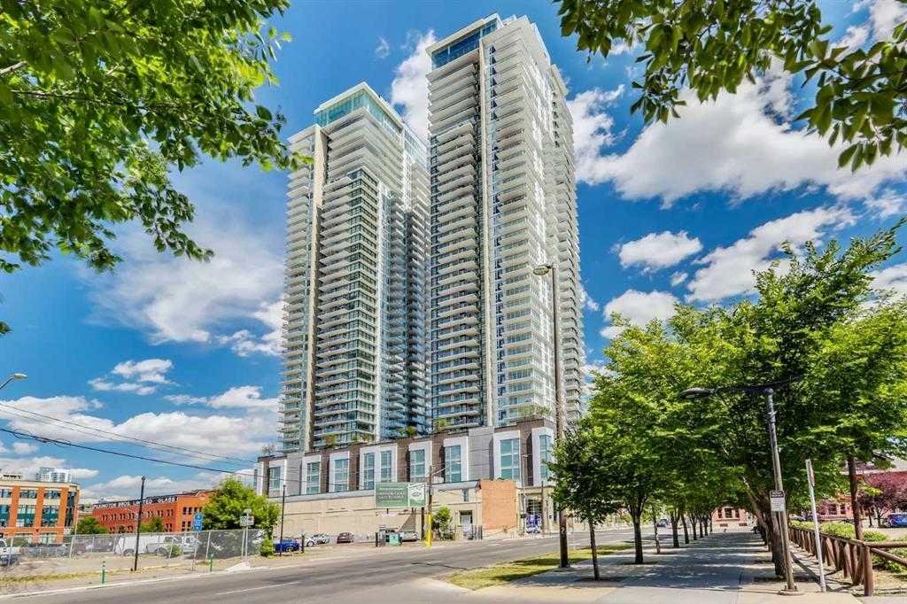 Spectacular South Views in this 1-Bedroom Layout . Luxury Living in The Guardian. Welcome to your sky-high sanctuary in The Guardian—Calgary’s tallest residential tower. This stunning one-bedroom condo boasts south unobstructed, panoramic views of the Rocky Mountains, Calgary skyline, and breathtaking sunsets through floor-to-ceiling west-facing windows. Offering the largest 1-bedroom floor plan in the building, this unit includes a built-in desk and bookshelf, kitchen island, and a spacious 110 sq ft balcony—perfect for working from home or entertaining guests. The modern kitchen features sleek cabinetry, integrated appliances, and undercabinet lighting, creating a clean, contemporary aesthetic. Wake up to sunrises over the Calgary Tower, and enjoy the comfort of central A/C during summer months. Enjoy five-star amenities including:j24-hour concierge service, Secure titled underground parking. Fully equipped fitness centre, Workshop, Party room, Assigned storage locker With a Walk Score of 94, you’re steps from everything: Stampede LRT Station, Pixel Park, Sunterra Market, Music Mile & East Village Restaurants, cafés, and bike paths, The Elbow River and Stampede Grounds Whether you’re a working professional, an investor, or seeking a vibrant urban lifestyle, this home checks every box. Come book your private showing today!