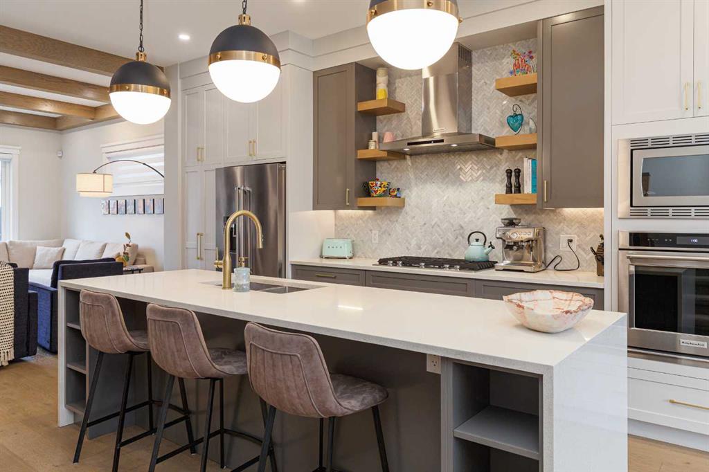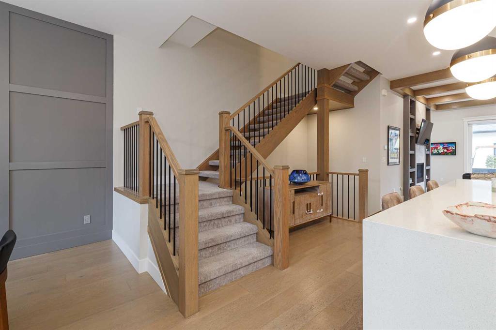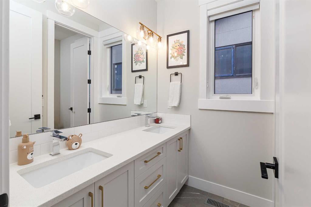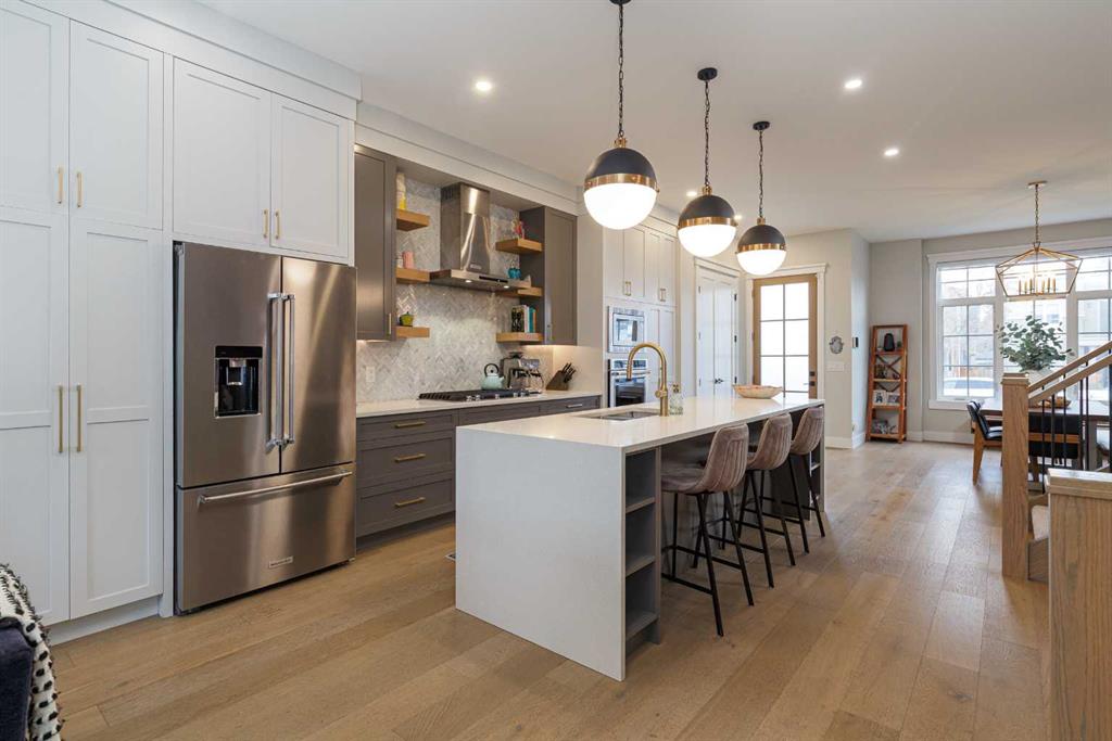 SYLISH l SOPHISTICATED l TIMELESS DESIGN l MODERN LUXURIOUS FINISH l FULLY UPGRADED l INCREDIBLE CURB APPEAL IN KILLARNEY l WEST FACING YARD l MATURE LANDSCAPING l DEVELOPED STREET l 4 BED + 3.5 BATH l OVER 3050 SQFT OF LIVING SPACE l Welcome Home… to this stunning modern farmhouse infill that masterfully blends sophistication, comfort, and contemporary style. Upon entry, you’re greeted by 10 ft ceilings & an elegant front formal dining room w/ custom feature wall, hardwood flooring that flows seamlessly throughout the main floor. The gourmet kitchen centers around a sprawling island, perfect for entertaining, and opens to a bright living area featuring a sleek contemporary fireplace with custom built-ins. Large sliding patio doors extend the living space outdoors to a full-width deck and a beautifully landscaped, west-facing backyard. Upstairs, 9-foot ceilings and warm hardwood floors create an inviting atmosphere. The exquisite primary suite serves as a true retreat, complete with heated floors, a luxurious steam shower, dual walk-in closets, and a private flex area ideal for a coffee bar or vanity. Two spacious secondary bedrooms, a full bath, and a convenient upper laundry room complete the second level, combining style with everyday practicality. The fully developed basement adds yet another level of comfort and versatility, featuring a large media room with built-in cabinetry, a wet bar, a 4th bedroom with a full bathroom, and a roughed-in hydronic heating system for future comfort. Ideally located just minutes from downtown, top schools, and boutique shopping, this home offers refined urban living with every modern amenity.