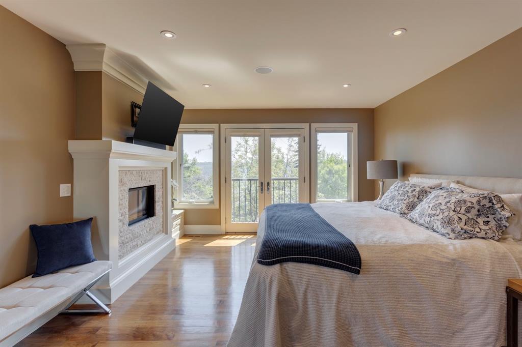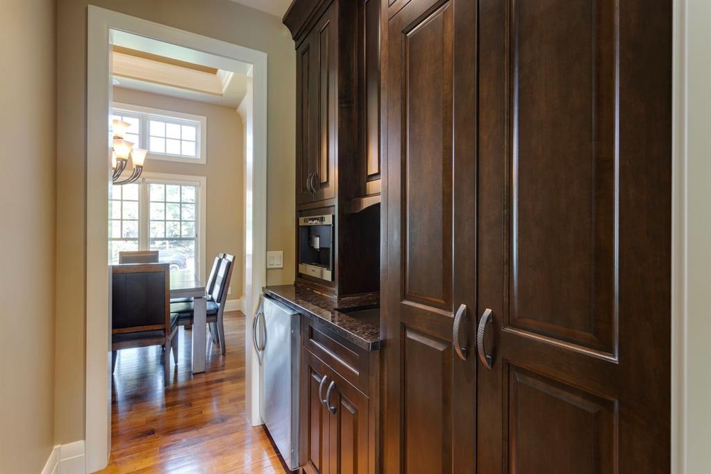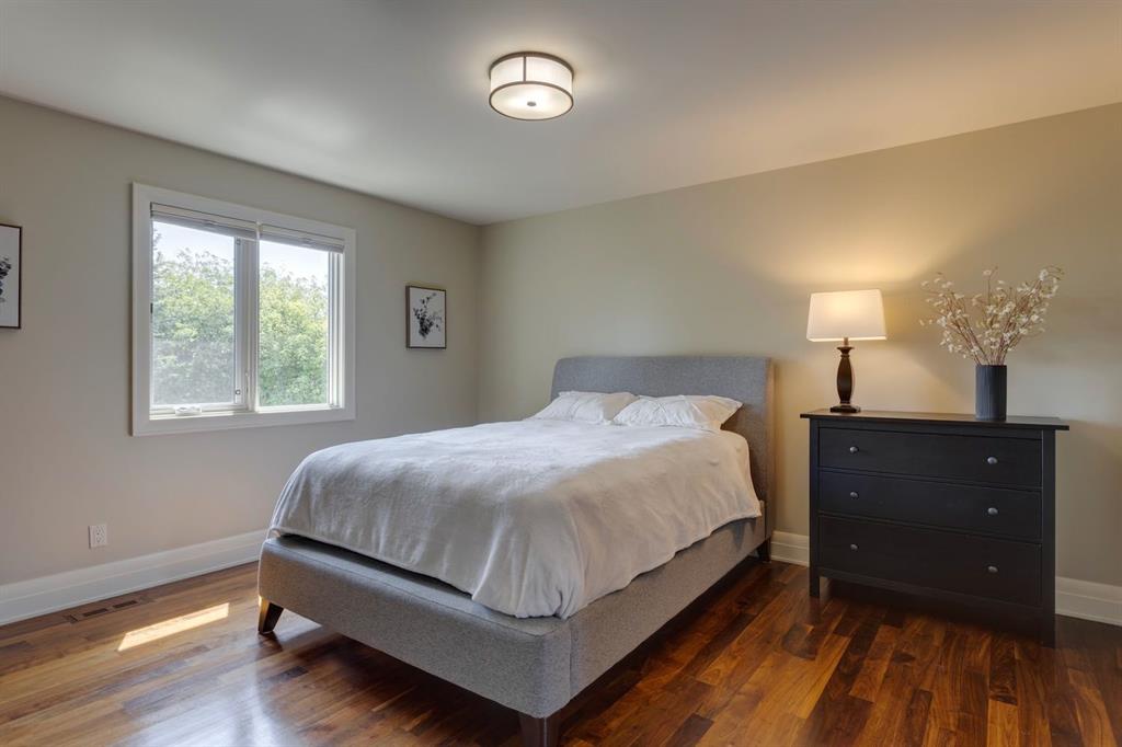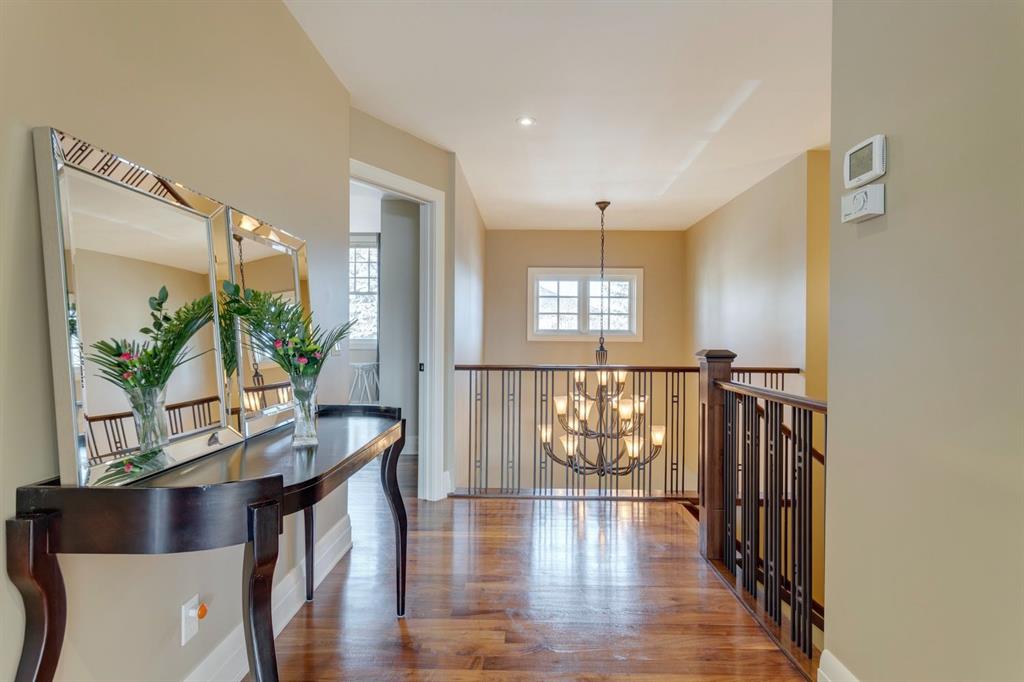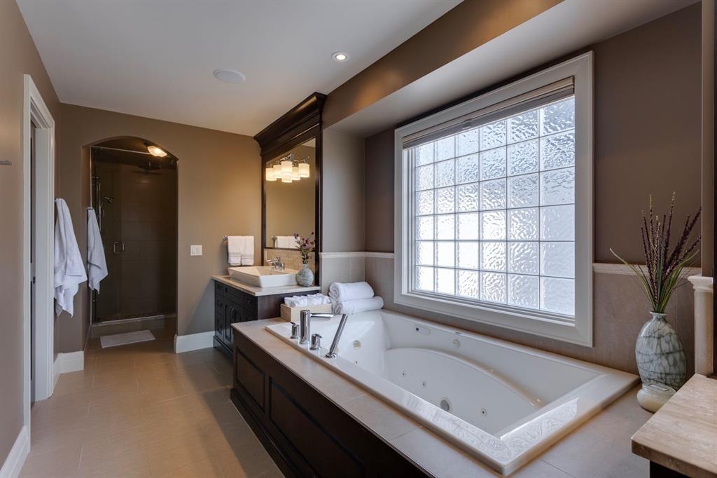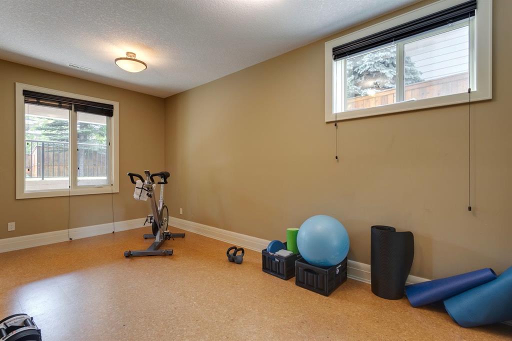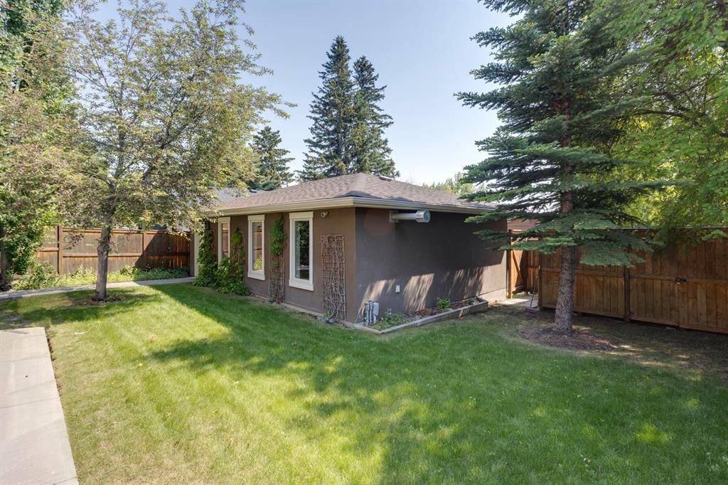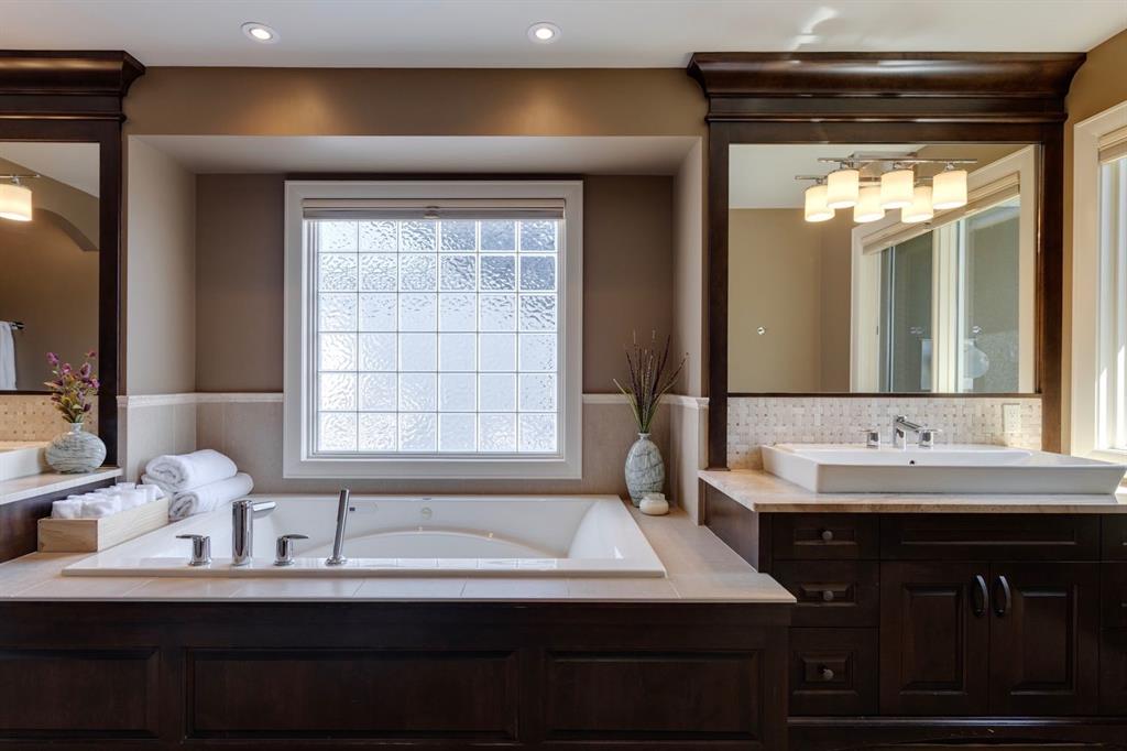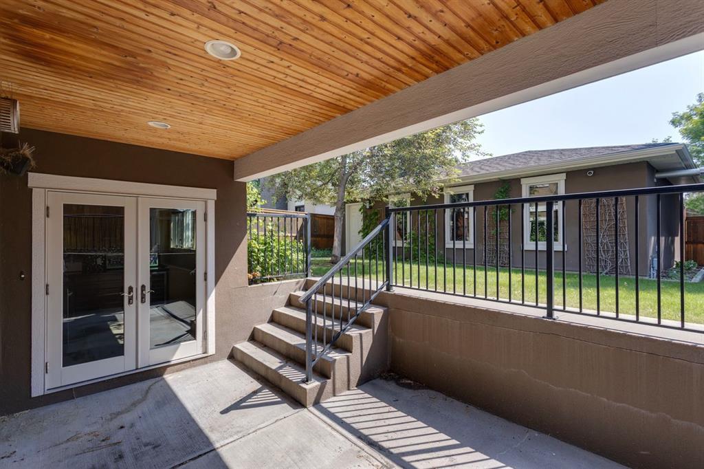 Welcome to this exquisite custom-built residence by Tribeca Homes, ideally positioned on a 55′ south-facing walk-up lot in the prestigious St. Andrews Heights. From the moment you arrive, the captivating curb appeal and charming front porch invite you to envision tranquil evenings at home. Step inside to soaring ceilings and impeccable craftsmanship, highlighted by over 4,090 sq ft of meticulously developed living space. Featuring site-finished walnut hardwood floors, solid core doors, detailed millwork, and elegant coffered ceilings, this home blends luxury with warmth. The grand travertine-tiled foyer impresses with a dramatic 19′ ceiling. French doors reveal a private home office adorned with custom built-ins and maple crown molding. The formal dining room offers paneled walls, a picture window, and a recessed ceiling detail — perfect for entertaining. The gourmet kitchen is a chef’s dream, outfitted with rich maple cabinetry, a massive 9’ granite island, and premium appliances including a Viking 6-burner gas cooktop with griddle, dual Viking wall ovens, Miele dishwasher, and a panelled fridge. A butler’s pantry connects the kitchen to the dining room, featuring a built-in Miele espresso machine and wine cooler. Adjacent, a bright breakfast nook opens to a raised south-facing deck — ideal for alfresco dining. The spacious living room is bathed in natural light and anchored by a stone-surround gas fireplace with custom built-ins, creating a warm, inviting atmosphere. Upstairs, a generous landing overlooks the foyer and leads to three large bedrooms, each with ensuite access. The luxurious primary suite is a private retreat, complete with a cozy sitting area, gas fireplace, Juliet balcony with treetop views, custom walk-in closet, and an opulent 6-piece ensuite featuring heated floors, dual vanities, a jetted tub, and steam shower. The fully developed walk-up lower level is designed for entertaining and relaxation, boasting a large family/media room with a gas fireplace, an elegant wet bar with raised granite counters, bar fridge, and dishwasher, plus a show-stopping wine cellar with cedar shelving for 400 bottles, enclosed by wrought iron gates. This level also includes a spacious bedroom, full bath, and a versatile flex room with cork flooring — ideal as a gym or studio. Outside, enjoy a spacious backyard with lush green space and a triple detached garage. A covered patio offers a welcoming space for additional seating or a hot tub. Don’t miss this rare opportunity to own a stunning, custom home in one of Calgary’s most sought-after communities!