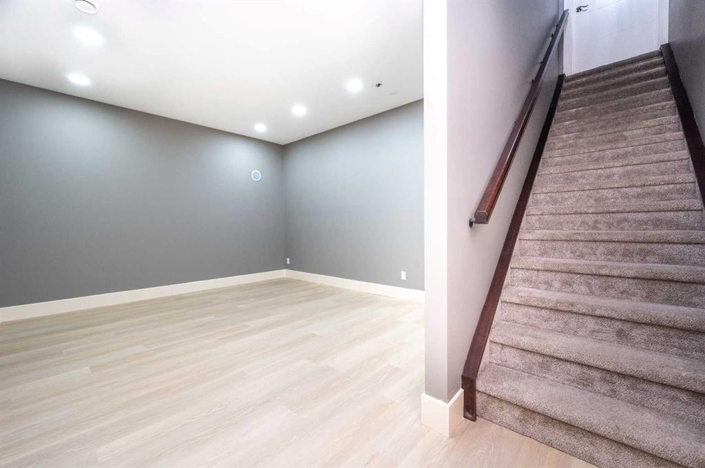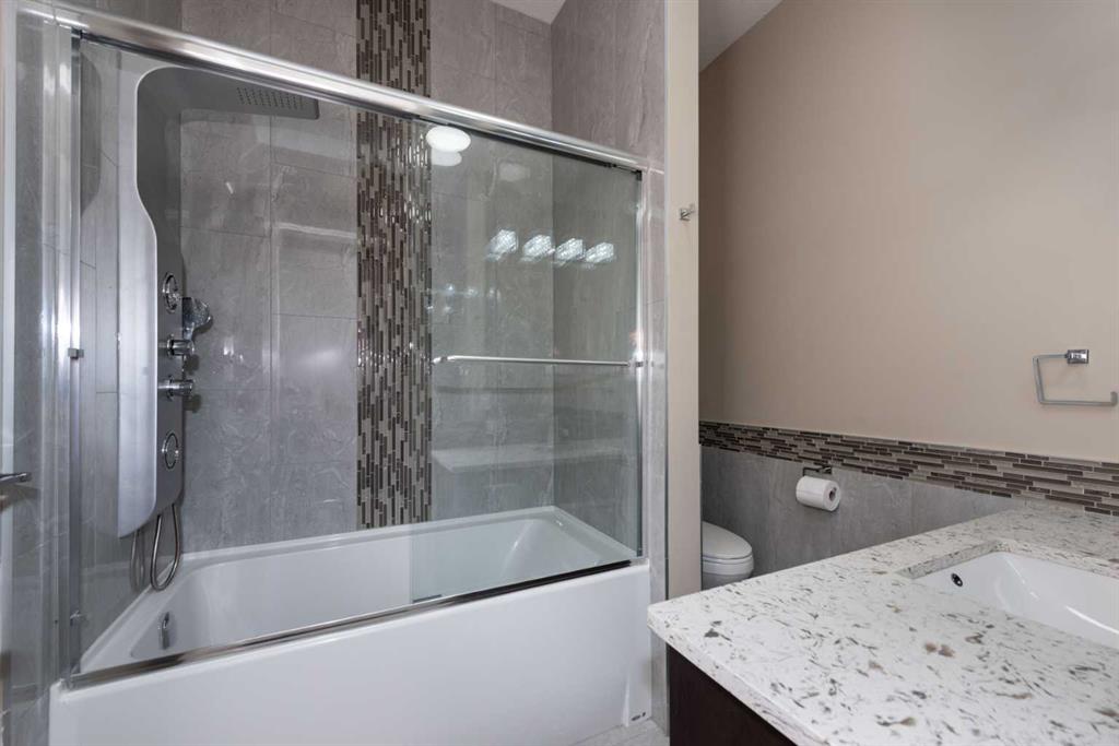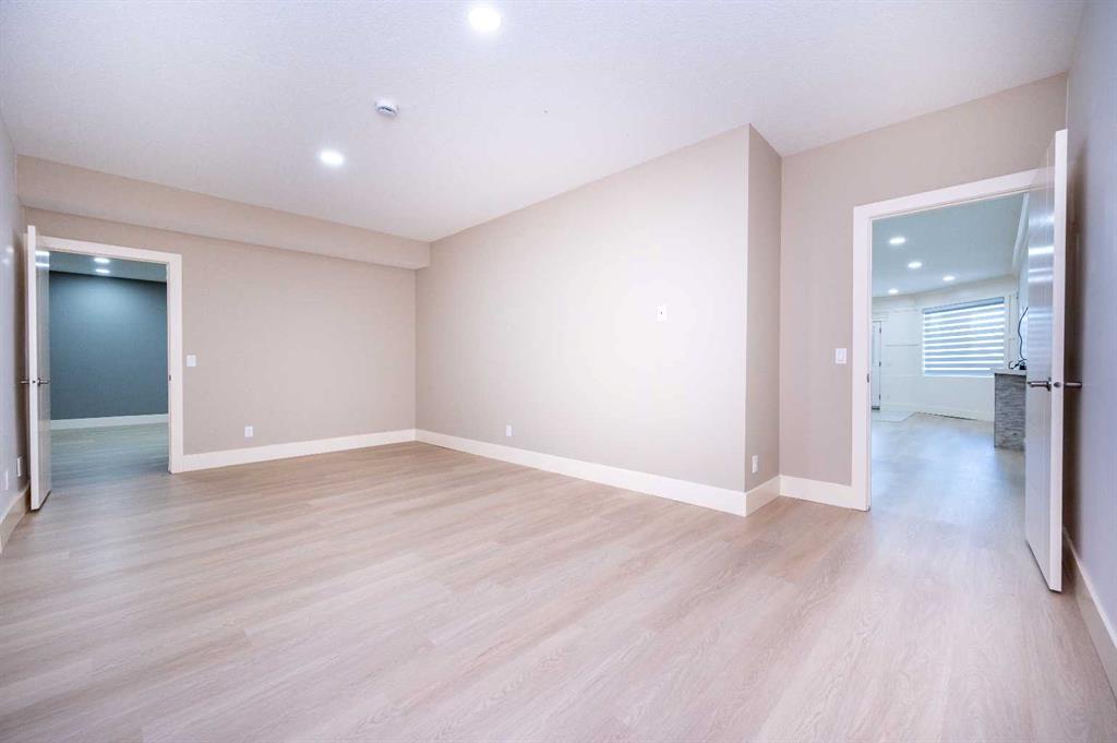 The fully developed walk-up basement has its own private entrance from both the backyard and the garage, offering incredible flexibility for multigenerational living or income potential. It includes a third primary bedroom with a walk-in closet and luxurious 5-piece ensuite, two more bedrooms sharing a 3-piece bathroom, a dedicated laundry room, a large den or office space, a full kitchen, and a spacious recreation room with a fireplace and separate entry walk-up access.