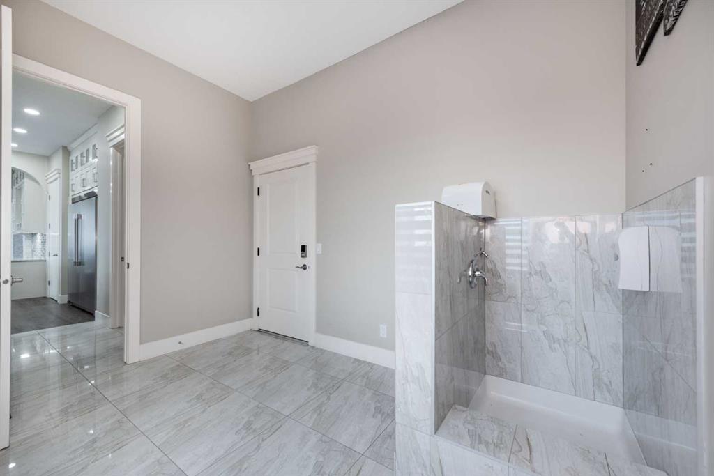 Upstairs, you’ll find two impressive primary suites, each featuring its own private balcony, walk-in closet, and upgraded spa-like ensuite with standing showers and tubs. Two additional well-sized bedrooms share a stylish 3-piece bathroom and a central storage area. South facing tall windows throughout the home ensure an abundance of natural light on every level.