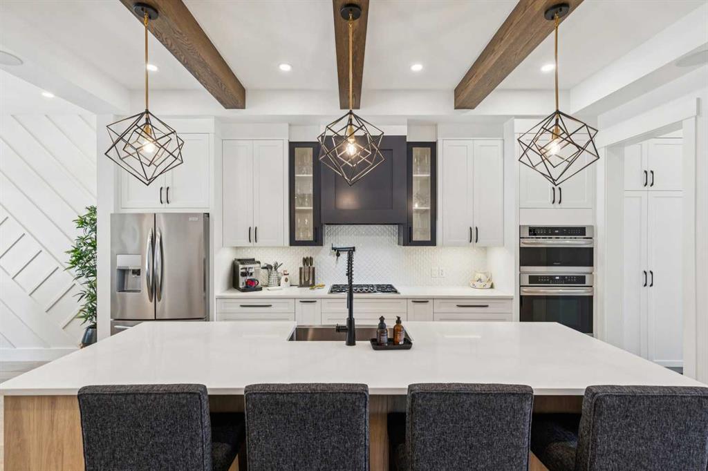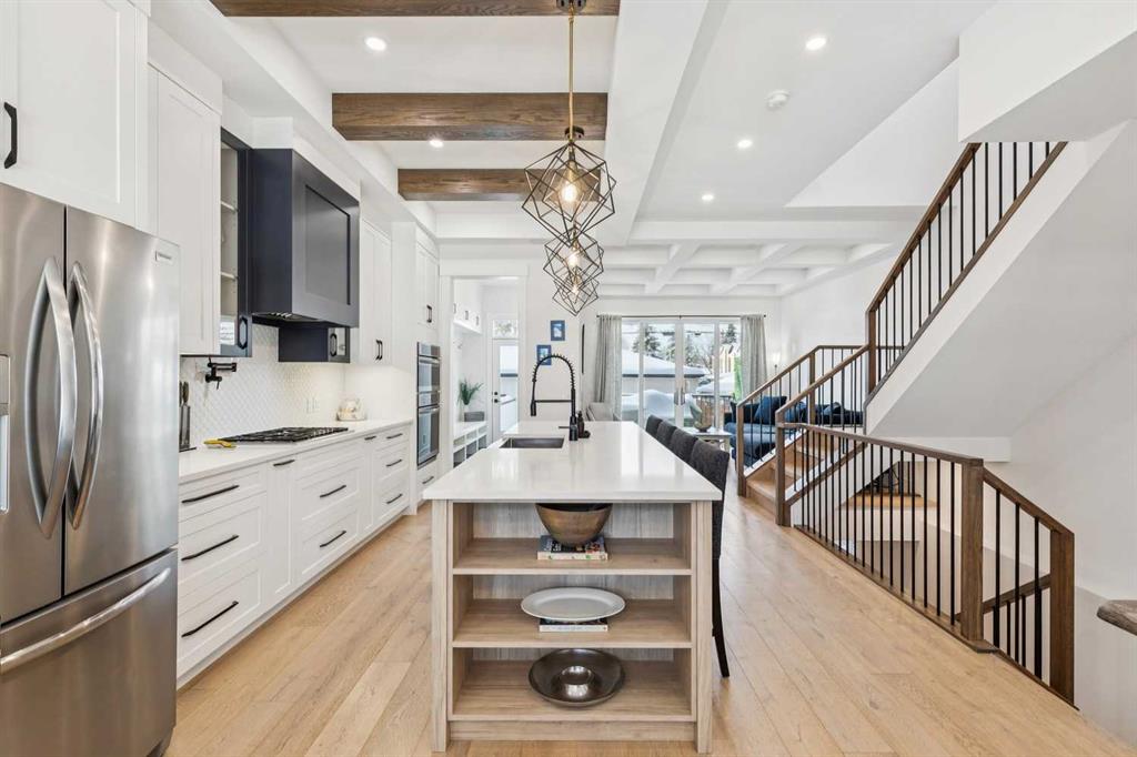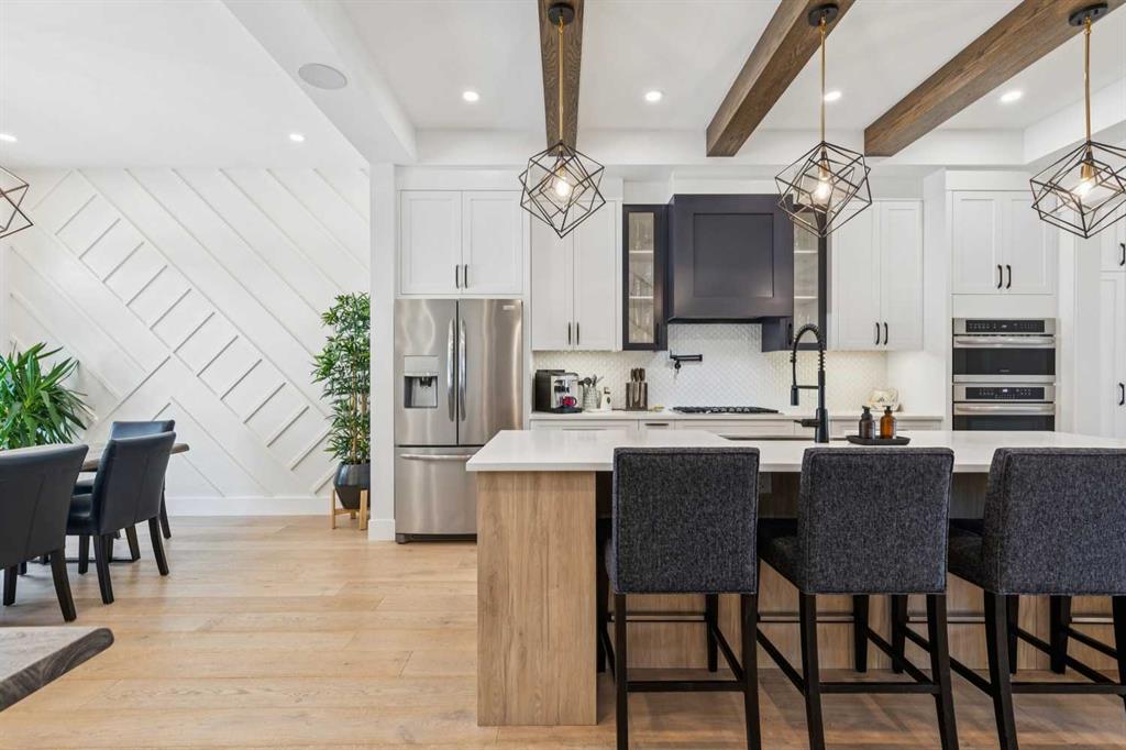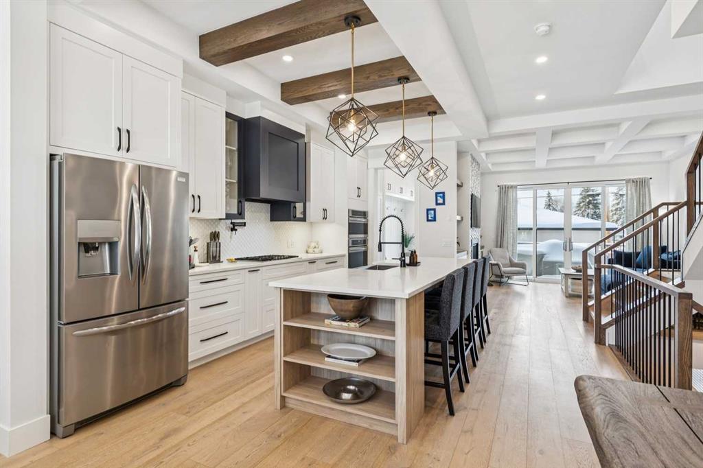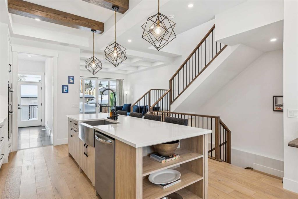 Welcome to 2835 42 ST SW, a spectacular custom-designed infill brimming with high-end finishes and thoughtful custom details. The moment you step inside, you’ll fall in love with the expansive sun-soaked windows and soaring 10-foot detailed ceilings. The heart of the home is the gourmet chef’s kitchen, a showstopper anchored by an oversized central island. It features a modern apron sink, timeless custom cabinetry, beautiful backsplash complete with a built-in pot filler, a custom crafted hood fan, and a premium appliance package—a truly exceptional space ready for any gathering. The spacious living room is highlighted by an eye-catching gas fireplace flanked by custom built-ins and seamlessly flows out onto the incredible west-facing backyard entertaining space. A large dining area, a thoughtfully curated mudroom, and a stylish powder room complete this meticulously designed main level. Ascend to the upper floor, which hosts a lavish primary suite designed as a true sanctuary that you won’t want to leave. Here, you’ll find detailed ceilings, a HUGE custom walk-in wardrobe, and a spa-inspired ensuite. This retreat indulges you with in-floor heating, an underlit floating vanity with dual sinks, a deep soaker tub, an artistic feature wall, and a luxurious tiled steam shower. This level also features two bright guest rooms, a dedicated second full bathroom, and a generous laundry room with a separate sink and ample built-in storage. The lower level is your ultimate entertainment zone, featuring comfortable 9-foot ceilings. Prepare to host in style with a fully equipped wet bar, a truly incredible custom-designed wine cellar built directly into the staircase, and integrated built-in speakers for a true theatre experience. This level is completed by a bright and spacious guest bedroom with a walk-in closet and an upgraded bathroom. Located just minutes from downtown, desirable schools, and all essential amenities, this location offers unparalleled urban convenience. Don’t miss this opportunity to acquire this spectacular, move-in-ready property. For a better look and more additional information, be sure to view the immersive 3D Virtual Open House Tour and download the full detailed feature list.