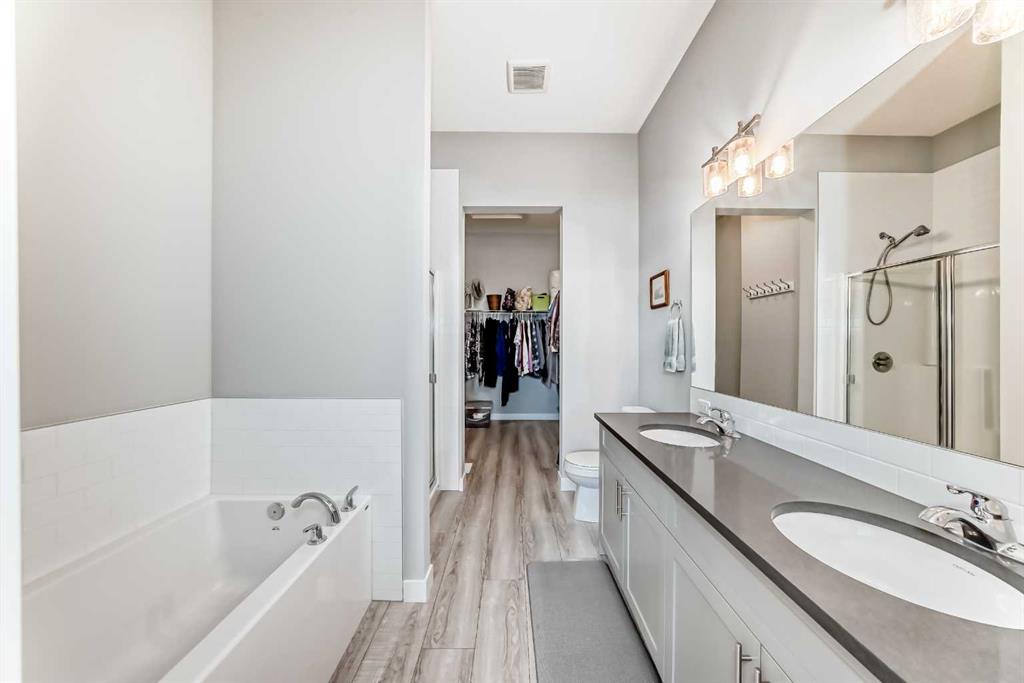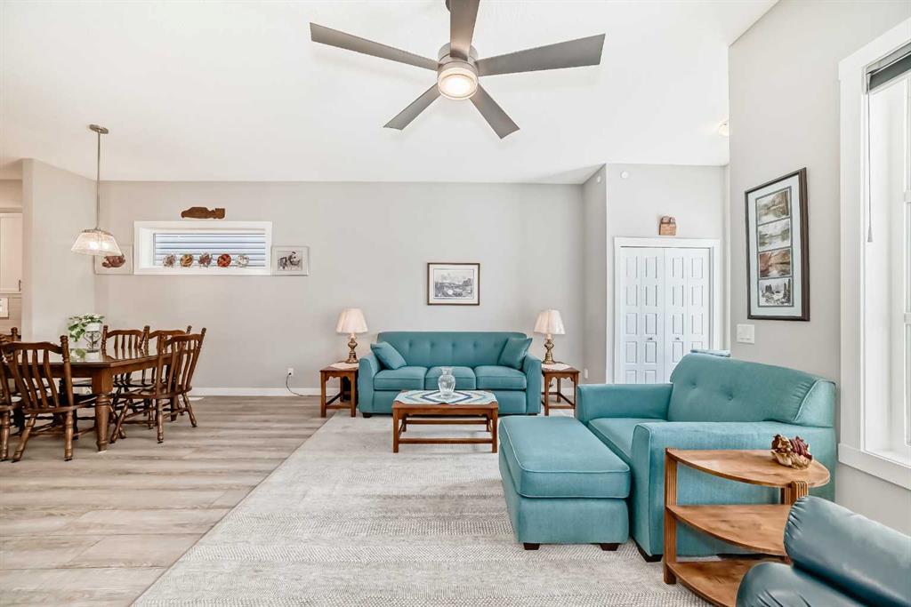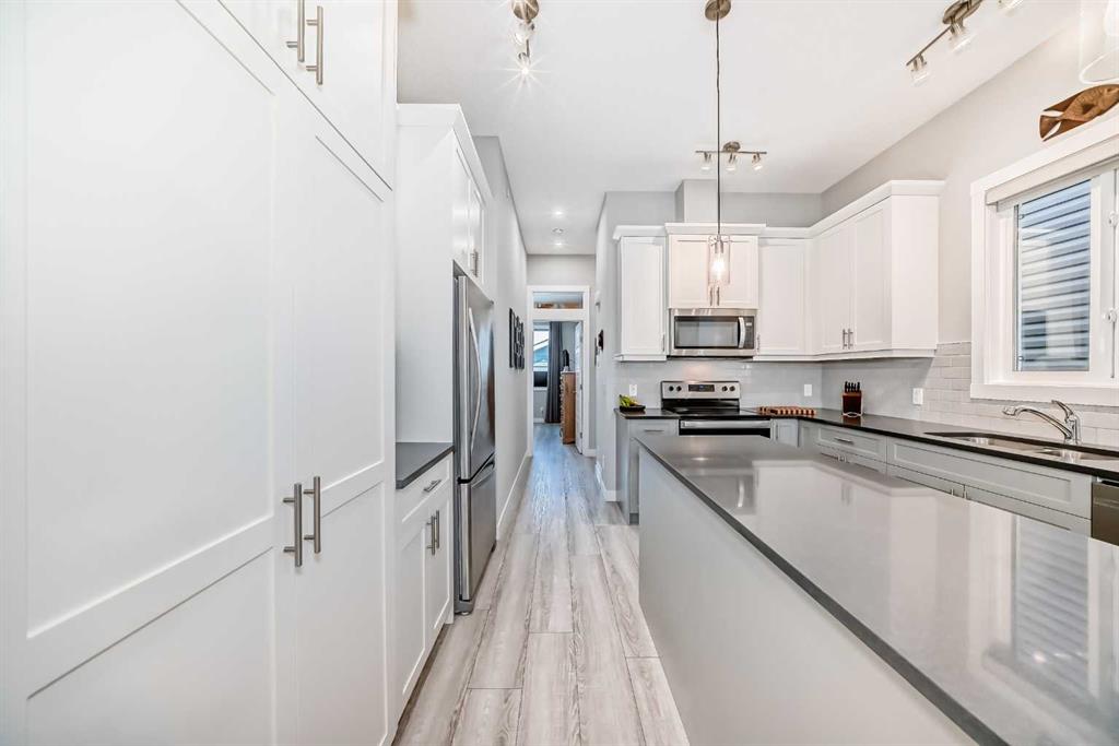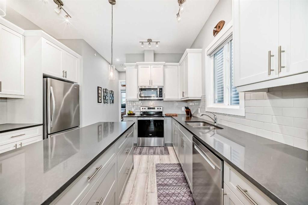 **WELCOME HOME!** Step inside this beautifully upgraded and meticulously maintained bungalow, where pride of ownership is immediately evident. Nestled in the highly desirable NW Livingston community, this immaculate 3-bedroom, 2.5-bathroom home combines modern elegance with everyday functionality. The exterior boasts durable *Hardie Board Siding* and *Class 4 shingles*, offering extra protection against hailstorms. Triple-pane windows and custom *Hunter Douglas blinds* add both style and energy efficiency, ensuring year-round comfort. Inside, the main level features soaring 10’ ceilings, luxury vinyl plank flooring, and an open-concept design that effortlessly connects the living room, dining area, and kitchen—creating a bright, airy space perfect for both entertaining and day-to-day living. At the heart of the home is the chef-inspired kitchen, complete with sleek two-toned cabinetry, gleaming *quartz countertops*, and a large central island. It’s fully equipped with stainless steel appliances, a microwave/hood fan combo, abundant cabinetry, and top-notch lighting that makes meal prep and gathering a true pleasure. The spacious primary bedroom is a private retreat, featuring a luxurious 5-piece ensuite with dual vanities, a deep soaker tub, and a walk-in closet. Large windows flood the room with natural light, enhancing the peaceful ambiance. A back boot room and laundry area, as well as a stylish 2-piece powder room, complete the main floor. The professionally developed lower level offers two additional bedrooms—each with walk-in closets—along with a modern 4-piece bathroom. High 9’ ceilings and a cozy family room with a gas fireplace provide the perfect place to unwind. Thoughtful lighting and plenty of storage make this space both functional and inviting. You’ll also find a Heat Recovery Ventilator (HRV). A *double detached garage* (19’9″x19′) offers ample parking and storage, and the property enjoys the convenience of a paved back alley. Located just minutes from Stoney Trail and Deerfoot Trail, this home offers quick access to downtown, shopping, entertainment, and more. Don’t miss the chance to make this dream home your own! **Call your favorite REALTOR® today to book your private showing!**