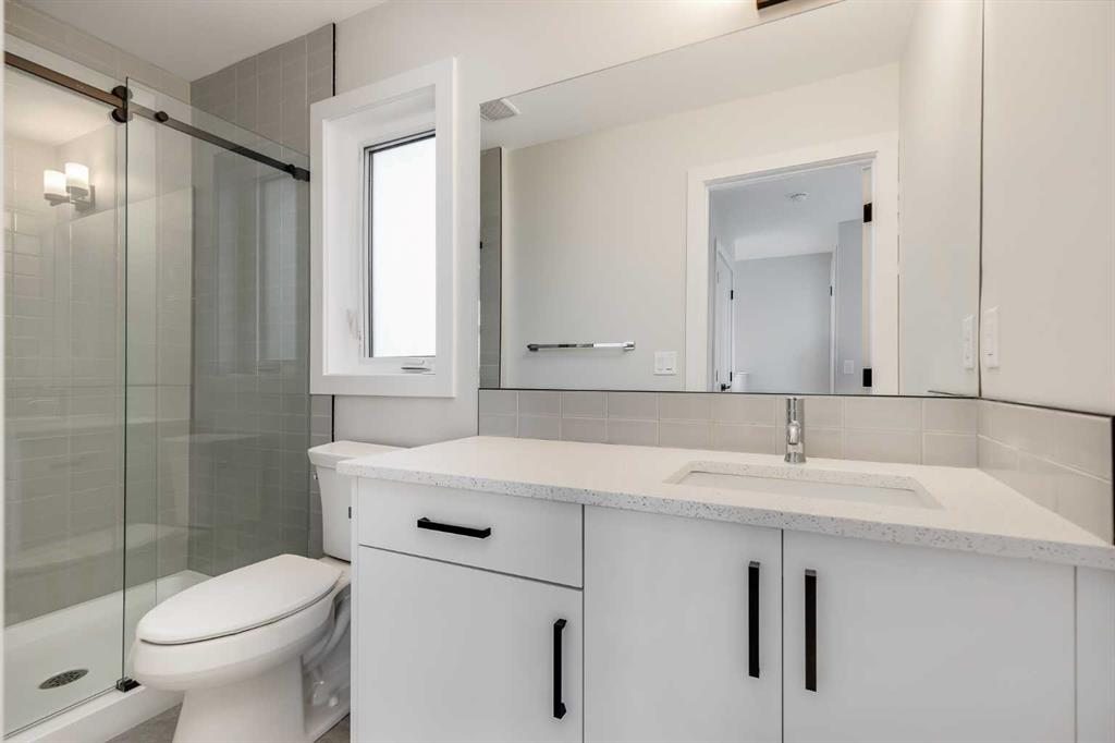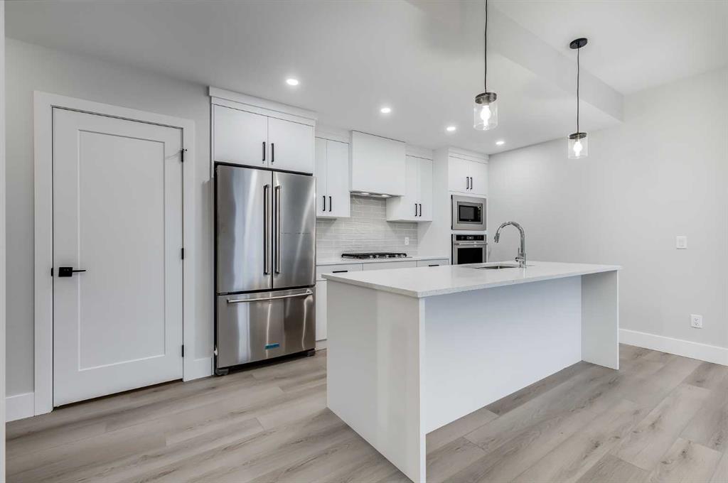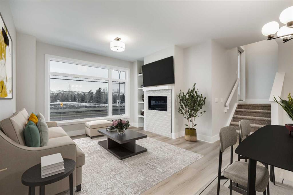 NEW TOWNHOME W/ ROOFTOP PATIO, GOLF COURSE VIEWS, & DOUBLE CAR GARAGE! Built in 2023, this modern townhome features a smart multi-level layout with a double attached garage in the front, along with a highly desirable dual primary bedroom layout with a loft-style flex space inside. The home also offers a rooftop patio and main floor balcony both facing the Shaganappi Point Golf Course. The entry level features a double attached garage with driveway parking, & lots of extra storage space. Head upstairs to the main living level which showcases a bright, open-concept design with durable vinyl plank flooring throughout and a welcoming living room anchored by a gas fireplace. The kitchen has Quartz countertops, built-in stainless steel appliances, a gas cooktop, a large island with seating, & even a walk-in pantry. A 2pc powder room finishes off the 2nd floor. Heading upstairs to the 3rd floor, you’ll find the 1st balcony off of the landing, perfect for a relaxing morning coffee! This floor is also home to the dual master layout, with two spacious bedrooms positioned for privacy. Each bedroom features large windows, a walk-in closet, and its own luxurious 5pc ensuite, making this layout perfect for roommates, guests, or shared living. A conveniently-placed laundry room completes the 3rd floor. Up the stairs again will bring you to the versatile loft space complete with its own 3pc bath. The loft can function as a 3rd bedroom, ideal WFH office space, media room, gym, or flexible space to suit your needs. A second balcony on this level extends the living space outdoors, finished with composite decking and glass railings, there is plenty of space for loungers and a fire table while offering elevated views over the surrounding community and Calgary’s downtown skyline. Set just steps from Bow Trail, this home is just minutes from everything including the Bow River for relaxing nature walks & Westbrook Mall for shopping and amenities. Nearby is the Shaganappi Point LRT Station for quick downtown access, 17th Ave shops and dining, and you are surrounded by established inner-city neighbourhoods with endless parks, coffee shops, restaurants with just a few minutes commute to Downtown. Access to the rest of the city is easy through several major roadways including Bow Trail, Crowchild Trail & 17th Ave. Jumping in the car: Downtown is an 11 min drive (5.7KM), Airport is a 25 min drive (23KM), & Banff is a 1 hr 22 min drive (123KM).