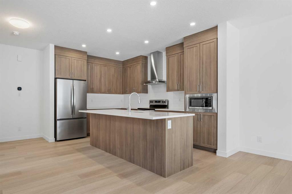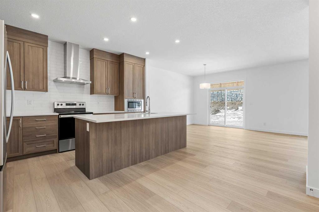 NEW BUILD DETACHED 5-LEVEL SPLIT | DOUBLE ATTACHED GARAGE | 3 BED / 2.5 BATH / 2075 SQ FT ABOVE GRADE | WEST-FACING BACKYARD | IMMEDIATE POSSESSION – Welcome to this beautifully designed detached home by Minto Communities, an award-winning Canadian builder with over 70 years of experience, located in Wildflower, proudly voted Best New Community in Canada (2025). This vibrant, master-planned community in Airdrie is designed with lifestyle and connection in mind, offering an exciting mix of home styles in a neighbourhood built to grow with you. Finished with modern details throughout, this impressive 5-level split offers a unique and functional layout ideal for growing families and those who love to entertain. The main living level features a beautiful kitchen complete with a large central island, stainless steel appliances, and abundant cabinetry for storage. Positioned at the back of the home, the dining room provides direct access to the west-facing backyard—perfect for enjoying sunny afternoons and evening gatherings. Just beside the dining room is the comfortable living room, creating a seamless and open space for everyday living and entertaining. A convenient half bathroom completes this level. One level up is your private primary retreat, featuring a spacious bedroom with a large walk-in closet and a well-appointed 4-piece ensuite bathroom. The next level offers a generous bonus room or loft area, providing a flexible space ideal for relaxing, working from home, or creating a family entertainment zone. This level also includes two well-sized bedrooms, a full 4-piece bathroom, and a conveniently located dedicated laundry room. On the lower level, the welcoming foyer provides access to the front porch and direct entry into the spacious double attached garage, offering everyday convenience and additional storage options. The undeveloped basement is expansive and provides even more opportunity to customize and expand your living space to suit your needs. Residents of Wildflower enjoy exclusive access to The Hillside Hub, a standout amenity centre featuring Airdrie’s first outdoor pool, a hot tub, an open-air sports court, and a variety of shared indoor and outdoor spaces designed for gathering, recreation, or quiet retreat. With nearby parks, pathways, amenities, and easy access to major routes, Wildflower delivers a truly well-rounded lifestyle. Combining award-winning community planning, modern design, and immediate possession, this is an outstanding opportunity to own a stylish new home in one of Canada’s most celebrated communities. Don’t miss your chance to make Wildflower home. Book your visit today!