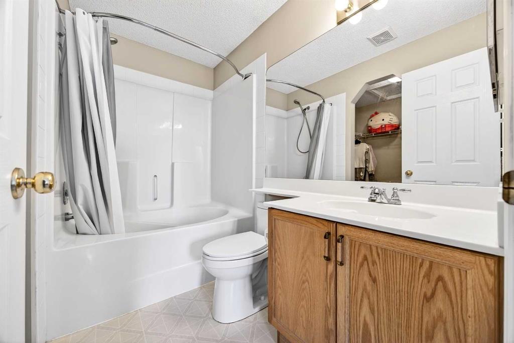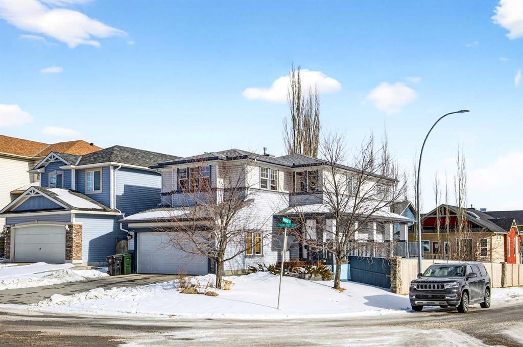 This beautiful home is well-situated on the corner lot across street from a park. Featuring on east-facing deck that wraps around the complete south and west sides of home and terminates at front porch. The floor plan is nice and open, with gorgeous hardwood and tile floors, and there is a small den great for an at-home office. The livingroom is a good size and great for entertaining family and friends. The kitchen has oak cabinets with lots of space for chef in the house, an attached island, an eating area, granite countertops. Upstairs is the large bonus room with corner fireplace, primary bedroom has walk-in closet and a 4-piece ensuite, other two bedrooms share the bathroom. The lower level is developed with a family room, the 4th bedroom and a full bath. The location is excellent, shopping is just around the corner, easy access to Deerfoot& Stoney Trail. Come and have a look, it won’t last long. Upgraded recently: WASHER(2023), DRYER(2023), RANGE HOOD(2023), ROOF(2025), ONE SIDE OF SIDING(2025), STOVE(FEB 2026), DISHWASHER(FEB 2026).