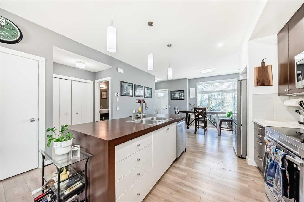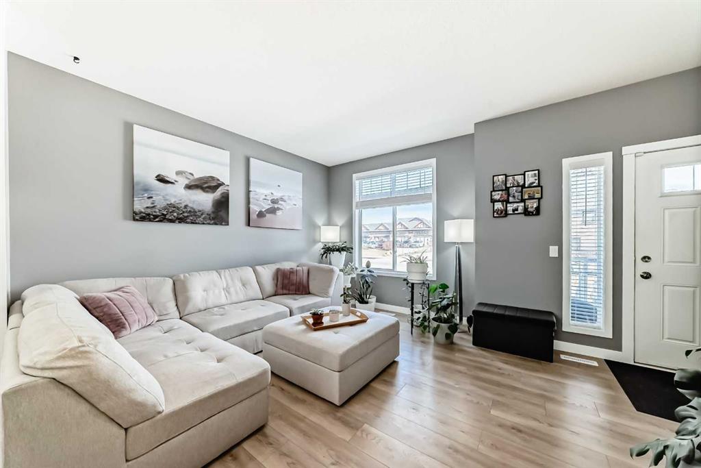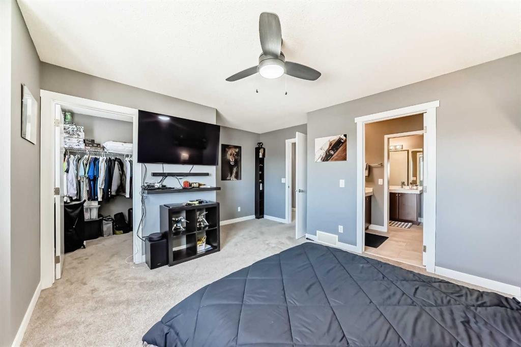 Welcome to this incredible, RENOVATED END UNIT, steps from the pond in beautiful Copperfield. This very spacious 2 storey has an open floorplan with 9 foot ceilings on the main, two enourmous primary bedrooms, each with their own walk in closet on the second floor as well as a full laundry room and unique ‘double’ 5 piece bathroom. The basement has lots of storage space and a flex room with window. Best of all, there is an almost 19×19 DOUBLE GARAGE, drywalled and insulated, with large parking pad. No need to shuffle cars like a tandem garage! Additional street parking right in front is also available. The extensive renovations include, flooring, paint, baseboards, Decora light switches, appliances and more. Literally nothing left to do, just move in. You will also have full access included to the amenities of the Copperfield Community Association and be steps from the park, playground, courts and pond. Please see photos for additional information. A rare opportunity awaits!