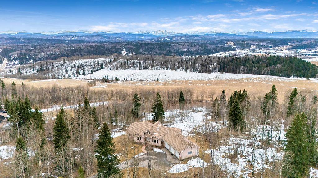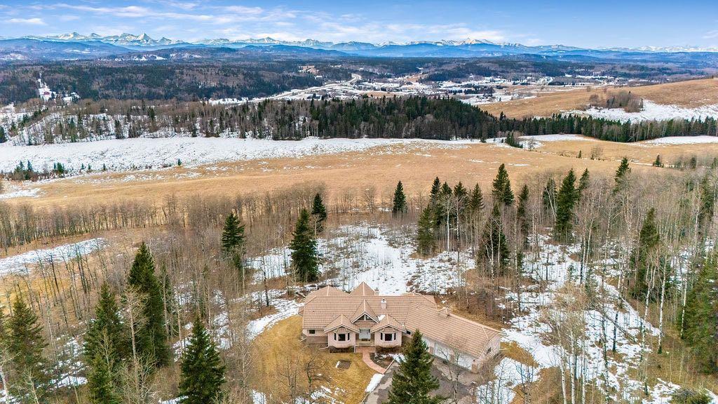 Words cannot describe the view from this beautiful walk out bungalow in Priddis Woods. Mountains, mountains and more mountains! Artists and photographers of all abilities will be unable to take their eyes away from one of nature’s finest displays of Southern Alberta. This is truly a special location. A home for the most discerning buyer. Sunshine highlights the gleaming hardwood floors .. and of course the view. A beautiful sunroom ..to gaze at the view. a wall of windows in the living room and dining room catch.. yes the view. Three large bedrooms upstairs 2 of which have .. you guessed it .. the views. Walking down the circular staircase to the large family room you eyes immediately go to.. the view! Another three bedrooms on lower level .. and yes of course they have views, underfloor heating throughout this level and a stair to the attached triple garage which also has underfloor heating. Garage also has access from upper level. Carpet recently replaced. This property has towering spruce trees, sunshine and although you do have neighbours you can imagine yourself in your own private space with no-one around. A walking pathway around the community encourages strolls through nature. If you are looking for that very special place you must come and see this property. Oh .. and did I mention the views??