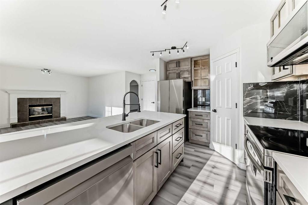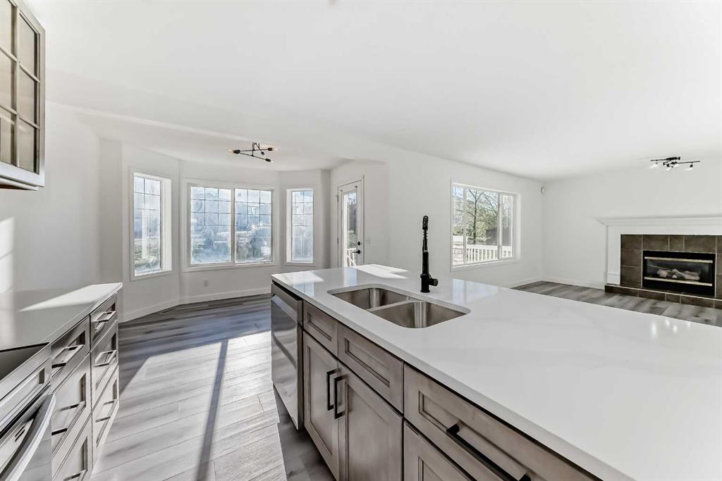 Pride of ownership exudes from this former Crestview Show Home located in the highly sought after community of the “Canals”. Extensive renovations have just been completed including new flooring and fresh paint through-out. The kitchen has undergone a full remodel featuring new S/S appliances, cabinets, hardware plus a large center island with quartz counter-tops and tiled backsplashes. Off the kitchen is a good sized breakfast nook that grants access to a large East facing back deck that overlooks a park. Completing the main floor is a huge family room with a cozy gas fireplace plus a formal dining area, front living room, office, 2pc bath and laundry area. Upstairs you will find a massive primary bedroom with a walk-in closet, 4 pc ensuite (jetted soaker tub and separate shower) plus access to a West facing balcony. Completing the upper level are 3 additional bedrooms and another 4pc bath. The basement offers high ceilings, large windows and awaits your finishing touches. Additional bonuses include: new baseboards, toilets, LED fixtures, hot water tank plus the furnace has been recently serviced and the ducts cleaned. The double attached garage comes with a gas heater, freshly painted floors plus a front driveway great for additional parking. This home backs onto a park with no neighbors behind and is located close to schools, shopping, walking paths and easy access to main roadways.