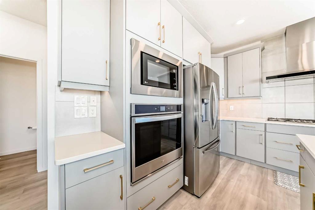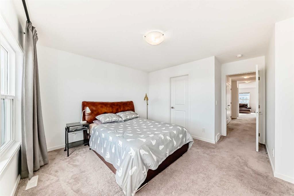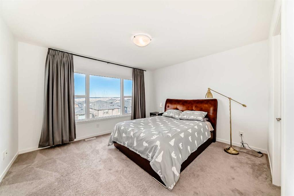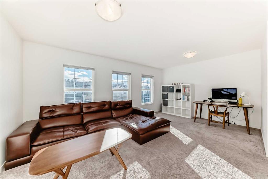 Backing into serene greenspace – Modern walk-out in Crestmont. Experience contemporary living in this stunning 3-bedroom home, perfectly situated on a quiet street backing directly onto a tranquil bike path and green space. The open-concept main floor is flooded with natural light, highlighting a gourmet kitchen designed for entertaining. It features a massive central island, sleek built-in appliances – including a gas cooktop and wall mounted hood fan – and a generous pantry. The adjacent dining area opens through large sliding doors to an elevated deck, ideal for outdoor dining. Across the way, the inviting living room centers around a sleek electric fireplace. The upper level offers a versatile lifestyle with an expansive bonus room and dedicated laundry area. Two sizeable bedrooms share a 4-piece bath, while the primary retreat boasts a luxurious 5-piece ensuite with dual vanities, a deep soaker tub and a glass-enclosed shower. The walk-out basement provides immediate access to the outdoors, leading you towards the nearby park, playground and sports court just a short walk away. This home perfectly balances modern luxury with the natural beauty of Crestmont. Don’t miss out, book your private showing today!