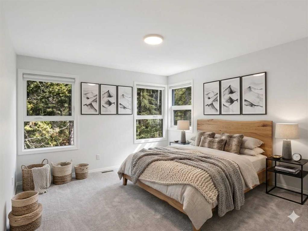 Immaculately maintained 1,574 square foot, 3-bedroom, 2.5-bath end-unit townhome in sought-after Benchlands, offering stunning mountain views, heated single garage, and two additional parking stalls. The thoughtful split-level design enhances the bright open flow and natural light throughout. The inviting living room features soaring ceilings, expansive windows, a wood-burning fireplace, and access to a large wraparound deck that enjoys a peaceful treed setting and breathtaking views, perfect for entertaining. A half level up, the spacious kitchen, which includes a huge pantry (with rough-in plumbing for a bathroom/laundry), opens to a second view deck, while the dining area overlooks the living room below. Upstairs, the primary suite offers a private ensuite and large walk-in closet. A second bedroom or ideal home office filled with striking views and natural light along with a bath/laundry completes this floor. The lower level includes a third bedroom with a 3 piece ensuite.