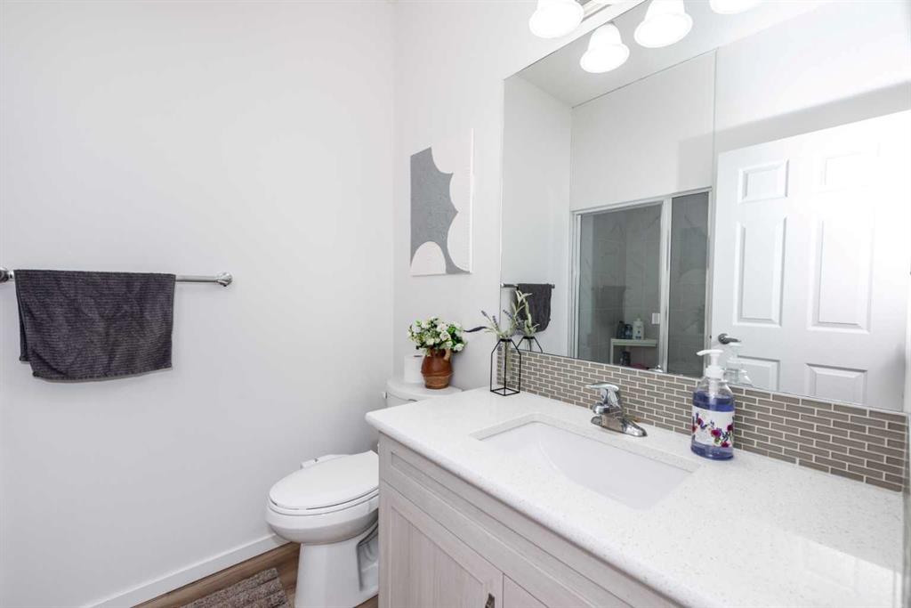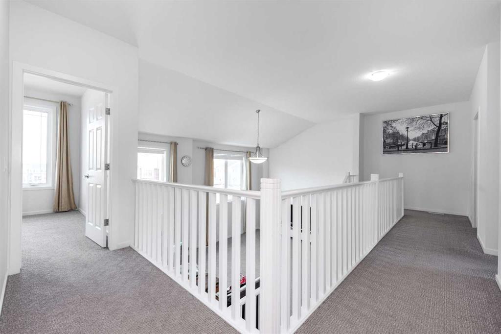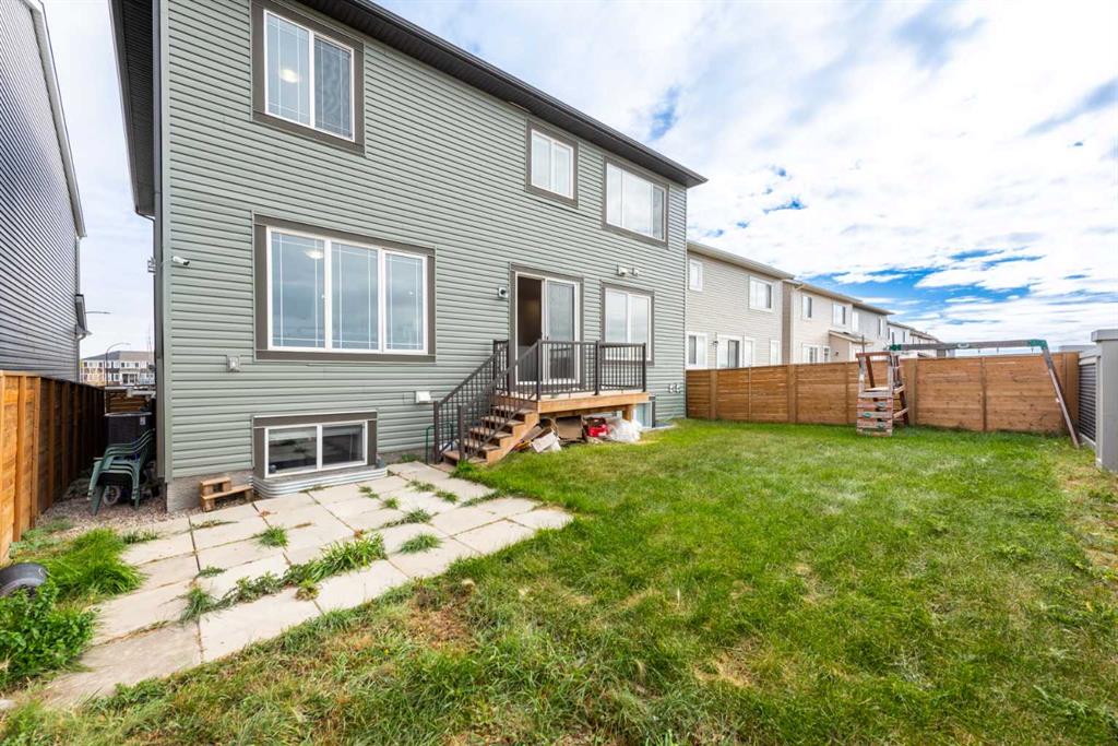 This 2.5-year-old, east-facing home offers 3556.11 sq. ft. of total living space, including 2744.29 sq. ft. above grade and a 811.82 sq. ft. legal basement suite with 2 bedrooms and 1 bathroom. Featuring 7 bedrooms and 5 bathrooms, the home includes a main-floor bedroom with ensuite and steam room, a chef’s kitchen with stainless-steel appliances, 9-ft ceilings throughout, and an open-concept layout with abundant natural light. The upper floor has 4 bedrooms, 2 full bathrooms, a primary suite with 5-piece ensuite and walk-in closet, a large bonus room, and an upstairs laundry. The basement suite has a separate heating system, living area with electric fireplace, modern kitchen cabinetry, and two storage rooms, suitable for rental or multi-generational living. Exterior features include no front or rear neighbours, central A/C and heating with two-zone control, a fully fenced and sodded yard, and rough-ins for a garage heater and central vacuum. Located within walking distance to Cityscape Square Plaza and minutes from YYC Airport, Deerfoot Trail, and Stoney Trail, the home offers a quiet community setting with convenient access to amenities and views of the Rocky Mountains and downtown Calgary.