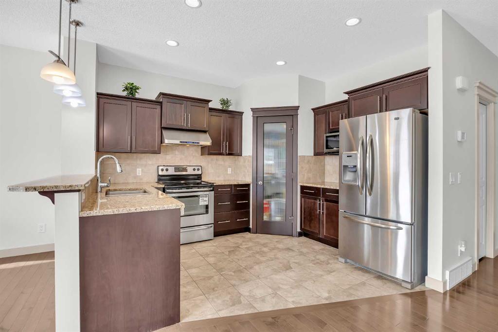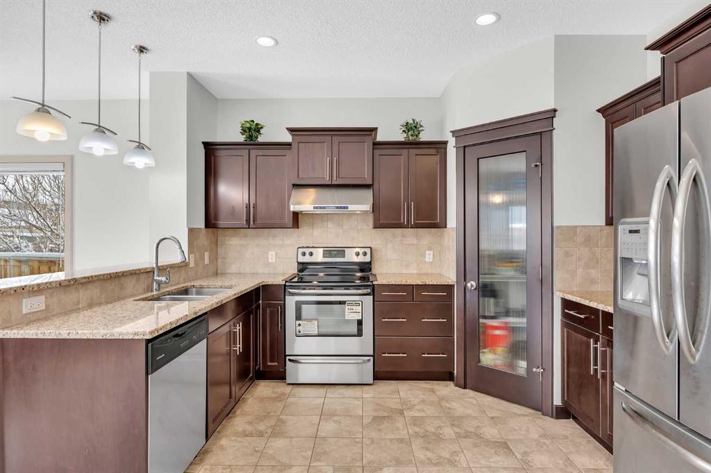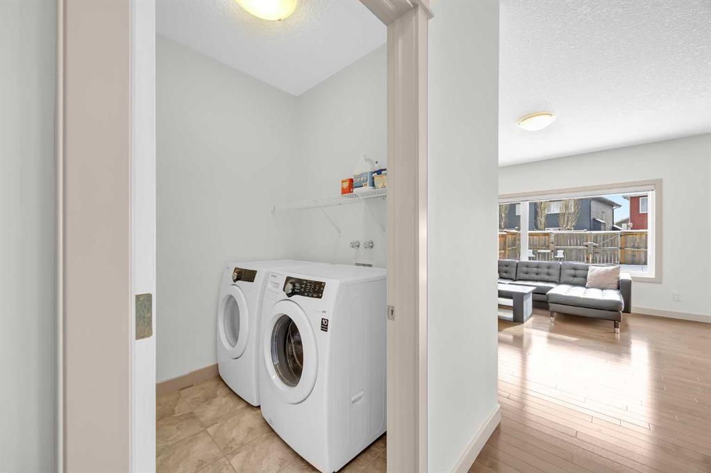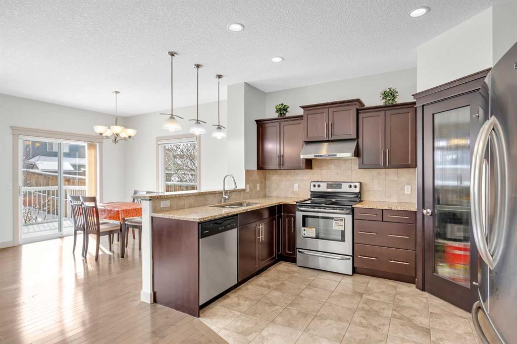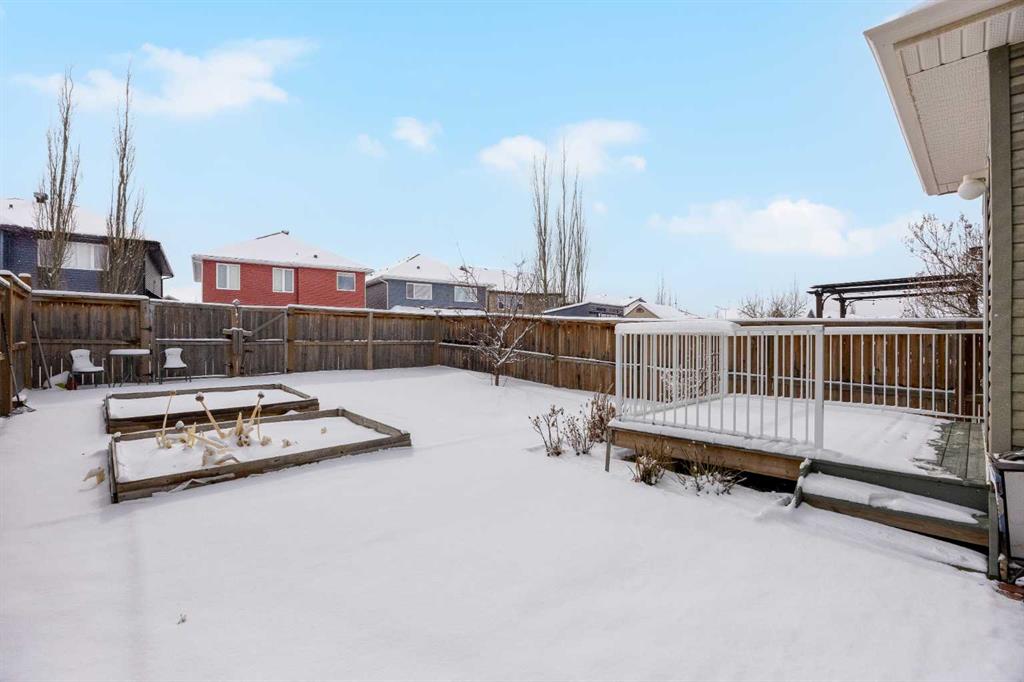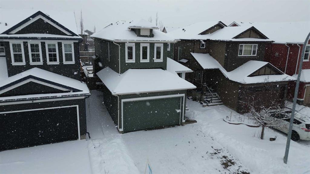 Don’t miss out on this like NEW, incredibly well taken care of 3 bedroom, 2.5 bath home in Evanston. Offering just under 1,700 square feet of comfortable and family friendly living space. Featuring 9 foot ceilings throughout the main floor, basement, and upstairs bonus room, the home feels bright, open, and spacious! The main level has hardwood flooring throughout with ceramic tile in the kitchen, laundry and entrance. The south facing dining area and living room are filled with natural light, the open living room has a cozy gas fireplace, perfect for relaxing on the colder nights. The kitchen is complete with stainless steel appliances, dark wood cabinetry, and granite countertops. The perfect size for cooking with plenty of storage for groceries, and cookware. Upstairs, the primary bedroom offers a walk in closet and private ensuite. The second bedroom is spacious and has it’s own walk in closet and the third bedroom is bright lit with a standard closet. The two bedrooms share a full bathroom situated between the two, making the layout perfect for parents with kids or working adults that need an extra space for an office. The home is equipped with air conditioning to keep you nice and cool throughout the summer. Outside is a large south facing backyard featuring a deck, brick patio, garden bed, and open space. Additional highlights include an attached double garage with high 11 foot ceilings, recent upgrades including a new roof, gutters, and siding on two exterior walls (completed in 2025). Located in a vibrant, family friendly community with green spaces, walking paths, and playgrounds, this home is just 5 minutes from major amenities including Costco, T&T, Walmart, H-Mart, Home Depot, Canadian Tire, Superstore, restaurants, and shops. The new Evanston Heights School is set to open in 2026, adding even more convenience to families for this fantastic location.