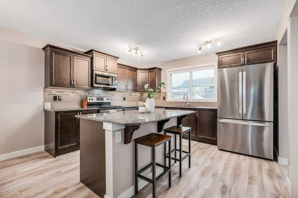 Welcome Home to Legacy – Where Style, Comfort, and Convenience Come Together. Pride of ownership shines throughout this original owner semi-detached two-storey home, offered to the market for the very first time. From the moment you arrive, you’ll be impressed by the charming curb appeal — a beautifully designed exterior complemented by a welcoming front porch that sets the tone for what’s inside. Step through the front door into a bright and spacious foyer, featuring double closets on both sides and a thoughtfully designed layout that immediately feels like home. The main floor is open and airy, highlighted by wide-plank laminate floors, elegant built-in niches, and a natural flow that’s both stylish and functional. At the heart of the home is the chef’s kitchen, beautifully appointed with stainless steel appliances, granite countertops, under-cabinet lighting, and ample cabinet space. The large walk-in pantry and oversized island with seating make it perfect for entertaining or enjoying everyday meals with family. Adjacent to the kitchen, the open-concept dining and living areas create an inviting space ideal for gatherings. A conveniently located two-piece powder room, tucked away for privacy, completes the main level. Upstairs, you’ll find three generous bedrooms, including a bright and spacious primary suite with a walk-in closet and a private three-piece ensuite. Two additional bedrooms, a full four-piece bathroom, and a convenient upper-floor laundry area complete the second level. The basement is unfinshed and awaiting your personal touches. Step outside into your private backyard oasis — fully landscaped and fenced, featuring privacy screen, paving stones, surrounded by low-maintenance artificial grass and thoughtfully designed garden beds. It’s the perfect outdoor retreat for relaxing, entertaining, or enjoying summer evenings with friends and family. The oversized double detached garage (20′ x 26′) is a standout feature — fully insulated, boarded, and heated with a radiant heater, offering plenty of space for vehicles, storage, and a workshop. It’s also wired for 240V, ready for your tools or electric vehicle, and accessed by a paved lane that makes parking and playtime easy and clean. Located in desirable family-friendly community, Legacy offers an incredible lifestyle. You’re just steps away from parks, playgrounds, and scenic pathways, and within walking distance to shops, fitness studios, childcare, restaurants, and cafés. Enjoy quick access to the Bow River Valley trails, and look forward to the opening of the new Legacy elementary school in 2026. Recent updates include a new refrigerator, dishwasher, and microwave within the past two years, adding extra value and peace of mind. This beautiful home truly combines comfort, functionality, and location. Don’t wait — book your private showing today and see why this exceptional property should be your next home!