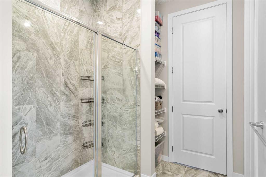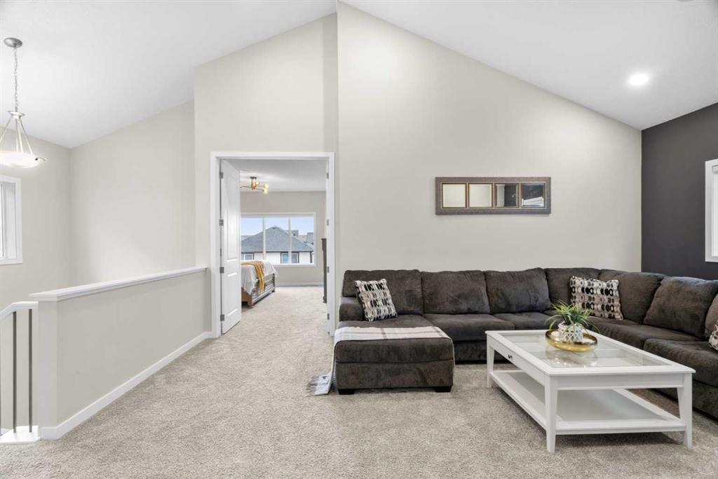 Located in the award-winning Mahogany lake community, this exceptional custom-built luxury residence blends architectural scale, refined finishes, and an elevated lakeside lifestyle. With six bedrooms, a main floor flex room, and a fully developed basement with a separate side entrance, the home is ideally suited for a growing family or a sophisticated work-from-home lifestyle. From the moment you enter, the sense of volume and natural light is immediate. The main floor features predominantly 9-foot ceilings, with select areas—including the foyer and flex room—soaring to 10 feet. Oversized rear-facing windows flood the main living and dining areas with natural light, creating a seamless connection to the outdoor living space. Luxury vinyl plank flooring, 8-foot interior doors, and an impressive 8-foot front entry door with sidelite elevate the home’s contemporary elegance. The chef’s kitchen is designed for entertaining and everyday living, showcasing quartz countertops, extended cabinetry stacked to the ceiling, a large island with storage on the seating side, a gas cooktop paired with a built-in wall oven, a chimney-style hood fan with full-height tile surround, premium tile backsplash, and integrated lighting and storage. Upstairs, a vaulted bonus room reaching approximately 14 feet at the apex provides an impressive secondary living space, while upper-level laundry adds convenience. The primary suite is a private retreat with a spa-inspired ensuite featuring dual sinks, a soaker tub, and a tiled glass shower. The fully developed basement offers ceiling heights between 8 and 9 feet, two additional bedrooms, a full bathroom, expansive recreation areas, and a custom wet bar with cabinetry and bar (wine) fridge. A separate side entrance adds flexibility for multi-generational living, guest accommodations, or professional home-based use (subject to approvals). A basement laundry rough-in complements the upper-floor laundry. Additional features include a dedicated mudroom between the home and garage, in-ceiling speakers with multiple audio zones, extensive Cat6 wiring, pot lighting with dimmers, air-conditioning rough-in, and an upsized gas main. The exterior is finished with durable Hardie board siding and enhanced by a low-maintenance composite deck with gas line for BBQ, under-deck storage, interlocking stone driveway extension, and professionally completed landscaping by Primrose Landscaping. Residents of Mahogany enjoy exclusive access to a freshwater lake, private beaches, year-round recreation, scenic pathways, parks, and playgrounds, all minutes from schools, shopping, dining, and major commuter routes. Offering refined luxury, exceptional scale, and a premier lake-community lifestyle, this home presents a rare opportunity in one of Calgary’s most sought-after neighbourhoods.