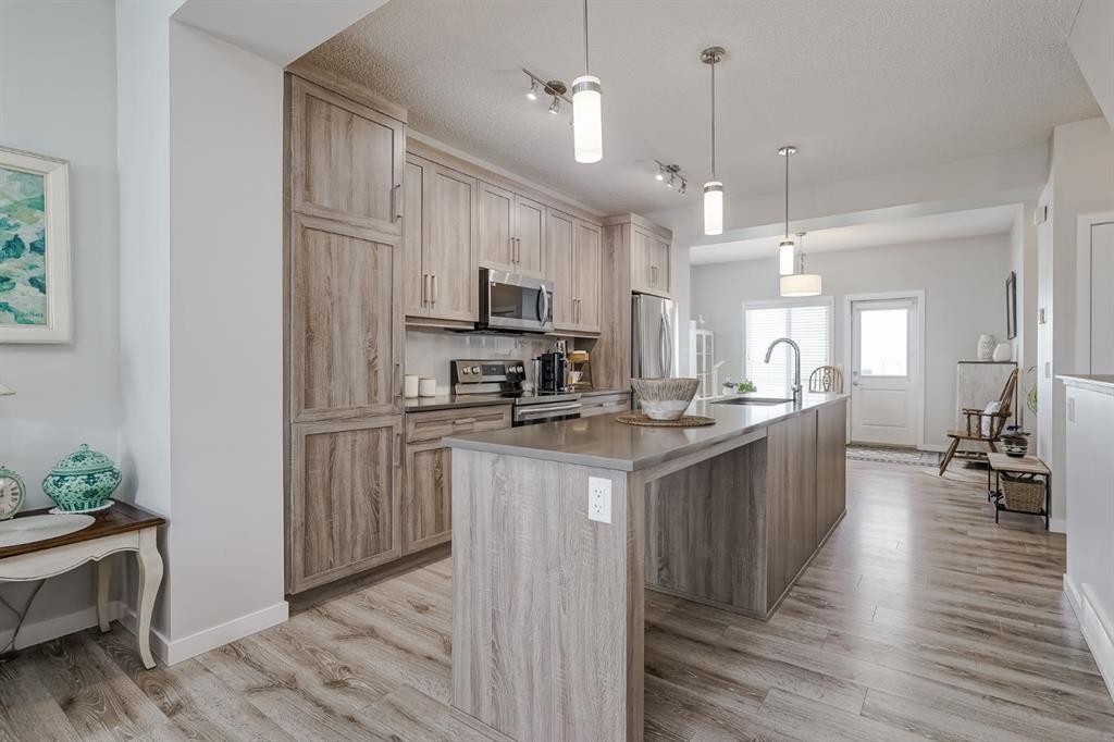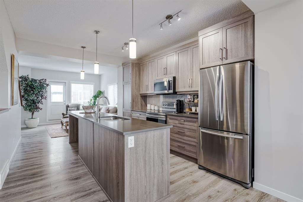 Designed for both comfort and style, the bright open-concept layout features 9-ft ceilings, triple-pane windows, and premium finishes throughout. The modern kitchen showcases quartz countertops, upgraded Samsung appliances, soft-close cabinetry, and a large island perfect for entertaining. You’ll also appreciate the ample-sized laundry room conveniently located on the main floor, adding to the home’s functionality and day-to-day ease. Step onto the oversized balcony with a gas BBQ line to relax or host outdoors.