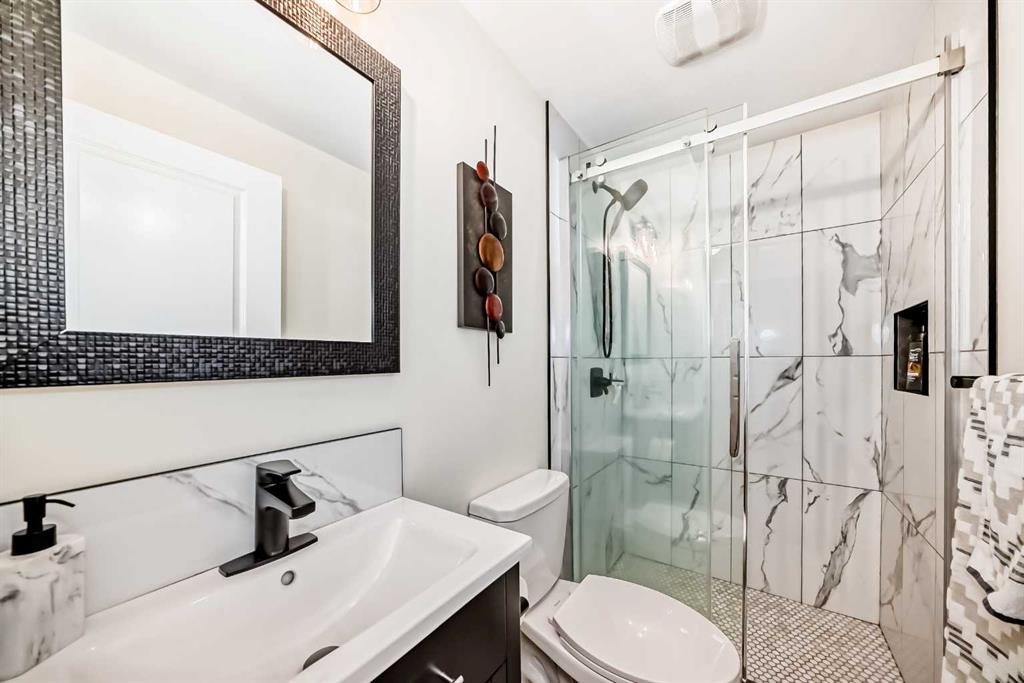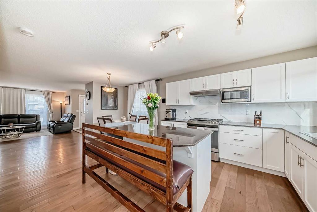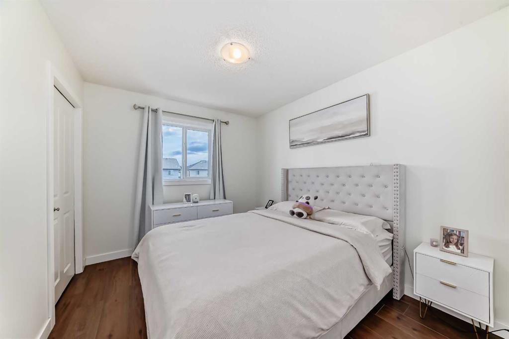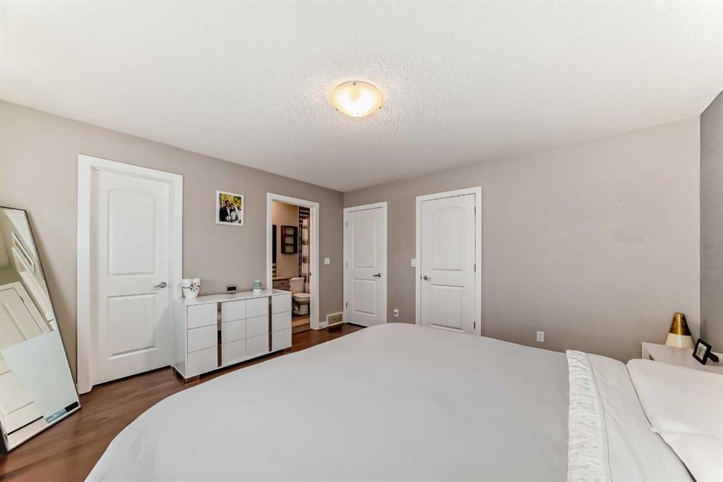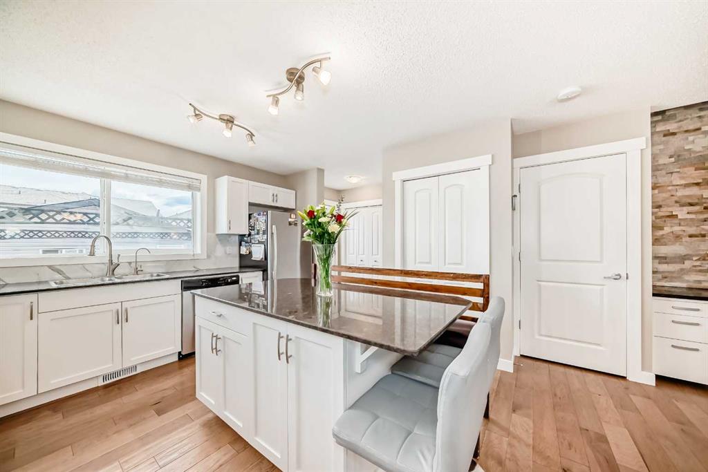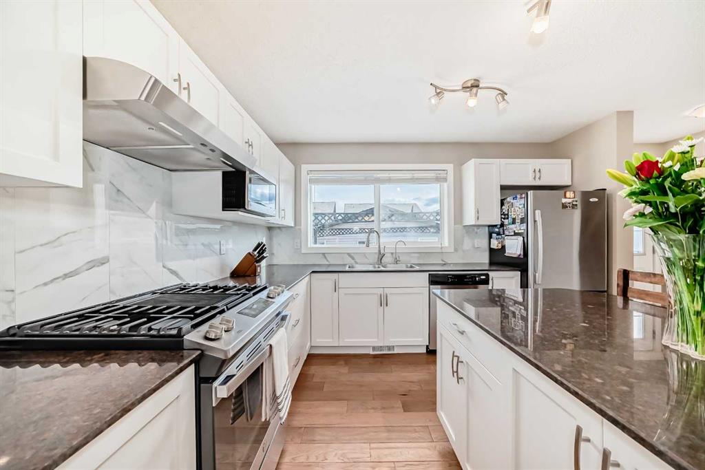 You don’t want to miss out on this gorgeous family home, sparkling with “pride of ownership” throughout! It is absolutely MOVE-IN ready! The front entryway will impress with tile flooring & a large coat closet which flows naturally into the bright and open floor plan. Warm hardwood floors, crisp white cabinets accented by darker quartz counters, gas range, huge island, newer appliances will all via for your attention. Kitchen, Living Room, Dining Room, 1/2 bath and back entry make this main floor level roomy, practical, warm and inviting. Upstairs you will find a large primary bedroom, with 4 piece ensuite and walk in closet. The other 2 bedrooms each have their own walk in closet as well! Upper level is completed with a 4 piece family bathroom. Downstairs, the professionally and newly developed basement (with all permits) contains a 4th bedroom, a 3 piece bathroom, large family room, laundry, storage and mechanical room. All designed with care to make this an amazing home. One of the few properties on this street with a double detached garage. (Fully insulated). Enjoy your private back yard with a large concrete patio and lawn. Recent upgrades include: all new flooring, professionally painted cabinets, new counter tops, professionally developed basement (2 years ago), new furnace (2020), & double-detached and insulated garage. Book your private viewing today!! Priced to sell!