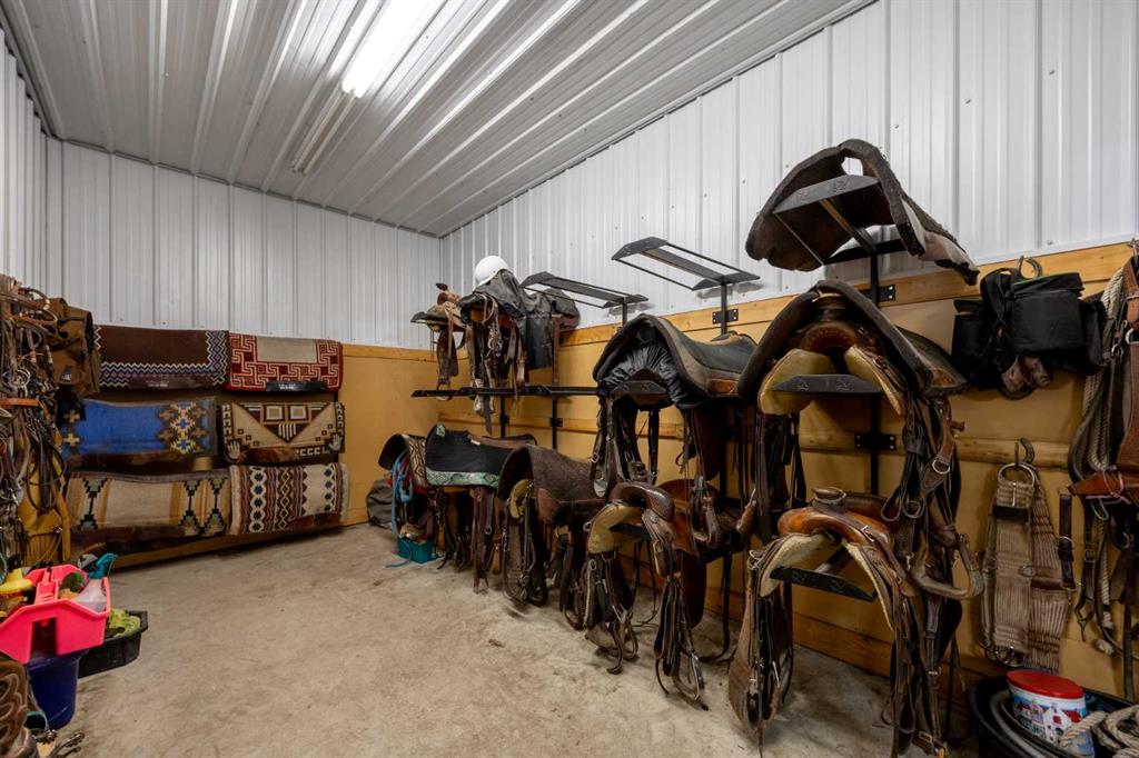 A separate hip-roof barn includes 2,400 sq.ft. of inviting living quarters—ideal for staff, guests, or extended family—above a fully insulated and heated shop with additional stalls. Outdoor amenities include a 100’x150’ arena, multiple rail-lined paddocks, each with heated waterers and shelters and hay storage. A seasonal creek, rolling pasture, and aspen groves weave through private riding trails that invite exploration.