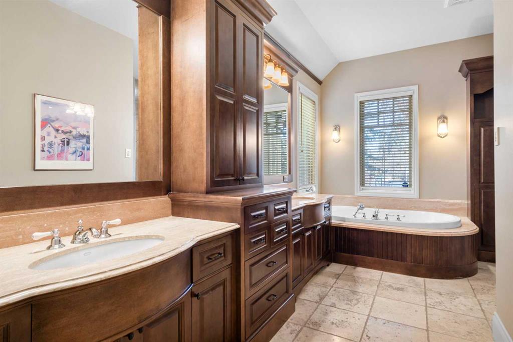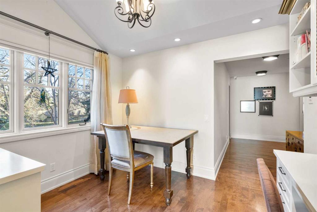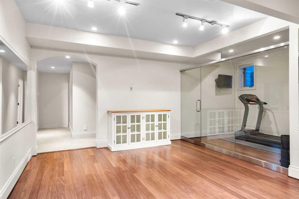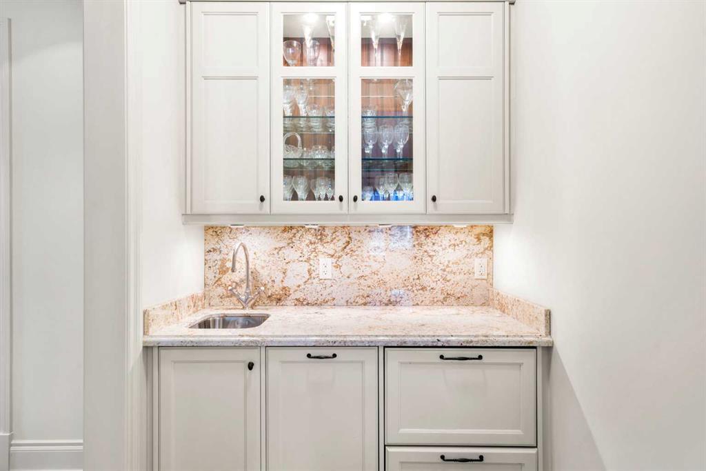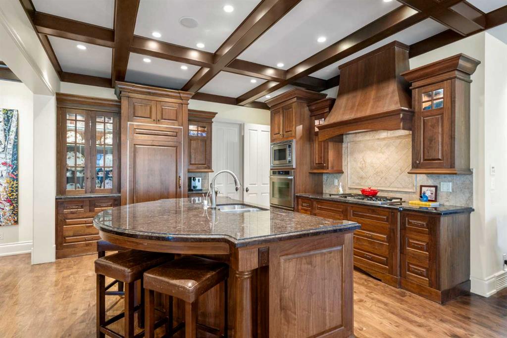 This stunning Laratta built executive family residence, is an architectural masterpiece nestled on a most coveted Upper Mount Royal tree lined street overlooking Talon Park. Set on a private, estate sized 70′ x 194′ west facing lot surrounded by mature trees, meticulous landscaping, English country gardens, offering a rare blend of historic grandeur, modern luxury & resort-style living. Boasting 7158 sq. ft. of impeccably designed living space, this residence showcases gleaming hickory & hardwood floors throughout the upper levels, with beamed ceilings, crown mouldings, solid core doors, extensive millwork, designer fixtures & an abundance of natural light through expansive windows. The enclosed foyer opens to the entertaining sized great room with built-ins & gas fireplace offers seamless indoor outdoor flow. The gourmet kitchen with granite countertops, a striking oversized island with circular eating bar, loads of custom cabinetry, spacious pantry, beamed ceilings, professional appliances, effortless flow into the family sized dining area & sitting area with fireplace overlooking the yard. A private office with custom bookcases overlooks Talon park, while the main floor primary suite, currently a second family room, features tranquil views, a luxurious spa-inspired 5-piece ensuite with soaker tub, steam shower, dual sinks, marble countertops, heated marble floors & abundant storage. A guest powder room, private laundry with cabinetry & a functional mudroom leads to the heated extra wide double attached garage. The upper level offers five spacious bedrooms, including a primary bedroom with double closets, luxurious ensuite and overlooks the tranquility of the west yard. The secondary bedrooms all with ensuites & a retreat area deliver exceptional comfort, flexibility & privacy. The lower level designed for elevated leisure & entertainment, features an expansive family room with built-in cabinets, billiards room, a large wrap-around wet bar with dishwasher, microwave & beverage fridge, temperature controlled wine cellar with tasting lounge, a bedroom with ensuite, a large playroom currently a ballet studio & glass enclosed exercise area plus exceptional storage. Outdoors, the tranquil west facing yard is home to manicured grounds framed by mature trees, offering sun drenched lounging areas, distinct living spaces, patio zone perfect for gatherings, a full irrigation system & ample room for a future pool. This estate harmonizes style, functionality, serenity & ideally located within walking distance to top rated schools, parks, River Park, the Elbow River Pathways, community tennis courts, outdoor pools, Glencoe Club, Calgary Golf & Country Club, public library, downtown, the vibrant shops, restaurants & culture of 17th Avenue, 4th & 14th Streets. This rare offering represents an unparalleled opportunity for the discerning buyer seeking architectural excellence, intentional design, premium materials – this is more than a home, it’s a statement of refined living.