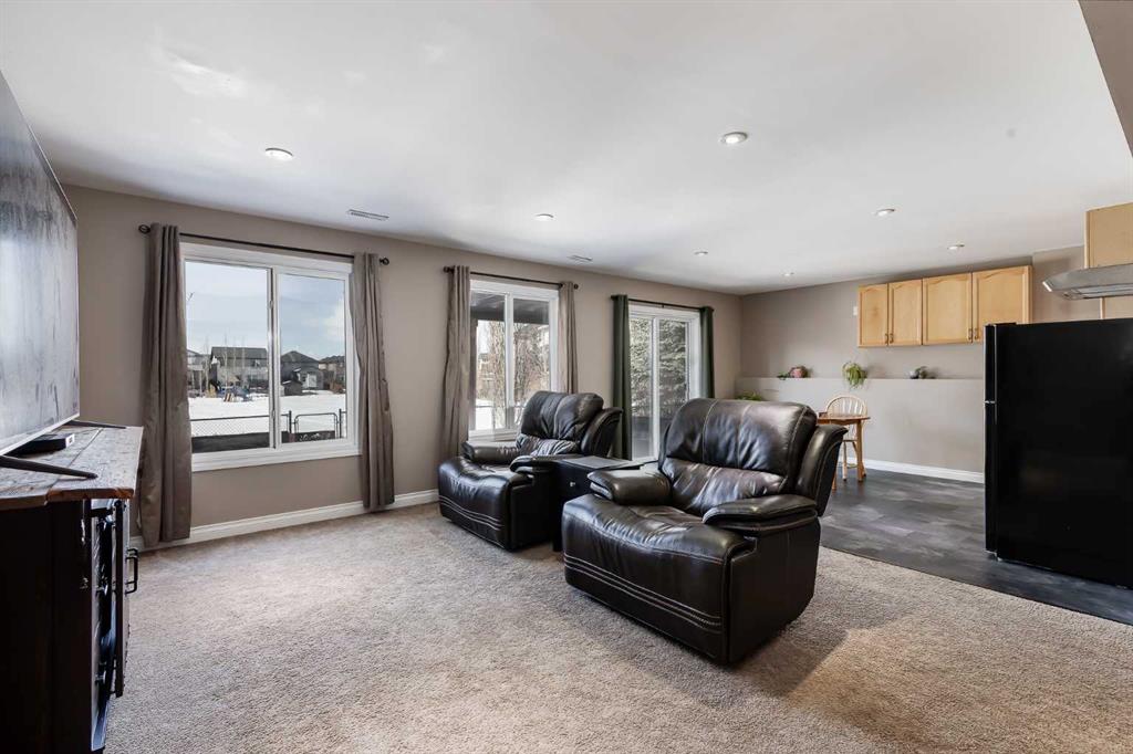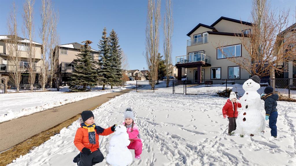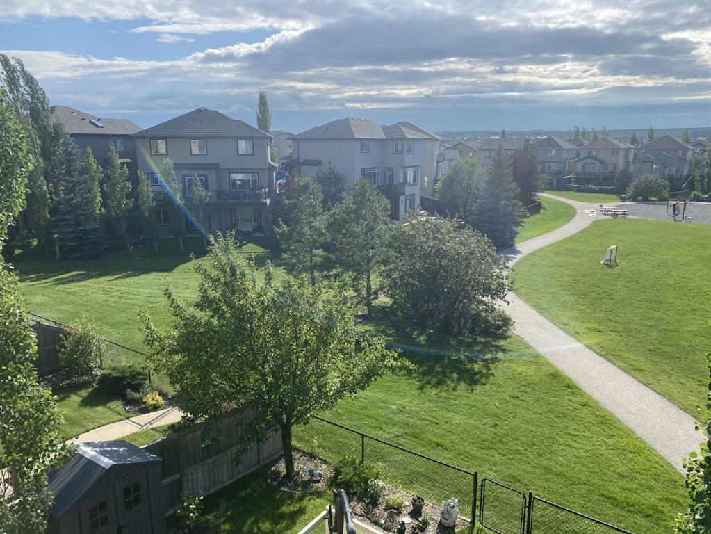 Welcome to this exceptional two-storey home in the highly desirable community of Prairie Springs in Airdrie, offering over 3,200 square feet of beautifully designed living space and a location that is truly hard to beat. Perfectly positioned on a corner lot with green space on two sides and a playground just behind, this home enjoys an abundance of natural light thanks to additional windows and the privacy of having no neighbours directly behind or beside you. Walking paths and scenic parkways are just steps away, inviting you to explore the outdoors right from your doorstep. The main floor is bright, open, and welcoming, featuring warm hardwood floors, rich-toned cabinetry, and a thoughtfully designed layout ideal for both everyday living and entertaining. The kitchen offers a walk-through pantry, generous workspace, and flows effortlessly into the spacious dining area and inviting living room, complete with a cozy fireplace. Just off the garage, a large and unique mudroom provides the perfect drop zone for busy households. Step outside onto the upper deck overlooking the beautifully manicured, fenced yard, complete with a shed and a covered lower patio — perfect for summer evenings or weekend gatherings. Upstairs, you’ll find three spacious bedrooms, including an oversized primary retreat featuring a charming reading nook and a private balcony — ideal for morning coffee or an evening glass of wine. The luxurious ensuite includes a waterfall soaker tub, separate shower, and walk-in closet. The additional bedrooms are versatile for children, guests, or home office space. Convenience continues with an upper-floor laundry room equipped with full-size machines and hanging space. The fully finished walk-out basement expands your living options even further. It features a large recreation room with plenty of space for movie nights, games, or a work-from-home setup, along with a bedroom, kitchenette area (illegal suite), storage, and a renovated 3-piece bathroom. A second laundry area with newer stackable machines adds flexibility for multi-generational living or guests. Surrounded by mature trees, green space, and plenty of street parking for visiting friends and family, this home combines space, privacy, and lifestyle in one of Airdrie’s most loved neighbourhoods.