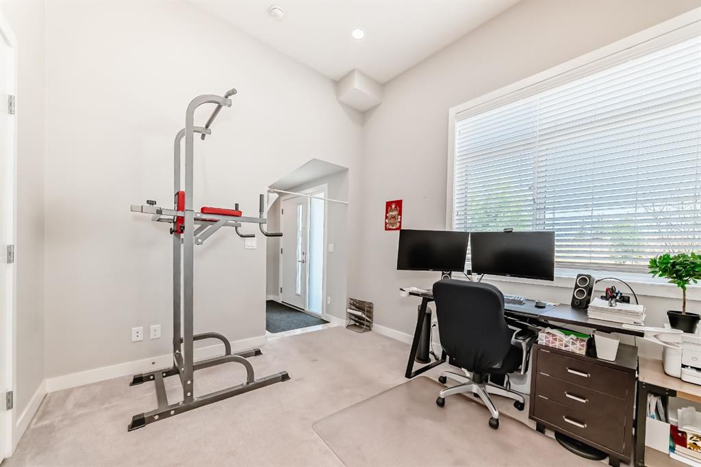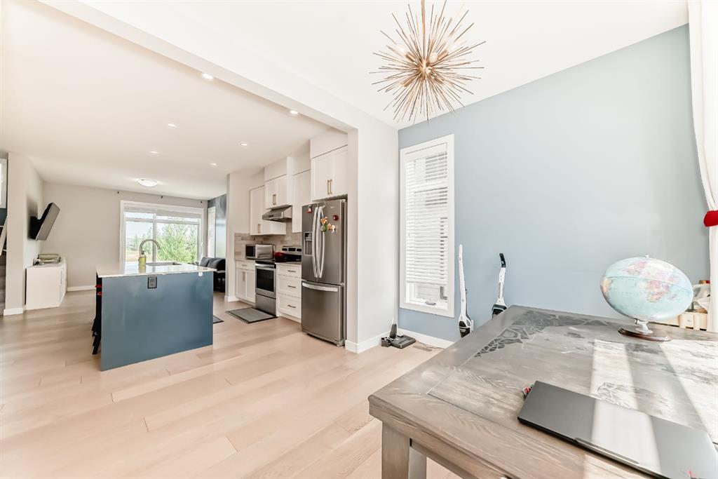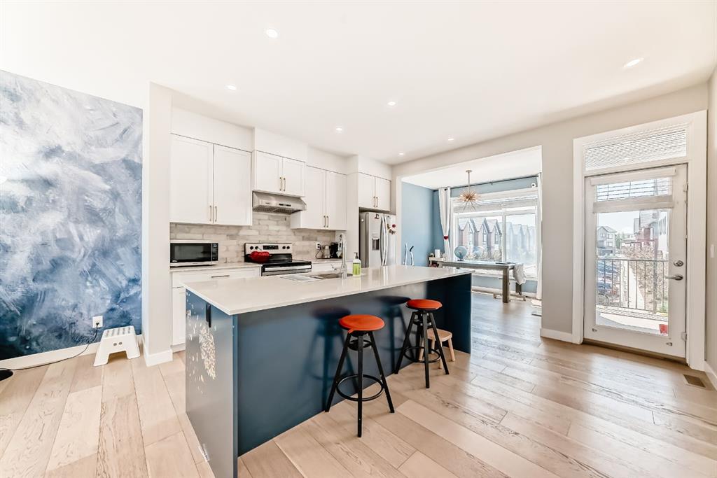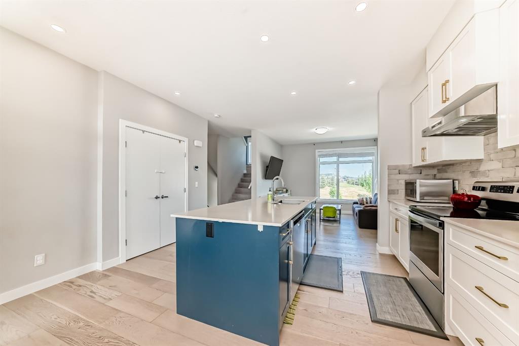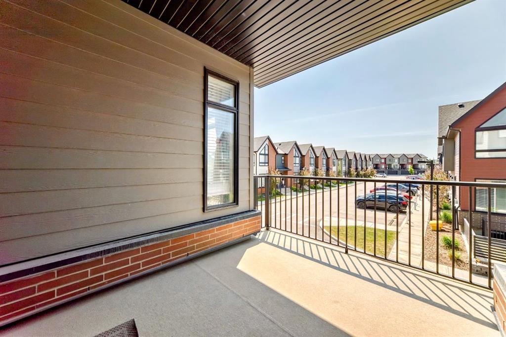 Former show home, the most stunning Townhouse you can find in the market WITH VIEW!! — An end-unit that fronts a green space!! This 3-bedroom, 2.5-bathroom home offers 1,782 sq ft of refined living space across three levels, and is nestled on a premium corner unit with no attached neighbor to the east, ensuring added privacy and natural light due to no common walls shared on that side. From the moment you step in, you’ll notice the superior quality and care that went into this property. The bright and airy open-concept main floor is perfect for modern living, with oversized windows, high ceilings, and upgraded engineered hardwood flooring. The gourmet kitchen is a true showstopper, featuring quartz countertops, stainless steel appliances, full-height cabinets, a stylish backsplash, and a large island with eating bar — ideal for both casual meals and entertaining guests. The upper level offers a relaxing retreat, with a vaulted-ceiling primary bedroom that includes custom windows, a walk-through closet, and a spa-inspired ensuite with a double vanity and luxurious quartz finishes. Two additional spacious bedrooms, a second full bathroom, and convenient upper-floor laundry make this a perfect layout for families or professionals working from home. On the lower level, a fully finished flex room — use it as a home office, gym, media room, or guest space. Additional highlights include CENTRAL AIR CONDITIONING, an oversized HEATED double garage, and a built-in EV CHARGING STATION, making this home both comfortable and future-ready. A back balcony with south exposure offers the perfect outdoor space for BBQs, and morning coffee. The roof of the entire complex was recently replaced in 2025, offering peace of mind for years to come. This home is part of a well-maintained and professionally managed complex with low condo fees. Located in the heart of sought-after Sage Hill, you’re just minutes from shopping, restaurants, parks, pathways, schools, and transit — everything you need for a convenient and connected lifestyle. Whether you’re a young family, like to seek a modern lifestyle, or an investor looking for an upgraded turnkey property in a vibrant NW community, this one checks all the boxes. Don’t miss your chance to call this former SHOWHOME your next home — book your private showing today!