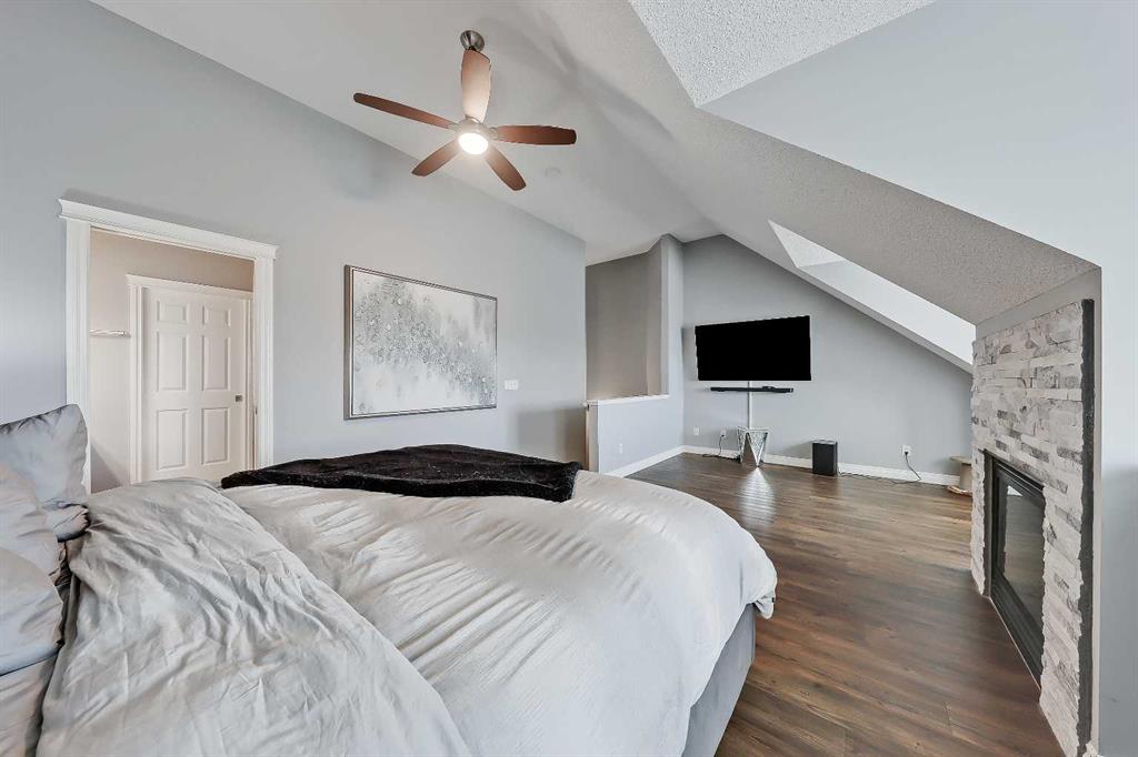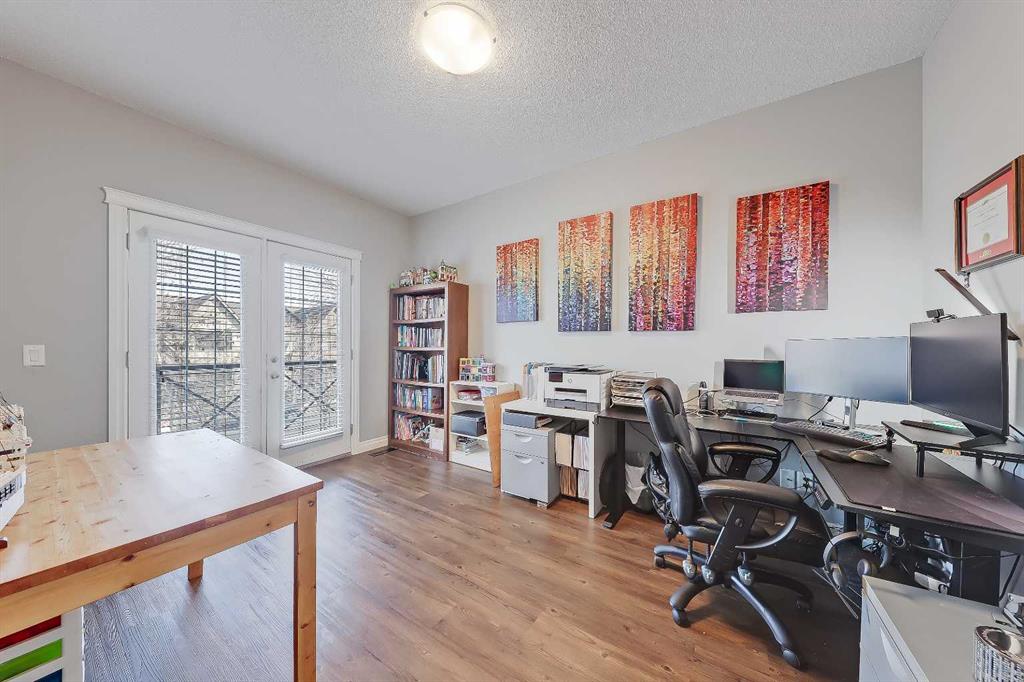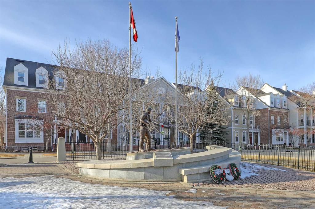 Exceptional 3-storey townhome offering over 2,300 sq. ft. of above-grade living space in the heart of Garrison Green, complete with 3 bedrooms, 2.5 bathrooms, a West-facing concrete pad, and a rare double detached garage. The main floor welcomes you into the spacious foyer, which features a large closet for everyday storage. Solid hardwood flooring leads into the bright front living room, featuring a gas fireplace with a stone surround and an oversized window filling the space with ample natural light. At the rear of the home, the kitchen and dining area, with large windows overlooking the backyard, are designed for function and flow. The kitchen features granite counters, dual stainless steel sinks with a garburator, a corner pantry, and new black stainless steel appliances, including a gas stove, all still under warranty. Plus, a central island with bar seating is great for enjoying casual meals. The dining area boasts a wall-mounted electric fireplace, ample space for gatherings, and direct outdoor access, making the space ideal for daily living and entertaining. A discreet 2pc powder room and two additional storage closets add convenience, completing the main floor. Luxury vinyl plank carries up the stairs and throughout the upper floors. The second floor offers two spacious bedrooms, one of which has access to the balcony, a full main 5pc bath, a versatile bonus room with private balcony access, and a tiled laundry room with a sink and side-by-side appliances. The entire third floor is dedicated to the primary retreat featuring vaulted ceilings, a spacious walk-in closet, and a 5pc ensuite with dual vanities, a soaker tub, and a separate shower. The unfinished basement (over 700 sq. ft.) provides excellent future development potential. Recent upgrades include a new high-efficiency furnace, a new hot water tank, a new central vacuum system, a humidifier, and a water softener. Outside, enjoy the West-facing concrete pad, a gas line for BBQs, grassy space, plus the convenience of a rare full double detached garage. Ideally located in Garrison Green, the home is within walking distance of multiple parks, including Peacekeeper Park and Buffalo Park. Families benefit from being close to multiple schools, including Mount Royal University, Jennie Elliott School, and Central Memorial High School. Downtown Calgary is just 13 minutes away, while quick connections to Glenmore Trail, and Crowchild Trail make commuting simple in any direction. Shopping, dining, and daily amenities are close at hand, with Marda Loop, Signal Hill, and Westhills Towne Centre all just minutes away.