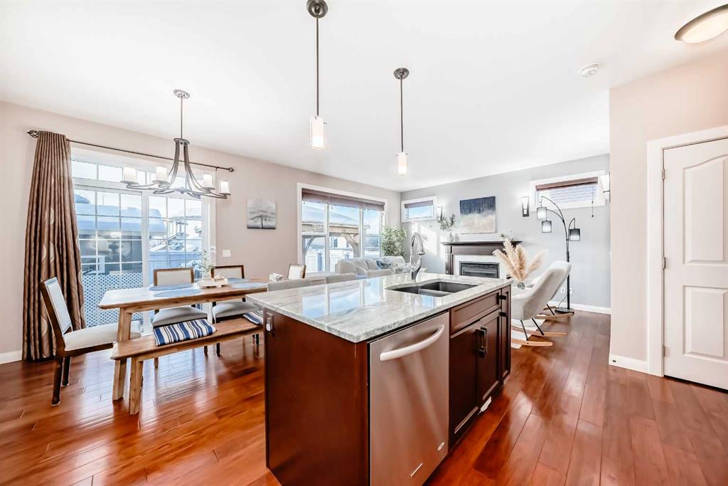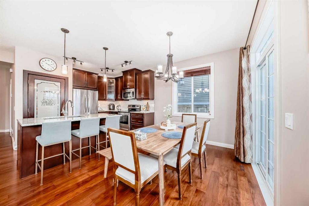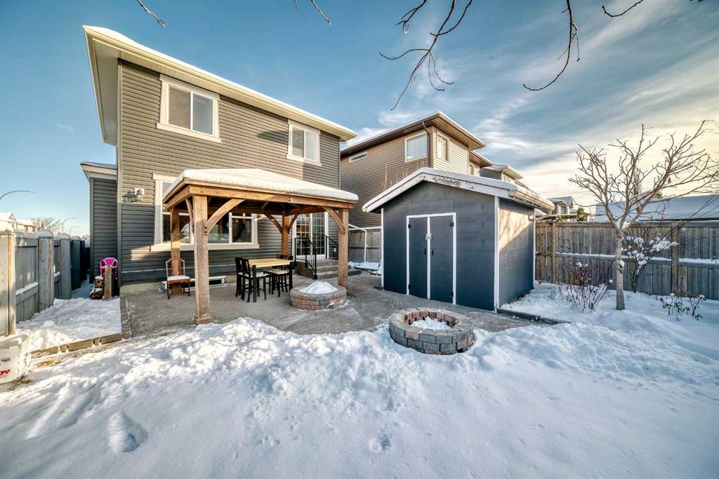 Welcome to this charming and well maintained home located in the heart of Evanston! This property features a front-attached double garage, a west-facing backyard, and a warm, inviting atmosphere perfect for families. Positioned next to a walking pathway, the home enjoys additional privacy with no direct neighbor on one side. The main floor boasts a functional layout with a 2-piece bathroom, a convenient laundry room, and an open-concept kitchen, dining area, and living room. Large west-facing windows flood the main living spaces with natural light, creating a bright and welcoming setting throughout the day. Upstairs, you’ll find three spacious bedrooms and two full bathrooms, including a comfortable primary suite with its own private ensuite. The beautifully designed low-maintenance backyard is a true highlight—complete with a large storage shed, an expansive poured concrete patio, a fire pit, and a charming garden area, offering the perfect outdoor retreat for family gatherings. A detached gazebo is also included and can stay or be removed at the buyer’s preference. The front and back gardens have been lovingly cared for by the owner, with abundant seasonal flowers that create a stunning display when they bloom in the summer—adding color, character, and charm to the property. New roof, gutters, and siding—have been completed following hail damage, providing peace of mind for the next owner. The unfinished basement offers a blank canvas to create the perfect additional living space to suit your needs. This exceptional location is hard to beat: 1.5 km to Kenneth D. Taylor School (K–4), walking distance to the new Evanston Heights Middle School (Grades 4–9), opening Fall 2026, 800 meters to Evanston’s commercial hub with FreshCo, restaurants, gas station, banks, and more. With easy access to Stoney Trail offering effortless commuting around the city. A wonderful opportunity to own a bright, cozy home in one of Calgary’s most desirable family-friendly communities. Don’t miss it!