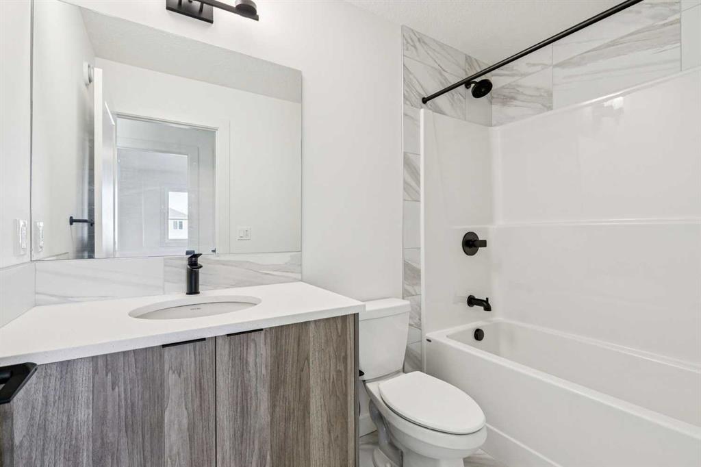 The “Newport” by Fifth Avenue Homes provides an open and airy ambiance, with a well-appointed kitchen and comfortable living space. The main floor with an excellent, open plan, features a huge great room, adjoining dining area, dream kitchen highlighted by an island with breakfast bar, Quartz countertops & custom tile backsplash, access to the large 10×10 deck & 2 pc bath. The upper level offers two spacious bedrooms, 4 pc bath, a gorgeous primary suite with walk-in closet + a 3 pc ensuite & laundry. Undeveloped lower level with loads of storage and mechanical. Double detached garage. High-end plumbing & lighting fixtures throughout! Fifth Avenue Homes is well known for above standard finishings & attention to detail both in design & workmanship. This listing has just been completed & is ready for occupancy – pick your possession & move right in. Just minutes away from East Hills Shopping Center (Costco, movie theatre, shops & restaurants), close to future CBE elementary school site & 10 minutes to downtown on the Max Purple transit. Belvedere offers a wonderful family lifestyle with parks, natural wetlands and pathways. Book a showing with your Realtor today!