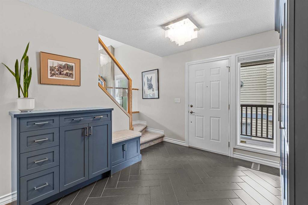 The entryway is warm and inviting, featuring custom-built-ins and stylish herringbone tile flooring. The main level impresses with vaulted ceilings, abundant natural light, and rich hardwood floors, creating a bright and airy ambiance throughout. The open-concept kitchen is perfect for entertaining, complete with high-end finishes. Also on the main level is a 3-piece bath, spacious bedroom and deck access.