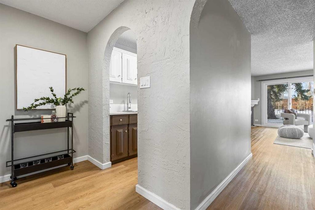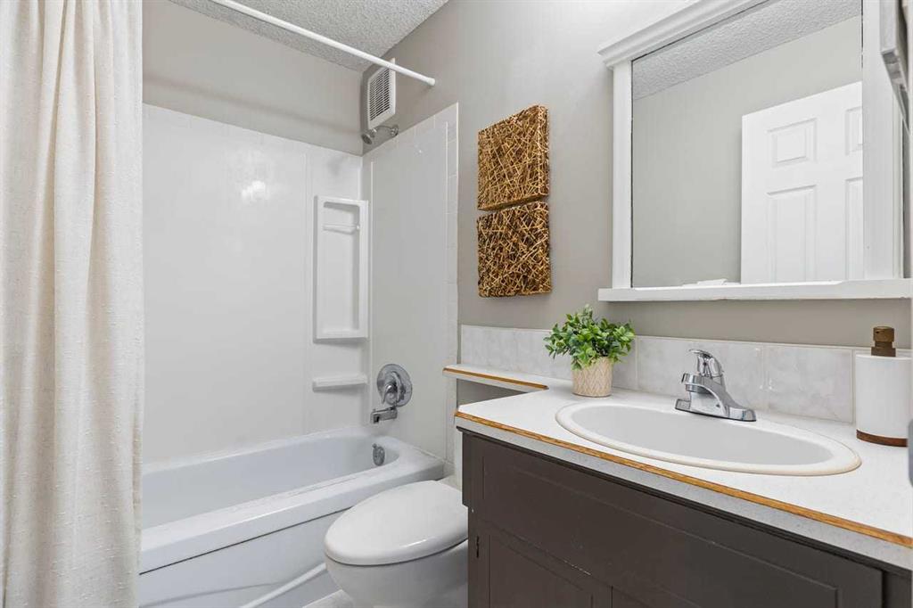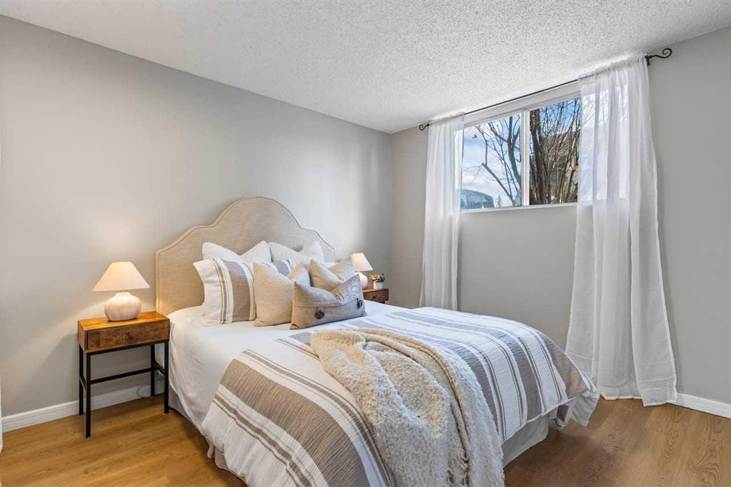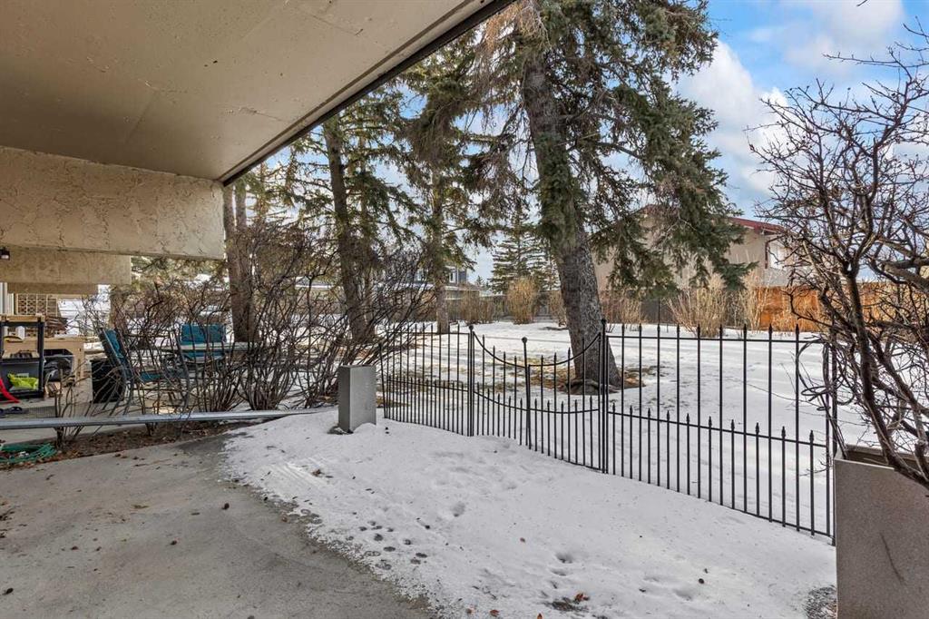 Bungalow Charm Meets Modern Convenience in Palliser West. Experience the perfect blend of affordable living and low-maintenance style in this spacious one-bedroom bungalow townhouse. The open-concept layout is designed for comfort, featuring a kitchen that opens to a large dining area and a living room that fills with natural light from west-facing double patio doors. Step outside to your private patio with walkout access to serene green space and mature trees. Some of the upgrades and features include: newer flooring, light fixtures, professionally cleaned, in-suite laundry and storage, concrete construction for superior sound dampening and durability, and assigned parking right at your front door. Located in the quiet Palliser West complex, you are just minutes from South Glenmore Park’s miles of walking and bike paths, Glenmore Landing amenities, and major routes like Stoney Trail for easy city-wide access. This property offers affordability and a prime location. This unit is partially below grade.