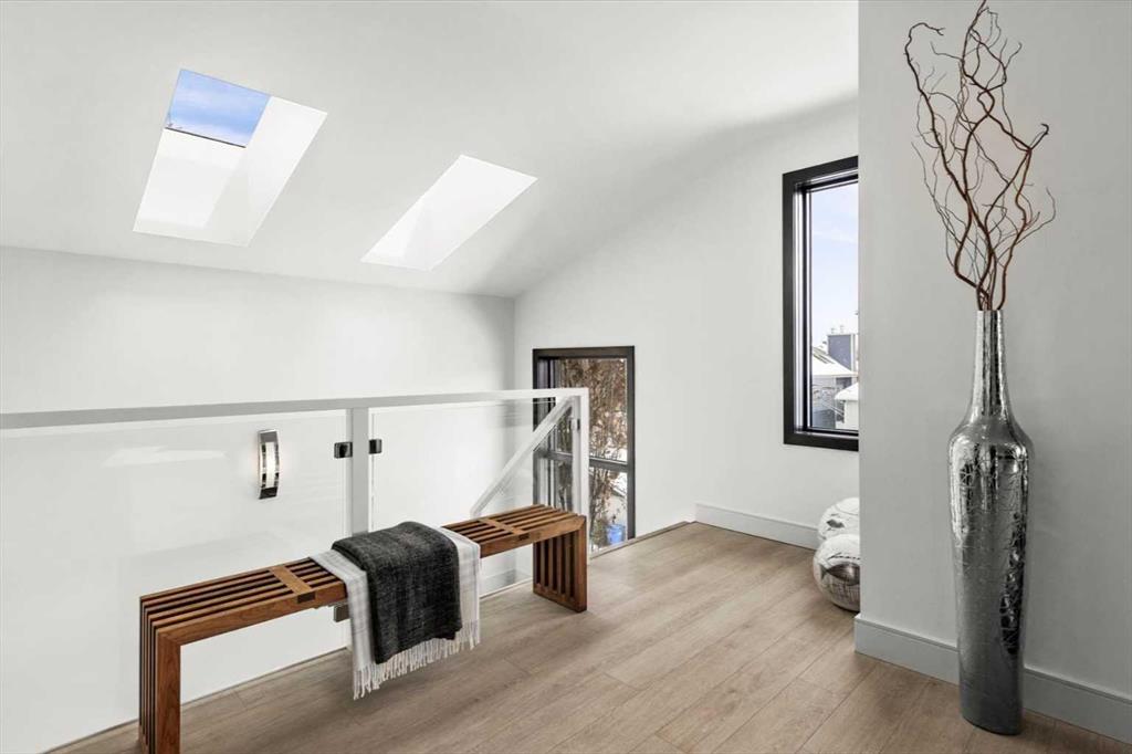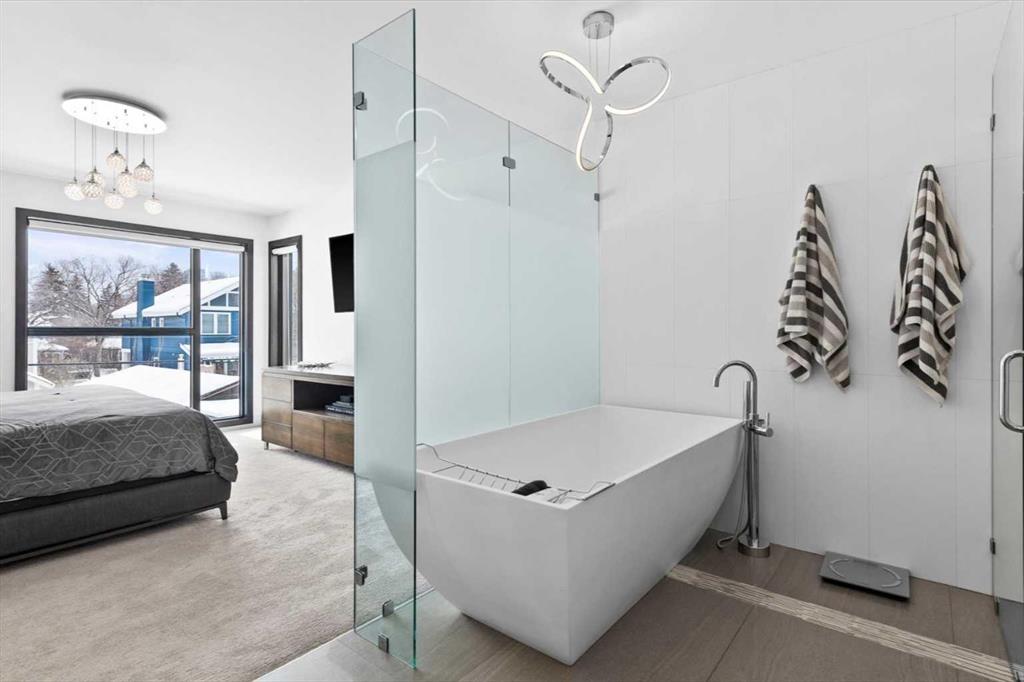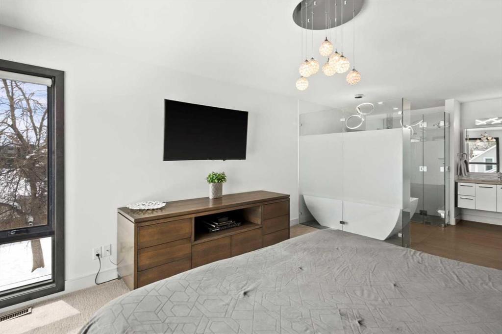 A rare opportunity awaits!!! Nestled in the prestigious neighbourhood of Hillhurst, just minutes from the vibrant heart of Downtown Calgary, this air conditioned 3-storey, 3-bedroom, 3.5-bathroom executive home is a testament to modern luxury and sophisticated living. With meticulously crafted details, this residence is designed to captivate and inspire with professionally designed living space filled with elegance and comfort. As you step inside, the open floor plan unfolds before you, and is framed by 10-foot ceilings that amplify the sense of openness and sophistication. A wall of ceiling-height windows bathes the interior in natural light, illuminating the exquisite 24 x 48 porcelain heated tile flooring that gracefully leads you through the thoughtfully planned living spaces. The heart of this home is undoubtedly its kitchen, marrying functionality with luxury in a space where mornings are greeted with the rich aroma of coffee form the Miele built-in coffee machine, and evenings are gracefully concluded with a selection from the full height wine cooler. The culinary enthusiast in your family will appreciate the food preparation space on the large waterfall quartz covered centre island and composite under mount sink. The stainless-steel appliance package is completed with a premium Viking gas range and the French Door refrigerator with cooler drawer and bottom freezer. Hosting dinner parties is a breeze with the spacious dining nook that is adjacent to the living room, anchored by a 52″ gas fireplace, is ideal for entertaining and seamlessly integrates with the beautiful outdoor living area. This extension of the main level invites tranquility and relaxation, offering a perfect setting for alfresco dining and gatherings under the sky. Ascend to the second level, where a large landing introduces the expansive primary bedroom. Wake up to breathtaking downtown Calgary views and indulge in the 6-piece ensuite, featuring a free-standing stone soaker tub, a large shower with dual shower heads and Kohler body sprayers, and a customized his-and-her walk-through closet with built-in drawers and shelving. The convenient laundry room on this level, ensures ease and comfort for your daily living routines! The journey continues up to the third level, where the second bedroom and a large bonus room flex area await. Complete with a private balcony, this space offers stunning downtown views of downtown Calgary, providing a serene retreat to watch the newest release or your platform for an inspiring workspace. The sun filled lower level houses the third bedroom, and features a built-in study, media room, and games room, offering versatility and ample storage for an organized and clutter-free lifestyle. Outside, the designer influenced landscape compliments the beautiful exterior dĂ©cor of this home with your own single car garage, ensuring convenience and security for your vehicle or additional storage needs. Close proximity to top-tier schools, and scenic walking paths!