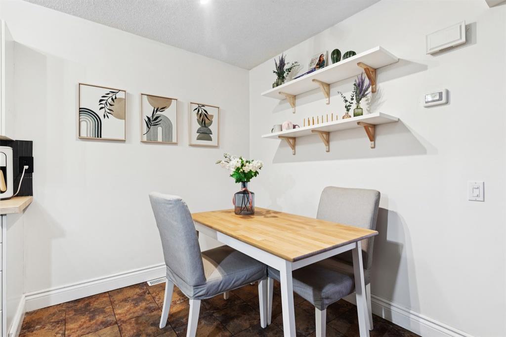 The updated kitchen is both stylish and functional, featuring stainless steel appliances, white cabinetry, warm wood countertops, a deep granite sink, and elegant gold hardware. An ideal dining area offers plenty of space to host family and friends or enjoy quiet meals at home. Durable laminate flooring flows throughout, and a fully renovated two-piece bathroom is conveniently located on the main floor. Outside, you’ll love the private, fully fenced front patio. This outdoor space is ideal for BBQs, morning coffee, or relaxing while watching Calgary’s beautiful sunsets. Upstairs, the home continues to impress with a fully refurbished 4-piece bathroom, complete with a deep soaker tub, shower combo, and stunning vanity with ample storage. The primary bedroom is filled with natural light from large windows and offers a full size closet and plenty of room to unwind. A well sized second bedroom is perfect for guests, a roommate, or a home office. The fully developed basement provides a spacious and cozy family room, along with a versatile flex space currently used as a gym but also ideal for a home office or hobby area. The laundry and utility room also offers additional storage. Many highlights include new vinyl flooring, new appliances, renovated kitchen and bathrooms, new paint, and a dedicated parking stall just steps from the unit. The complex is professionally managed with reasonable condo fees, adding peace of mind and long term value. This is a fantastic opportunity to own a stylish, low maintenance home in one of Calgary’s most established communities. Book your showing today, this home will not disappoint and won’t last long!