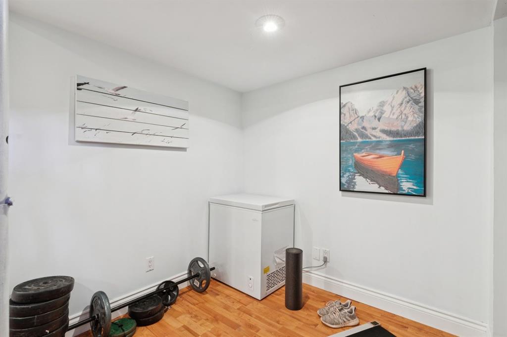 Welcome to Varsity Estates Village, this is one of Calgary’s most sought after and exceptionally well-managed townhome communities, known for its pride of ownership, strong management, and unbeatable long term value. This is your opportunity to own in a prime Varsity location, offering the perfect balance of safety, convenience, and lifestyle. Just minutes to the University of Calgary, major hospitals, downtown, parks, walking paths, and golf courses, this location is ideal for first time buyers, professionals, or savvy investors looking for a solid property in a high demand area. This beautifully updated, move-in ready two storey townhome immediately impresses. A welcoming foyer opens into a bright, spacious living room featuring a stunning corner stone-faced wood burning fireplace, the perfect centre piece for cozy winter nights or to set a nostalgic ambiance. The kitchen has been thoughtfully renovated with both style and function in mind, showcasing stainless steel appliances, crisp white cabinetry, warm wood countertops, a deep granite sink, and elegant gold hardware. The adjacent dining area offers ample space to entertain or enjoy everyday living. Durable laminate flooring flows throughout the main level, complemented by a fully renovated two-piece powder room for added convenience. Step outside to your private, fully fenced front patio which is an ideal space for morning coffee, summer BBQs, or unwinding in the evening sun with friends. Upstairs, you’ll find a beautifully refreshed 4-piece bathroom featuring a deep soaker tub, updated vanity, and excellent storage. The primary bedroom is bright and inviting with large windows and a full-size closet, while the second bedroom is generously sized making it perfect for guests, a roommate, or to be used as a home office. The fully developed basement adds incredible versatility with a cozy family room and a flexible space currently used as a gym. This area is easily adaptable for a home office, studio, or hobby area. The laundry and utility room also provide additional storage. Extensive updates include newer vinyl flooring, appliances, renovated kitchen and bathrooms, and a fresh paint throughout which offers you a true move in ready with a peace of mind. A dedicated parking stall is conveniently located just steps from the unit. The professionally managed complex features reasonable condo fees and a strong reputation, making this an excellent investment opportunity or place to call home.