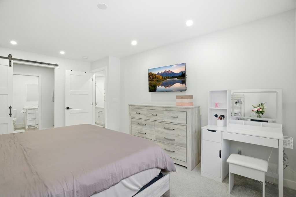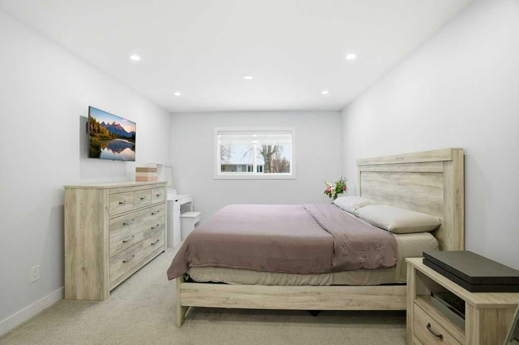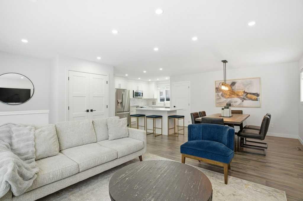 Renovated detached homes in established inner-city southwest Calgary are increasingly difficult to find. Especially beautifully RENOVATED homes on CORNER LOTS this well connected. FINISHED DOUBLE GARAGE | 2 LAUNDRY ROOMS | 2 BEDROOM ILLEGAL BASEMENT SUITE | CENTRAL AC | SOUTH BACKYARD w/ UNDERGROUND SPRINKLER SYSTEM | AGGREGATE BACKYARD PATIO | ACROSS FROM PLAYGROUND & OUTDOOR RINK | This gorgeous bungalow offers an open floor plan creating seamless flow for everyday living. Large windows bathe the living room in natural light while added pot lights ensure warm, even illumination into the evening. Designer lighting defines the large dining space, elevating both casual meals and larger gatherings. At the centre of it all, the chef’s kitchen impresses with quartz countertops, stainless steel appliances, full-height cabinetry and a large island that invites connection over morning coffees or evening conversations. Neutral tones throughout provide a timeless backdrop that complements any style. A stylish 4-piece bathroom serves the main level, while the primary bedroom feels like a true retreat with trendy sliding doors leading to an impressive double wall walk-in closet and your private ensuite. You’ll also find a spacious second bedroom for a little one or an excellent office space for working at home. Downstairs, a separate entrance leads to an illegally suited basement designed for multi-generational living or flexible family space. An open-concept living area offers room to relax, while a neutral white kitchen, 2 additional bedrooms and a 4-piece bathroom provide independence and functionality. SEPARATE LAUNDRY ROOMS add convenience and privacy. CENTRAL AIR CONDITIONING keeps the home comfortable throughout the warmer months. Outside, the south-facing backyard offers sunshine throughout the day, creating an ideal setting for summer barbeques on the deck or evenings spent unwinding beneath the covered gazebo patio resting on a CUSTOM AGGREGATE PATIO. A built-in sprinkler system keeps the lawn lush with minimal effort, while a large grassy area tucked behind the garage provides a safe, privately fenced space for kids and pets to play. An insulated and drywalled double detached garage with dual doors adds secure parking and valuable storage. Everyday amenities are within walking distance including schools, parks and local shops, while nearby Macleod Trail and transit routes provide convenient access throughout the city. Kingsland remains one of southwest Calgary’s most connected and established communities, offering quick access to Chinook Centre, Heritage LRT Station and major roadways for an easy commute. Thoughtfully updated and exceptionally located, this stunning home delivers comfort, flexibility and everyday convenience at a very affordable price. Don’t wait – Call your realtor today!