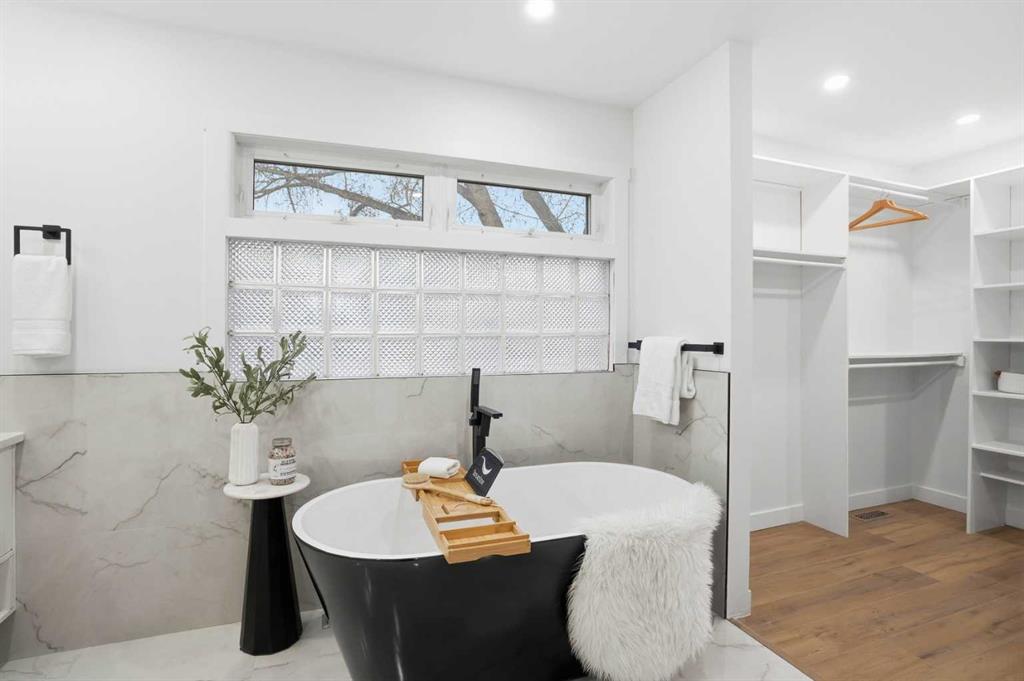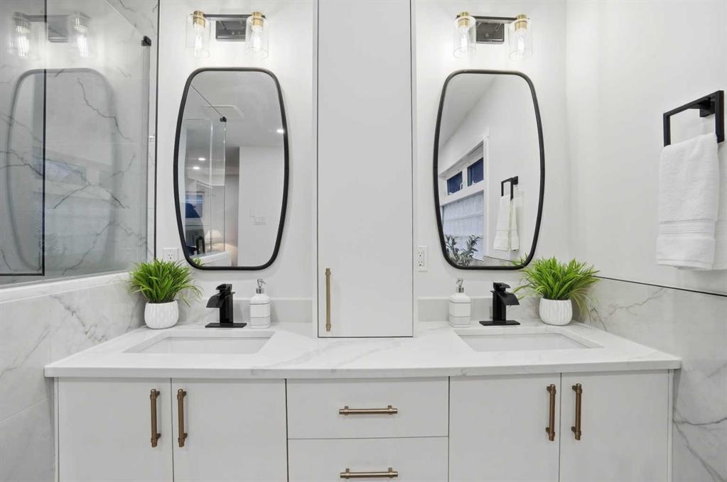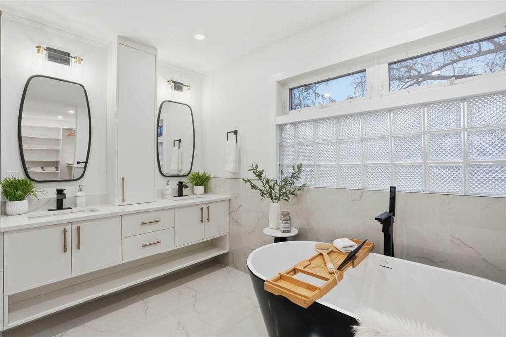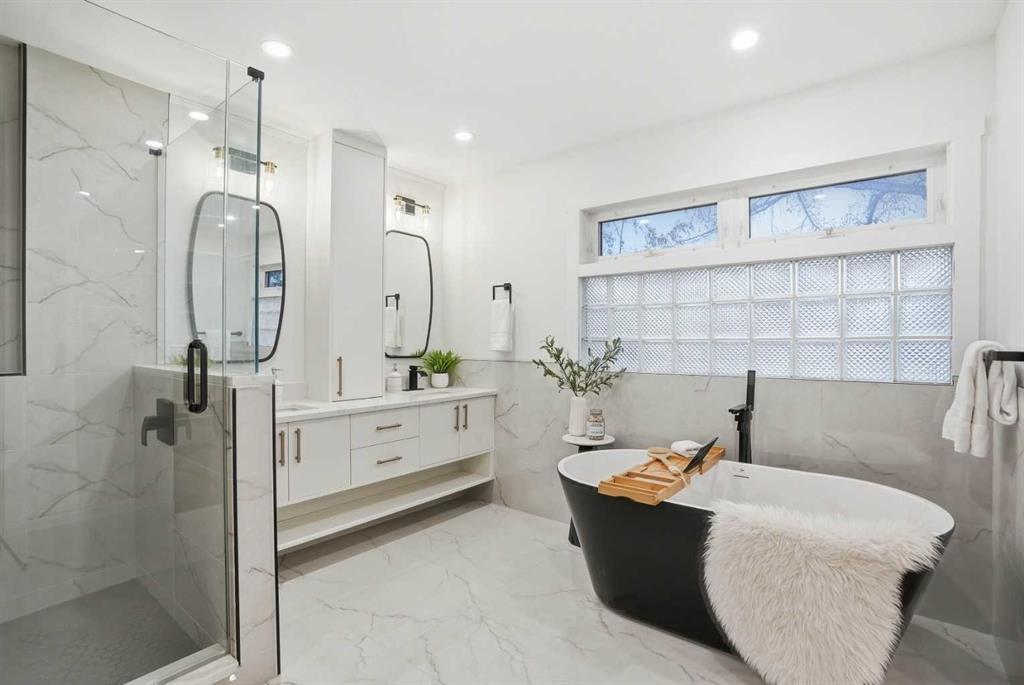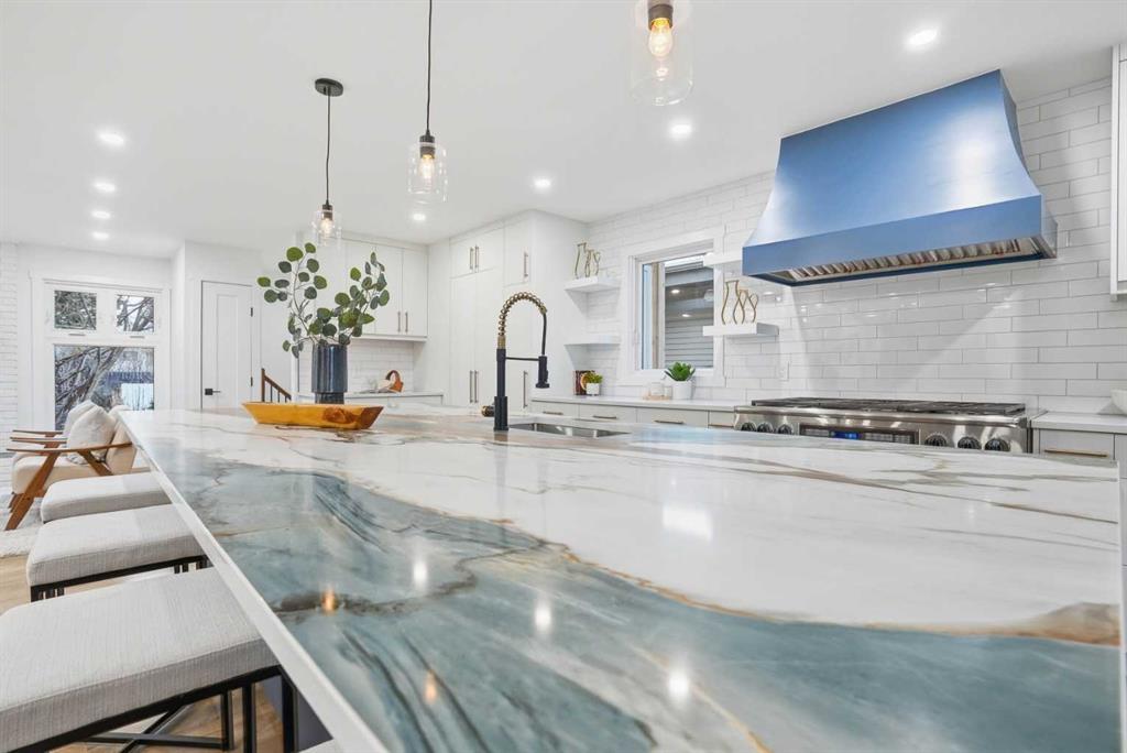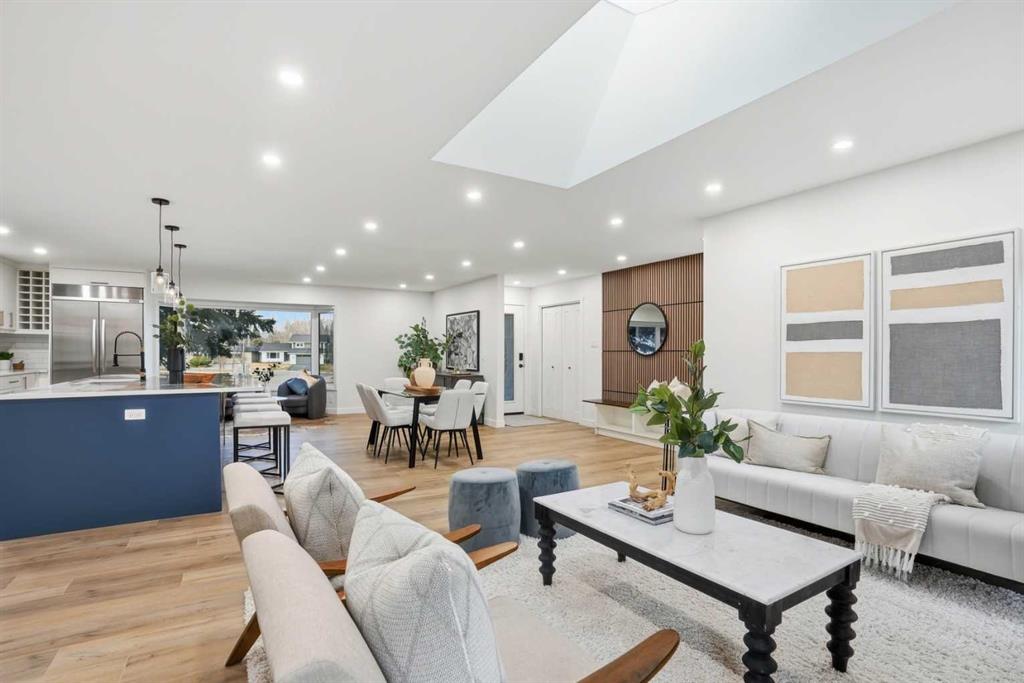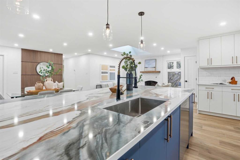 “OPEN HOUSE SAT & SUN 1-4PM” Prepare to be amazed by this stunning, contemporary bungalow, where every detail has been masterfully reimagined. Taken down to the studs & rebuilt like new, this is not just a renovation, it’s a TOTAL TRANSFORMATION ready for its next chapter, designed for the discerning homeowner who appreciates luxury, quality & style! The open-concept main floor is bathed in natural light thanks to a skylight & oversized windows. Whether its your first java of the day or cocktail hour, the sitting area by the expansive bay window will be a delight! A magnificent chef’s dream kitchen features a showpiece quartz island with plenty of storage, a 48-inch Decor range with a 6-burner gas stove & double ovens, a 42-inch refrigerator, ASKO dishwasher and a wealth of custom cabinetry with pull-outs. Tucked away is a hidden walk-in pantry! Relax by the wood-burning fireplace, complete with a log lighter, making for cozy & engaging entertaining. The primary retreat easily accommodates a KING size bed. The breathtaking spa-like ensuite boasts beautiful tile work, a separate oversized shower and a dramatic black standalone tub, perfect for unwinding after a long day. Your private hideaway is finished off with a spacious walk-in closet. The fully developed lower level is the ultimate family room on movie nights & game days. A large feature wall with electric fireplace awaits the big screen, a wet bar with impressive quartz counter & wine racks plus tons of room for a games area. This level also features two huge bedrooms (new egress windows), a 3-piece bath and a laundry room with brand new washer/dryer, cupboard and a folding table. Enjoy the security & efficiency of an essentially new home! 100% New Electrical & Plumbing including a new meter box, panel, full rewiring and a luxury instant hot water on-demand system with all old plumbing replaced with PEX. Two HE furnaces, one for each level. Roof was redone in 2021 and a maintenance-free deck rebuilt in 2024! The tranquil, private south-facing backyard is lush, treed, and beautifully landscaped providing a serene setting perfect for families or anyone who values outdoor living. Love to garden? Plenty of space for planting veggies next Spring, if not then easily converted to RV parking! The oversized fully insulated & drywalled garage has the gas line already in place! Prime location! The home is situated on a rare massive lot nestled in a quiet cul de sac. Opportunities like this are few and far between in such a sought-after neighborhood. A stones throw to the beloved Sugarbowl a south Calgary sledding tradition, also the Maple Ridge golf course/cross-country skiing trails, and off-leash park, everything needed for year round fun! You MUST come and see the incredible detail & quality for yourself! Book your private showing NOW!