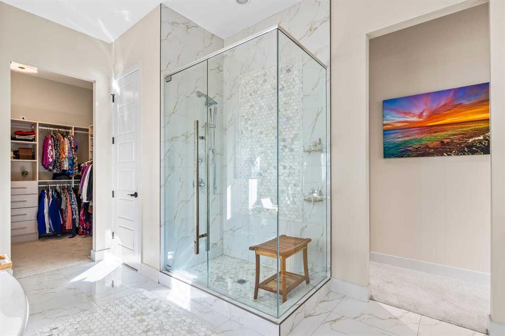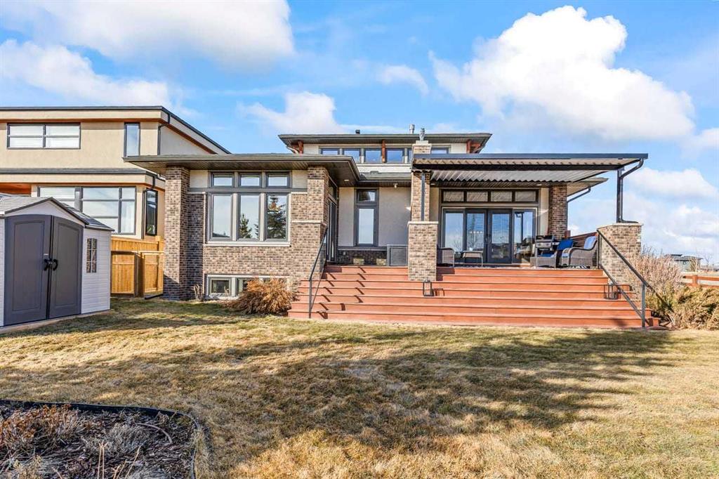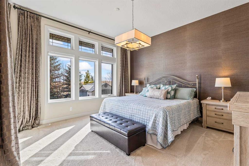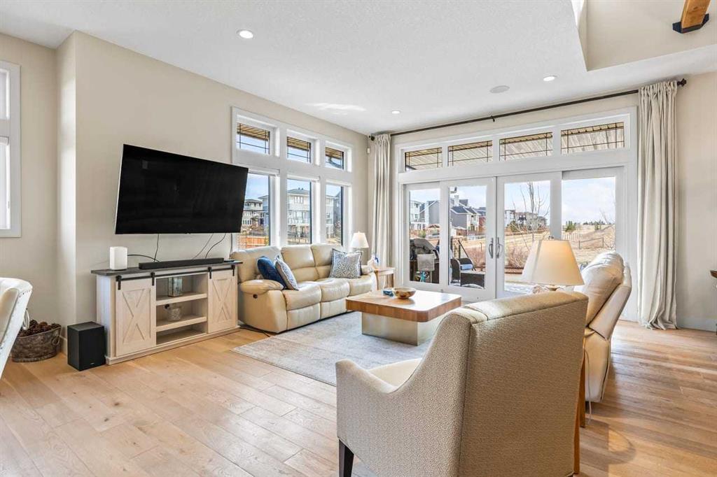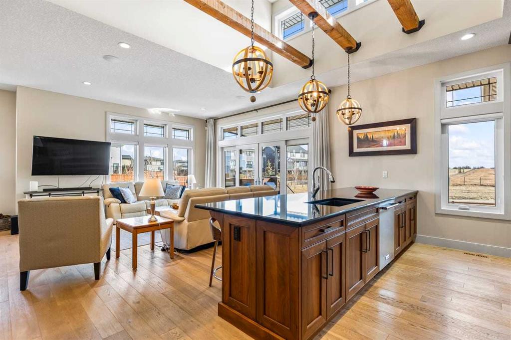 This stunning former showhome in the award-winning community of Harmony perfectly blends meticulous craftsmanship with an active and lakeside lifestyle. Spanning over 3,600’ of thoughtfully designed living space, the home impresses with vaulted ceilings, exposed beams, and premium upgrades throughout. The heart of the home is a chef-inspired kitchen featuring upgraded appliances, a butler’s pantry, and extensive cabinetry, flowing seamlessly into a bright dining area and a living room complete with a wet bar. The well-appointed main level is highlighted by a king-sized primary suite that fills with natural light. The spa-like ensuite offers a classic slipper tub, a large walk-in shower, and a walk-in closet. A bright home office, laundry room, and powder room complete this level. The high quality extends into the basement, which is designed for comfort and features two full-sized bedrooms, a large rec room, a wet bar, and a 4-pc bathroom with a double vanity and radiant heating throughout the lower level. Other features and upgrades include triple-pane windows, herringbone-engineered hardwood detailing, central air conditioning, a Kinetico water softener/filter, a central vacuum, built-in speakers, high-quality window coverings, a storage shed, and garage shelving. Situated on a prime corner lot backing onto open field and pathways, the property offers unobstructed mountain views, a south-facing backyard, across from the park/greenspace, and one block away from Harmony South Beach. The outdoor space is fully realized with landscaping, irrigation, a custom deck cover, fencing, and Gemstone lighting. Even the heated triple garage is upgraded with durable polyaspartic flooring and a natural gas heater. Living in the award-winning community of Harmony, you’ll have access to two private lakes, beach access, community pathways, playgrounds, Mickelson National Golf Club, Adventure Park, and local amenities, plus the future Bingham Crossing.