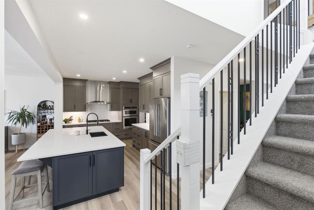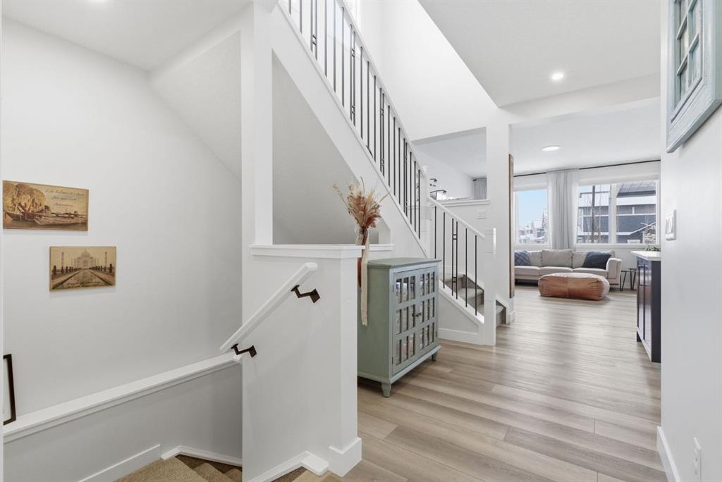 Welcome to this beautifully upgraded 2,612 sq ft corner-lot home in the sought-after community of Sunset Ridge, offering the perfect blend of comfort, functionality, and modern design. Ideally located just steps from parks, walking paths, and schools, this home also backs directly onto a pathway with no neighbours behind—providing added privacy and a true outdoor lifestyle. The main floor is highlighted by Jayman’s signature “Glass Wall” upgrade, featuring an expansive sliding glass door flanked by two oversized windows that flood the living space with natural light and create a seamless connection to the backyard. The open-concept layout is ideal for both everyday living and entertaining, anchored by a massive kitchen island that serves as the heart of the home. A dedicated main floor office offers the perfect work-from-home setup. Upstairs, you’ll find oversized bedrooms and generous living space throughout, while the raised basement ceiling offers incredible potential for future development with a bright, open feel rarely found at this level. This home is loaded with thoughtful upgrades, including triple pane windows for year-round efficiency and comfort, central air conditioning, smart dimmable switches throughout, and an oversized garage (extended by 2 feet) complete with a 240V plug for electric vehicle charging. Step outside to your private oversized backyard retreat, featuring a professionally installed Suncoast Enclosures louvered pergola—perfect for enjoying sunny afternoons or relaxing evenings in any weather. With mountain views to the west and located in one of Cochrane’s most family-friendly neighbourhoods, this is a rare opportunity to own a move-in-ready home with premium features, exceptional outdoor space, and unbeatable proximity to amenities.